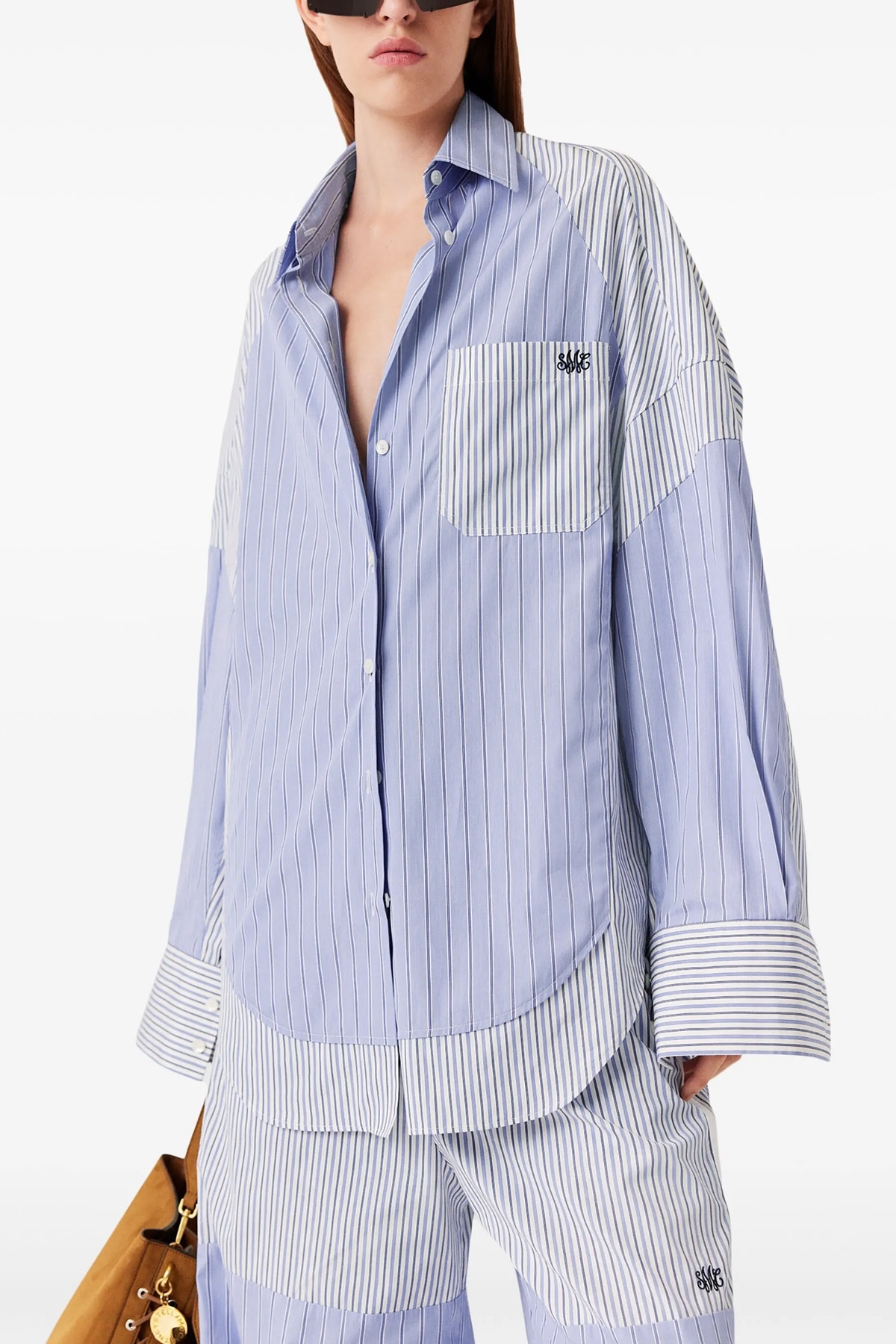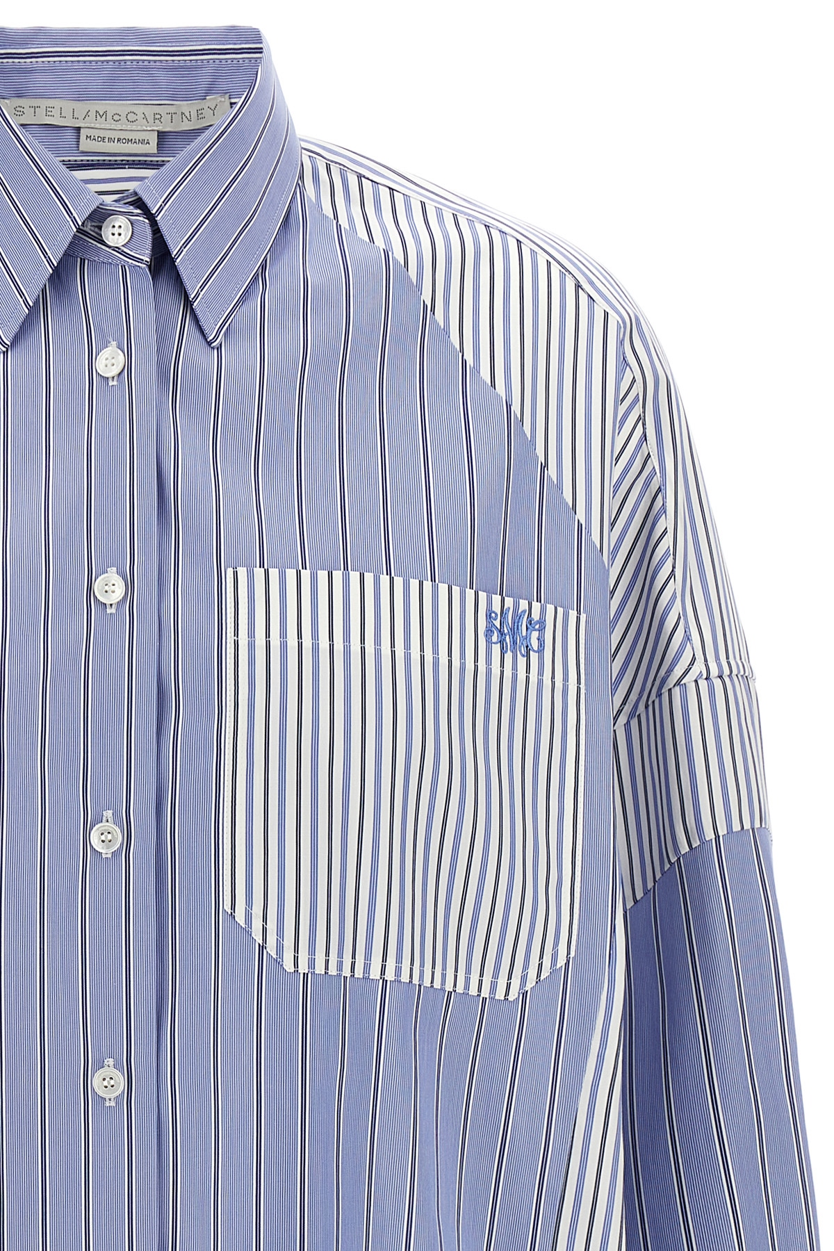 Oxford cotton shirt with multi stripe panels, button closure, pocket with embroidered logo, long sleeves with cuffs and dropped shoulders.