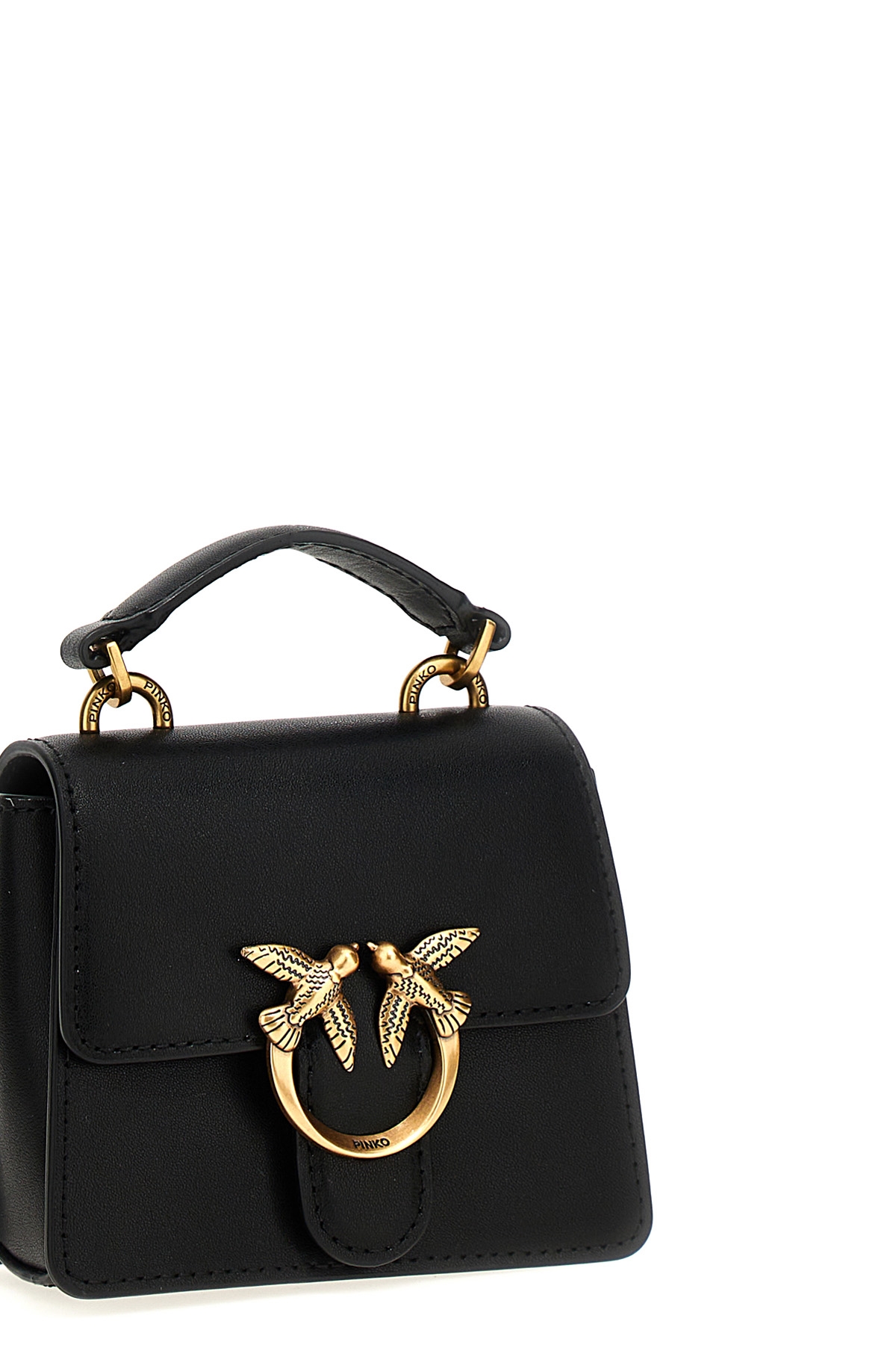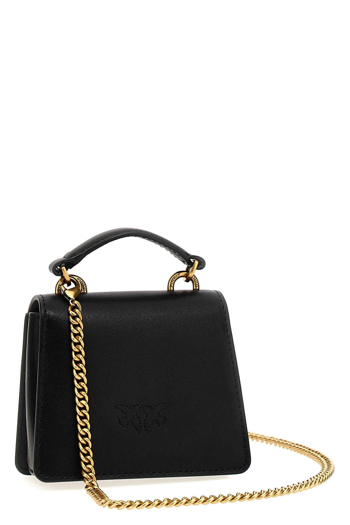 'Love One Micro' leather handbag, magnetic closure with front logo applique, fixed handle, removable chain shoulder strap.