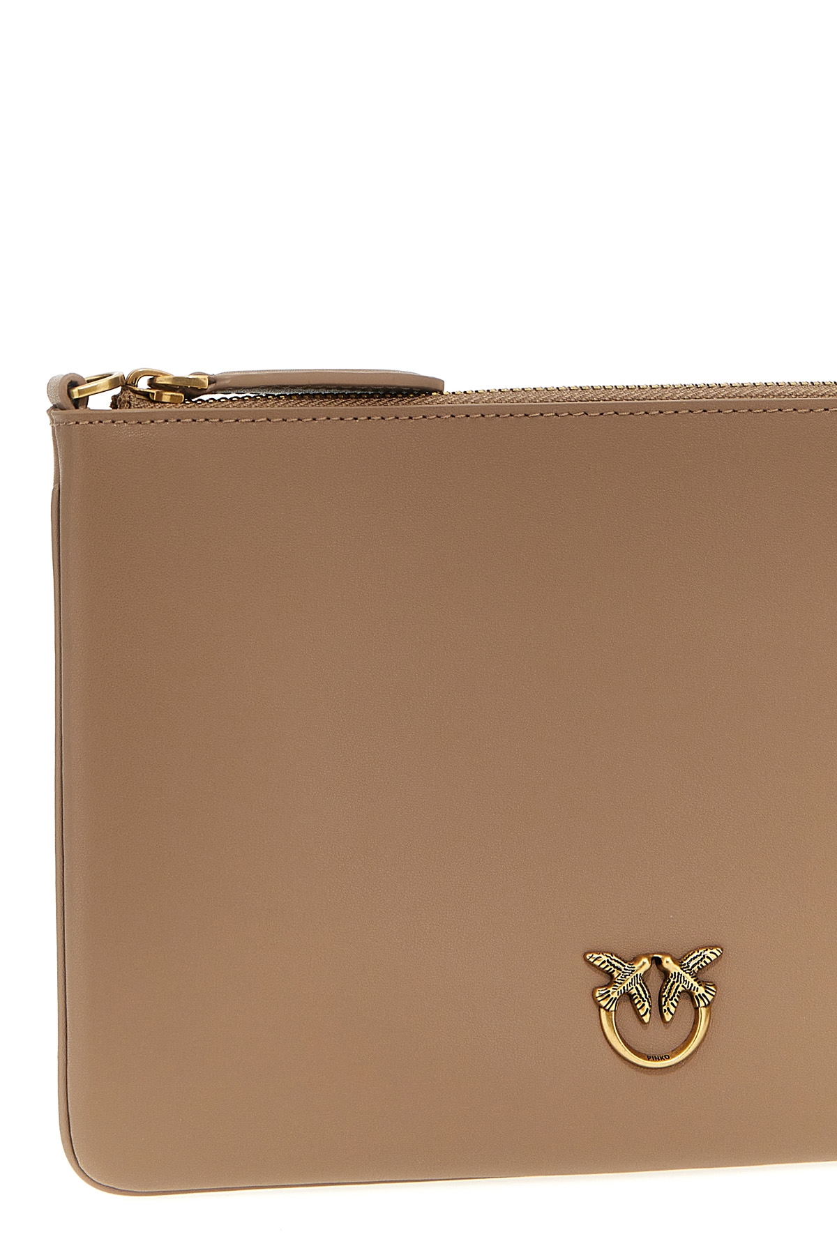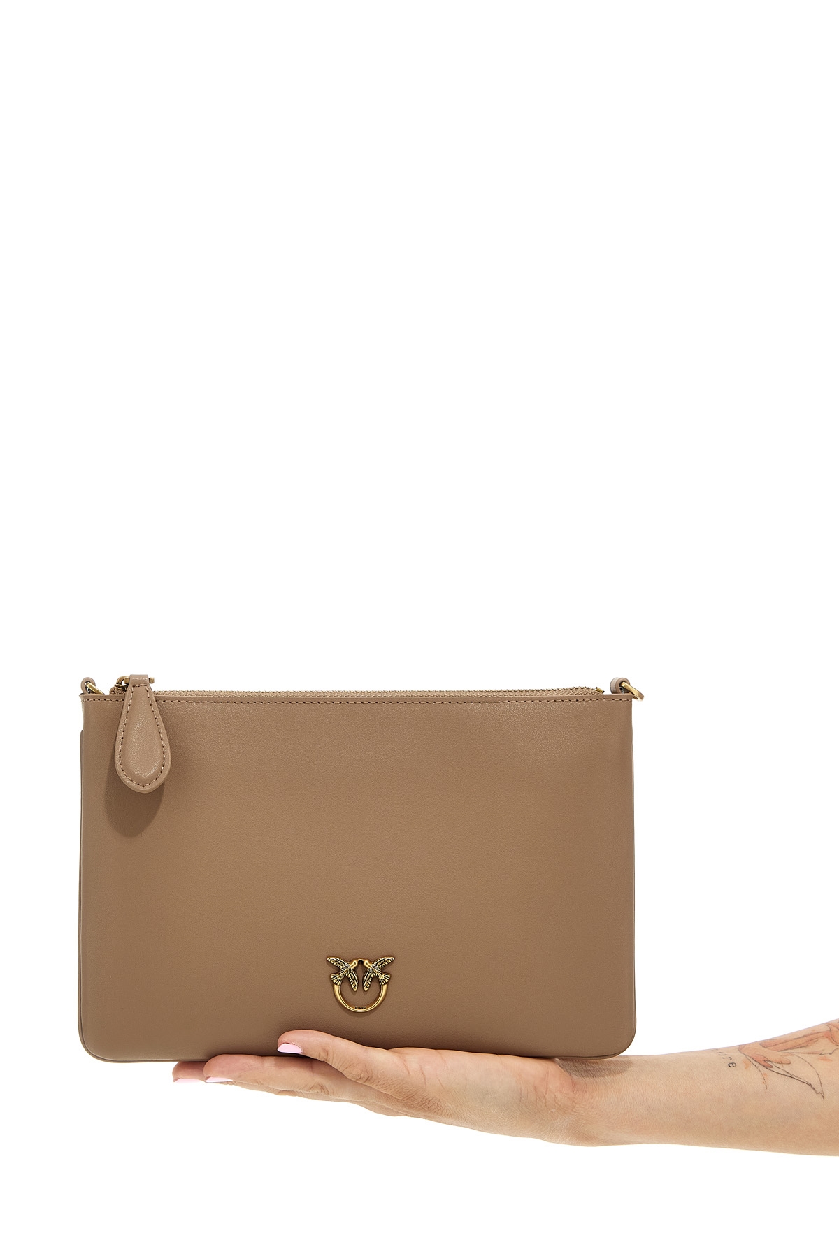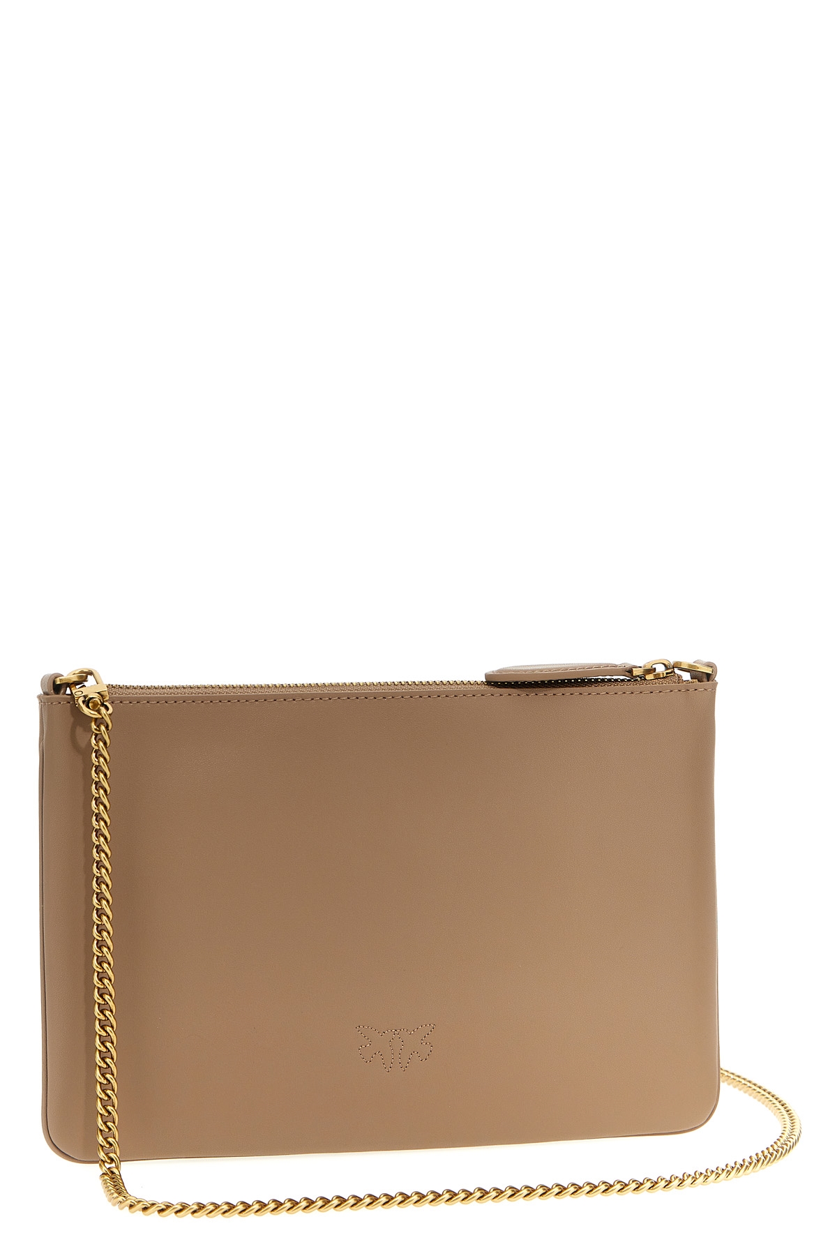 Flat' leather clutch bag with zip closure and a removable chain shoulder strap.