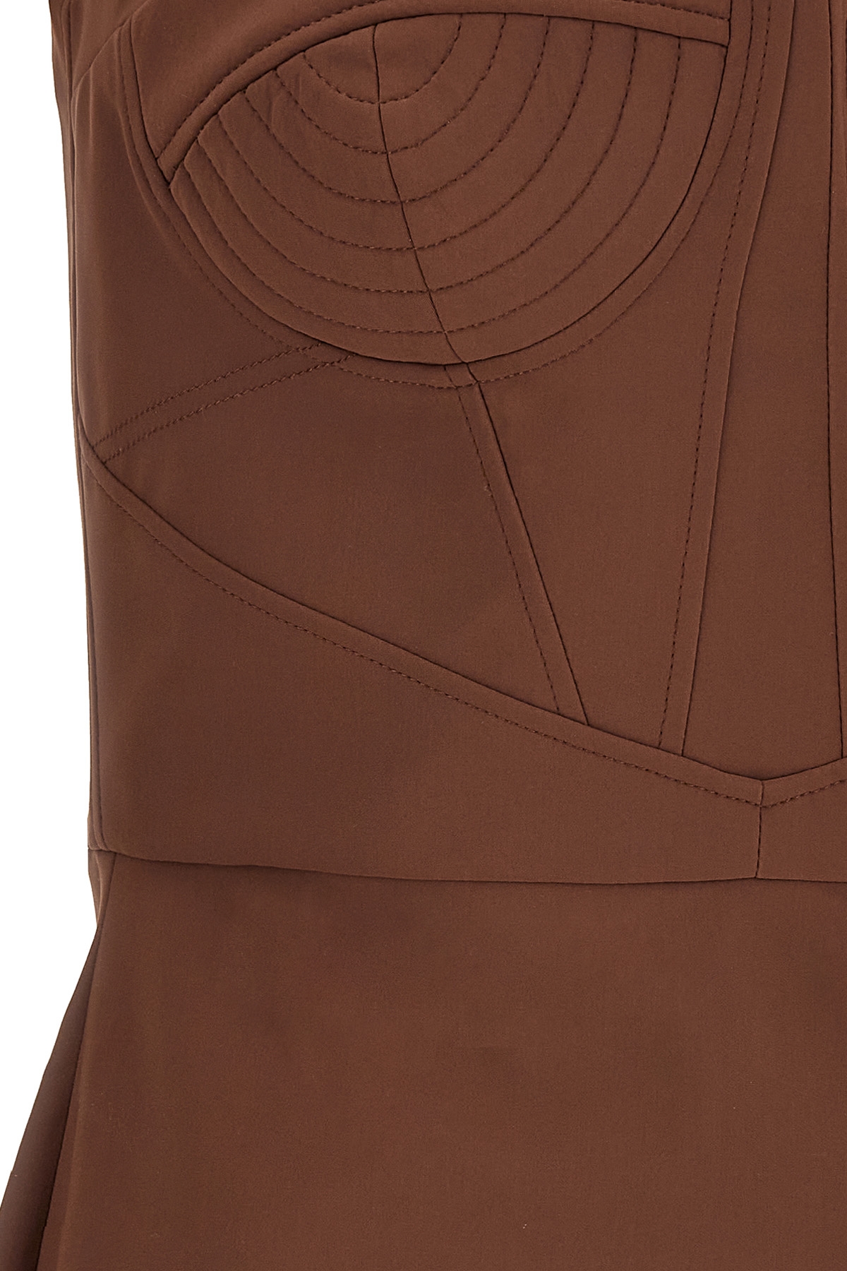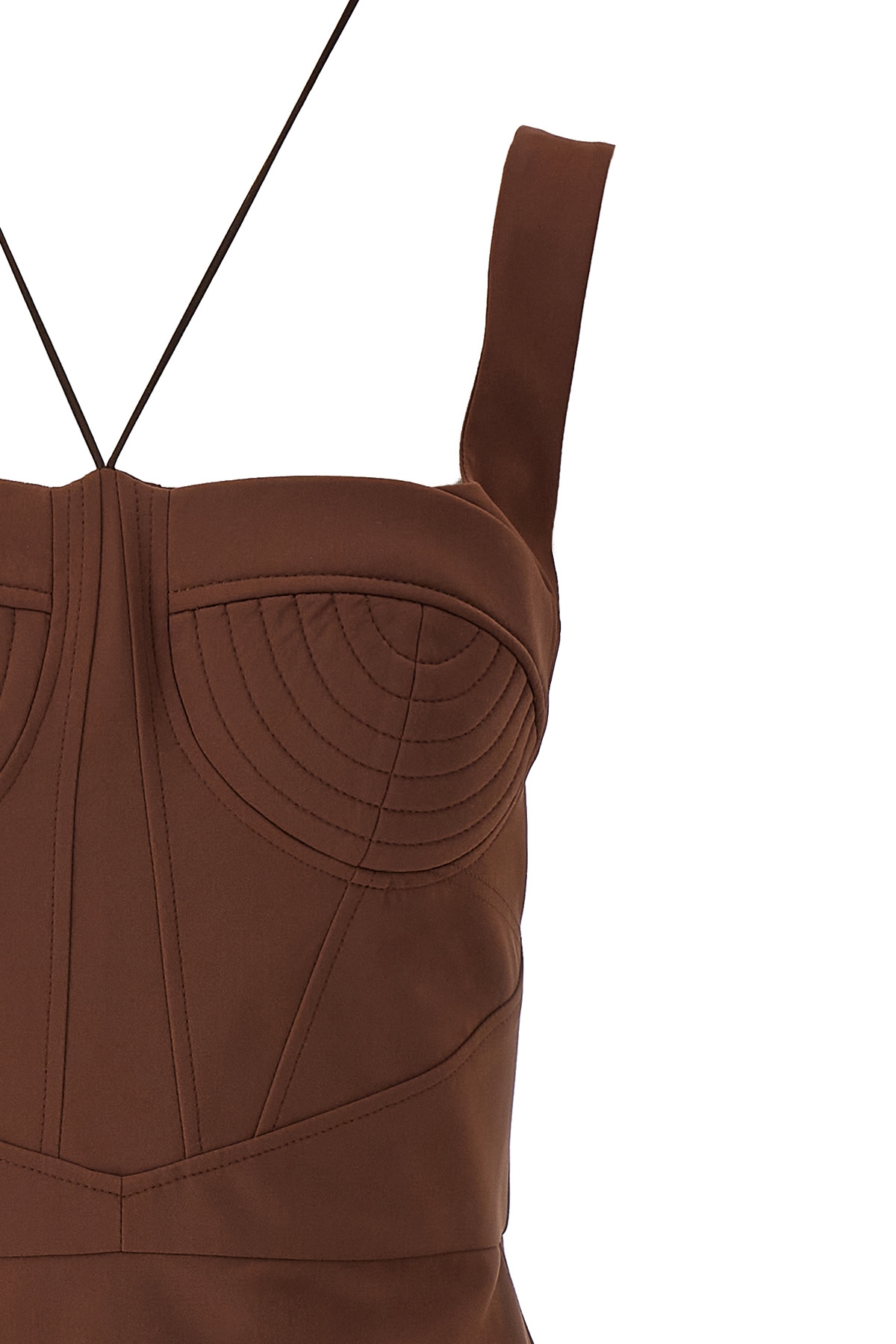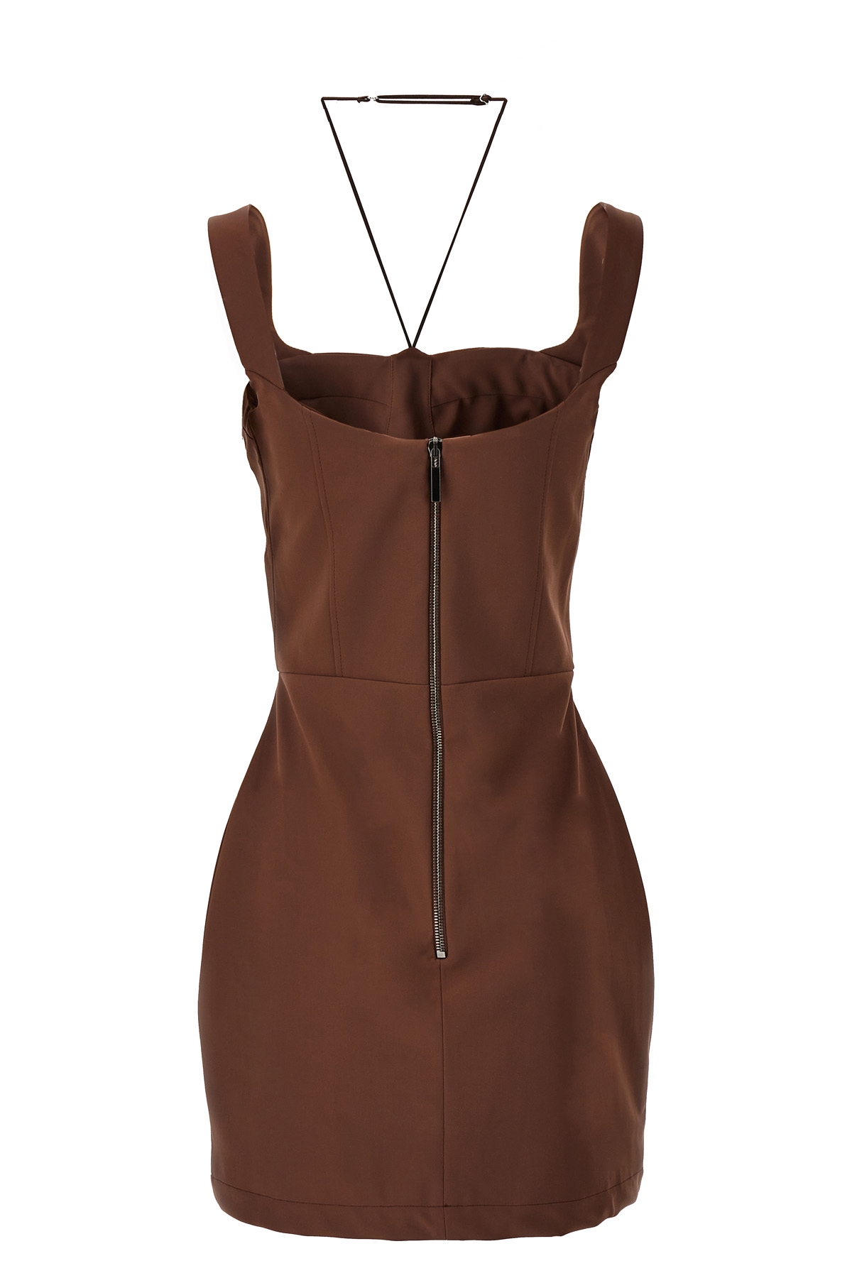 'Maddie' mini dress in stretch fabric with shaped bustier, thin straps, lacing at the neck, back zip closure.
