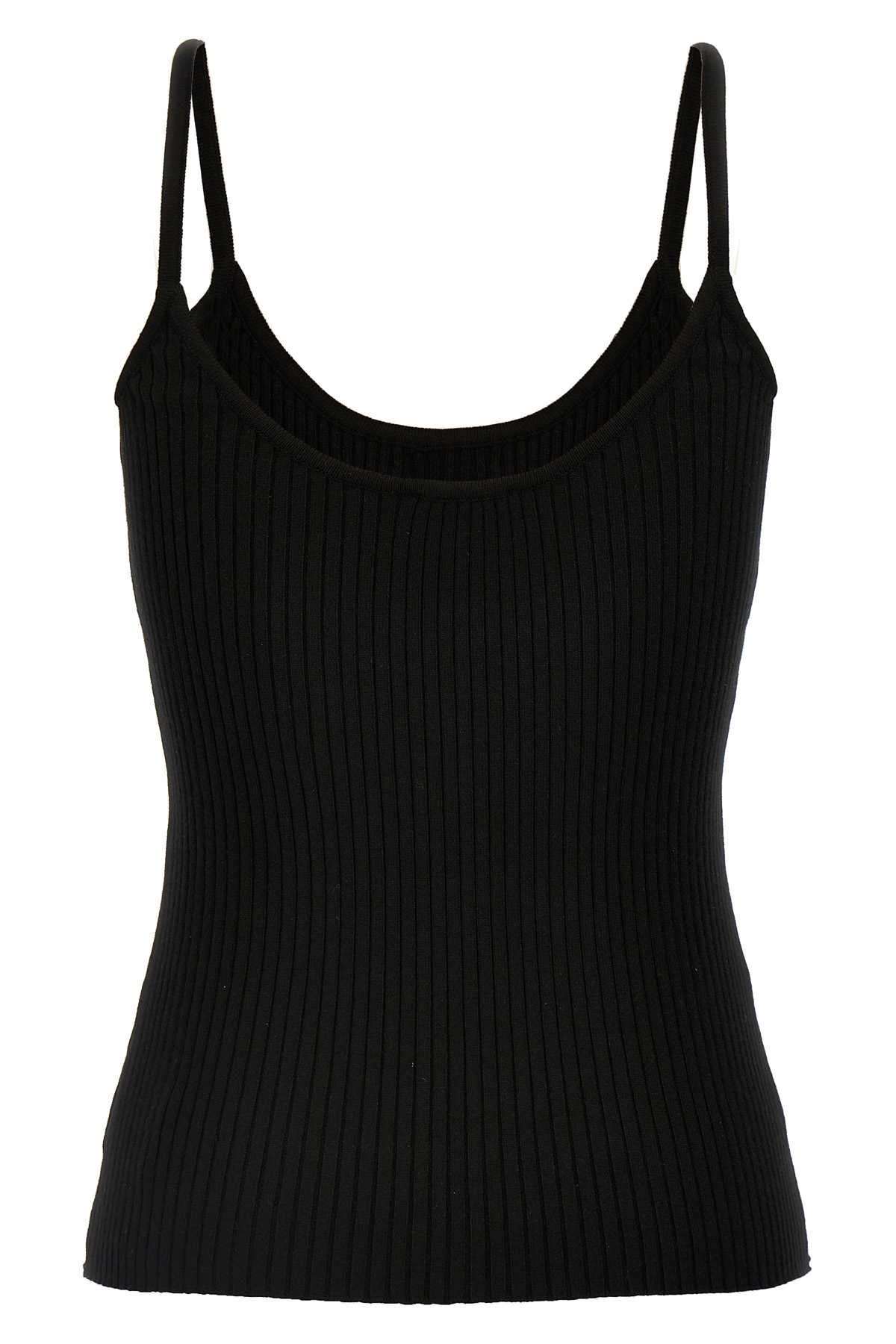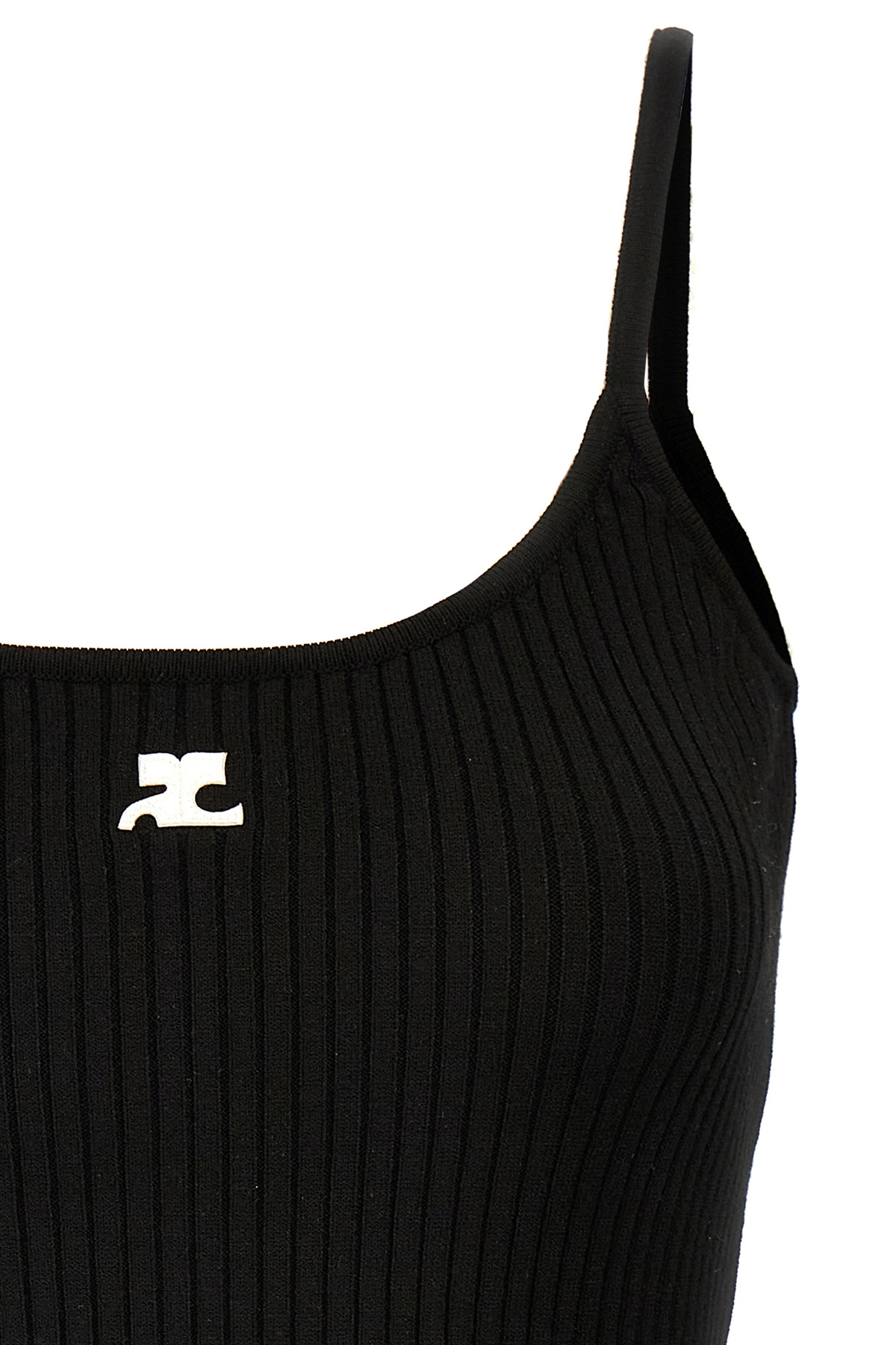 Reedition ribbed knit top with round neckline, thin straps, and front logo patch.