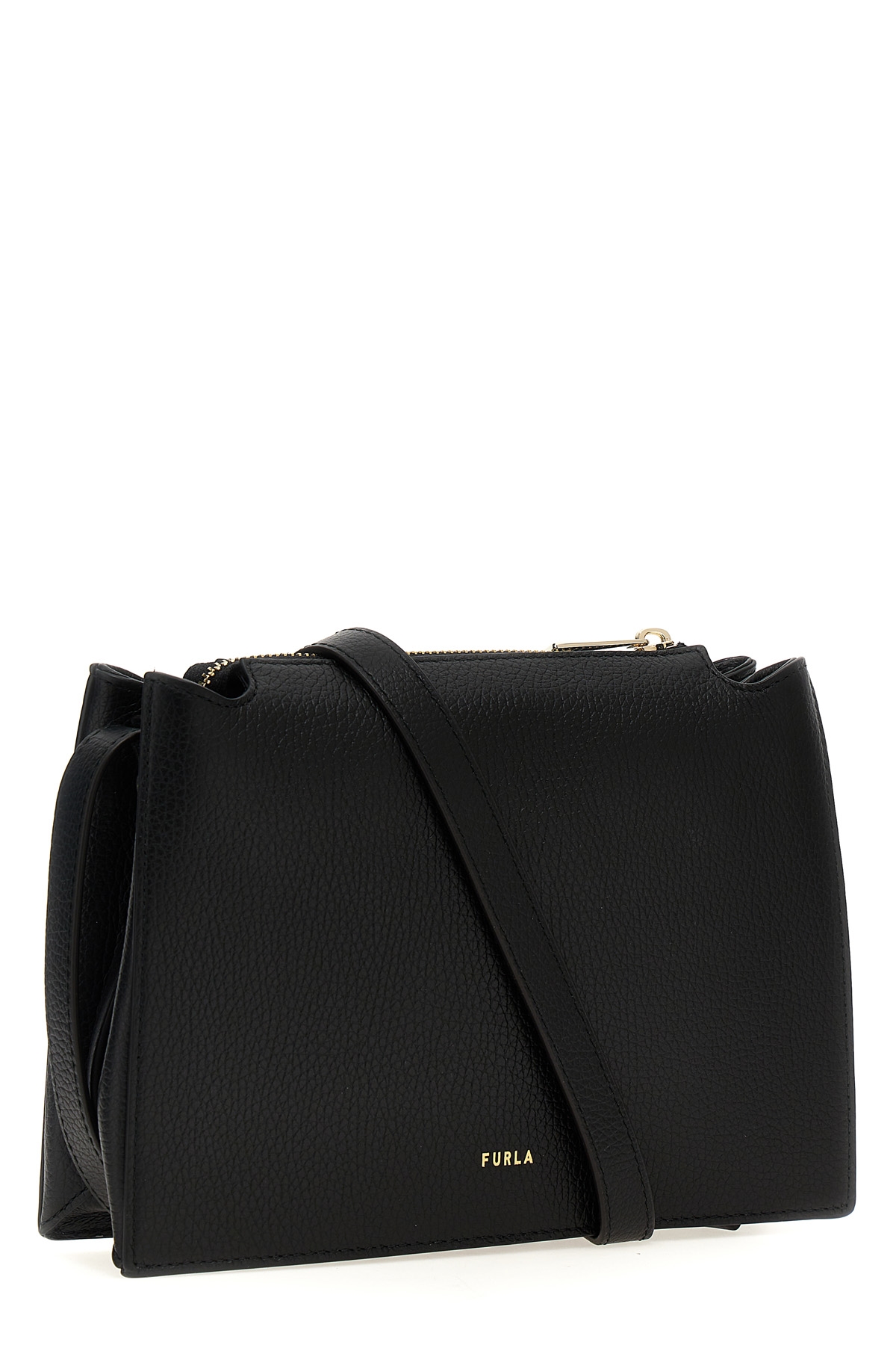 'Nuvola S' hammered leather crossbody bag, zip closure, adjustable and removable shoulder strap, Arcosfera hardware detail, front punched logo.
