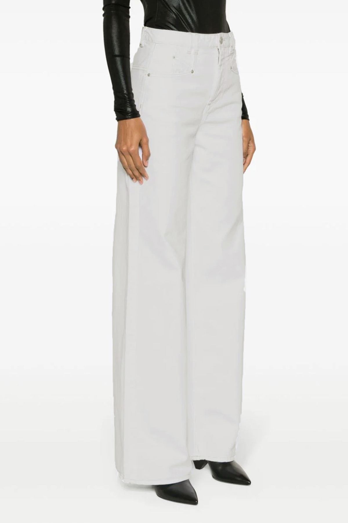 'Lemony' cotton denim jeans with zip and button closure, five pockets, leather logo tag, wide leg.