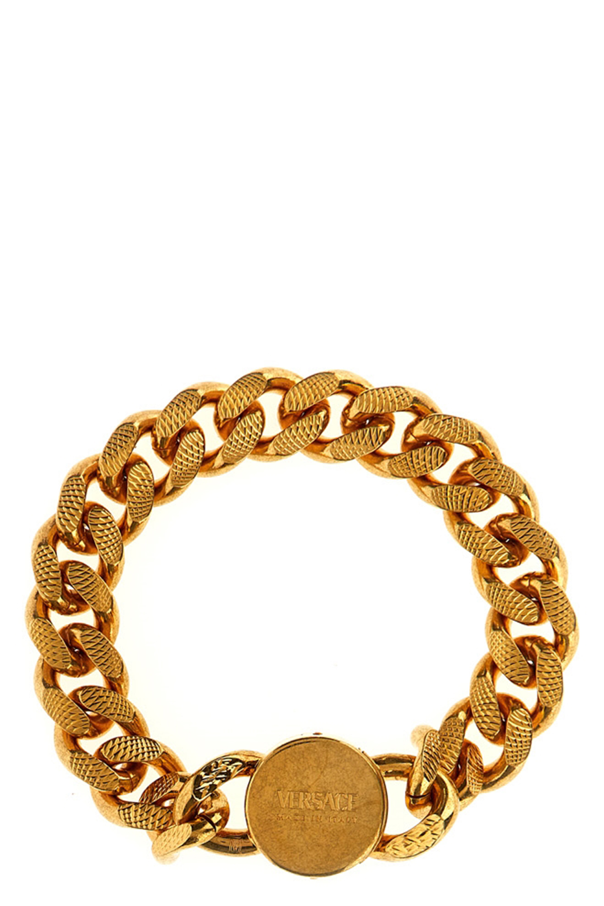 Gold zipped chain bracelet adorned with 'Medusa'.
