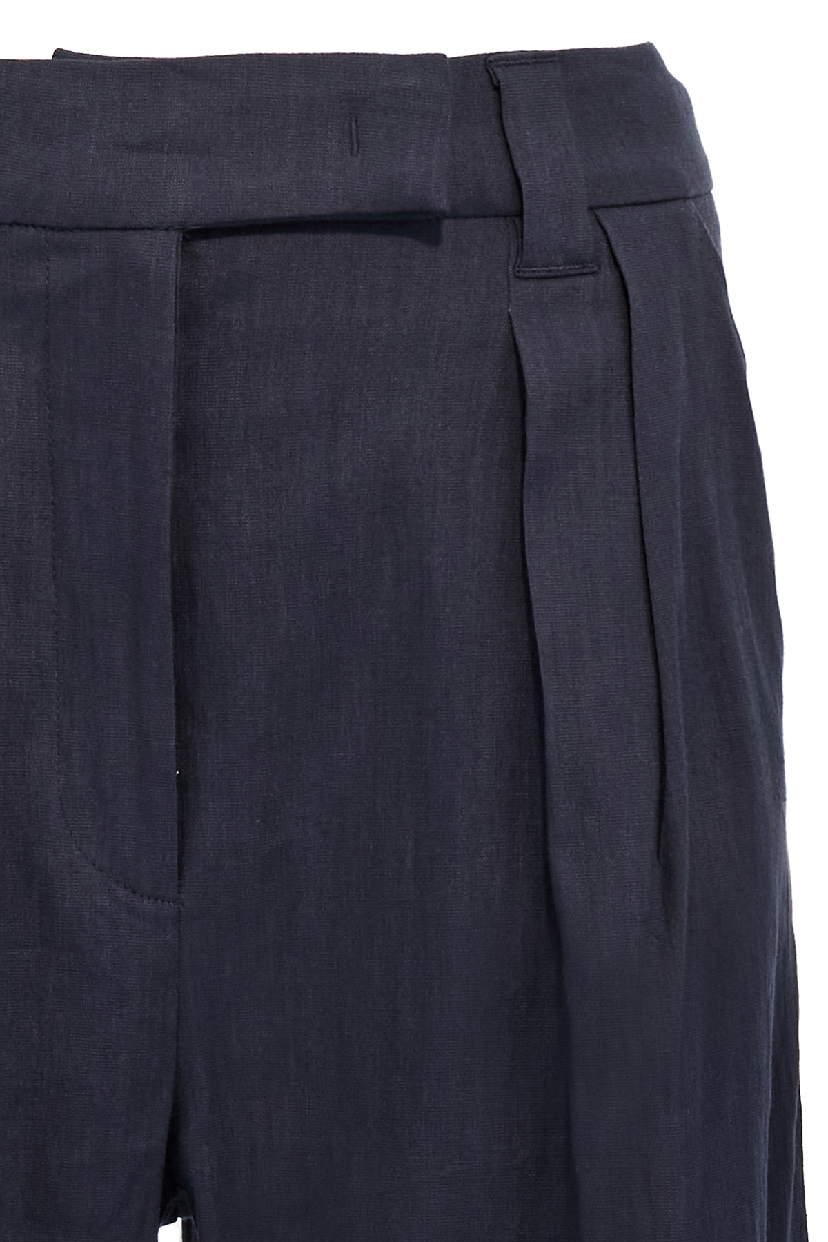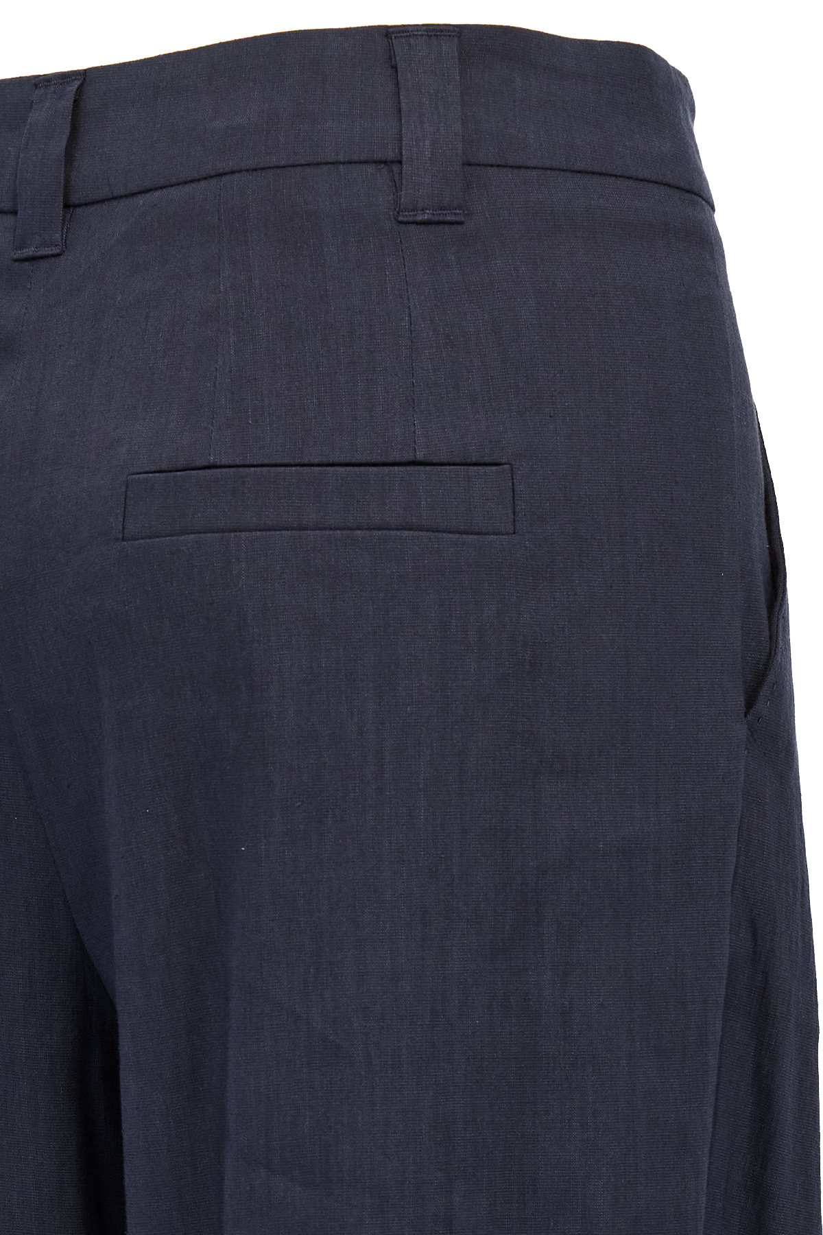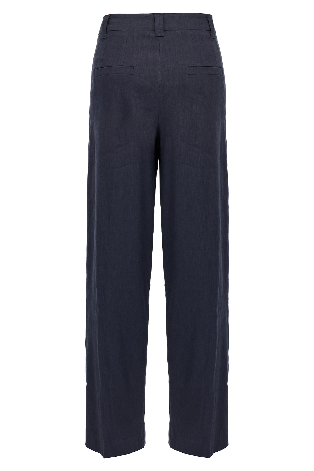 Emily Ratajkowski x Marella capsule pants in linen canvas and stretch viscose, hook and button zip closure, pockets, straight leg with pleats and stretched pleat.