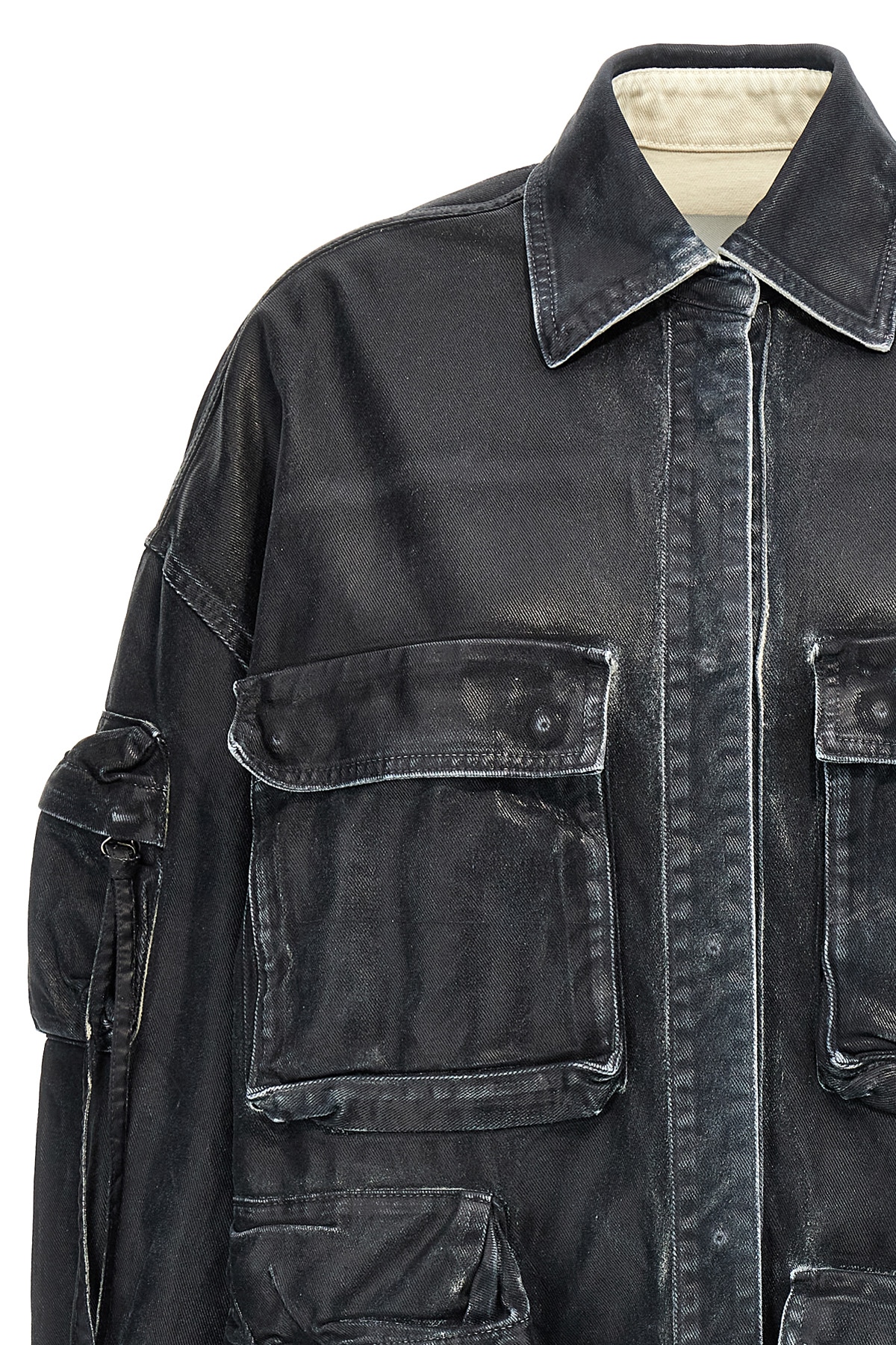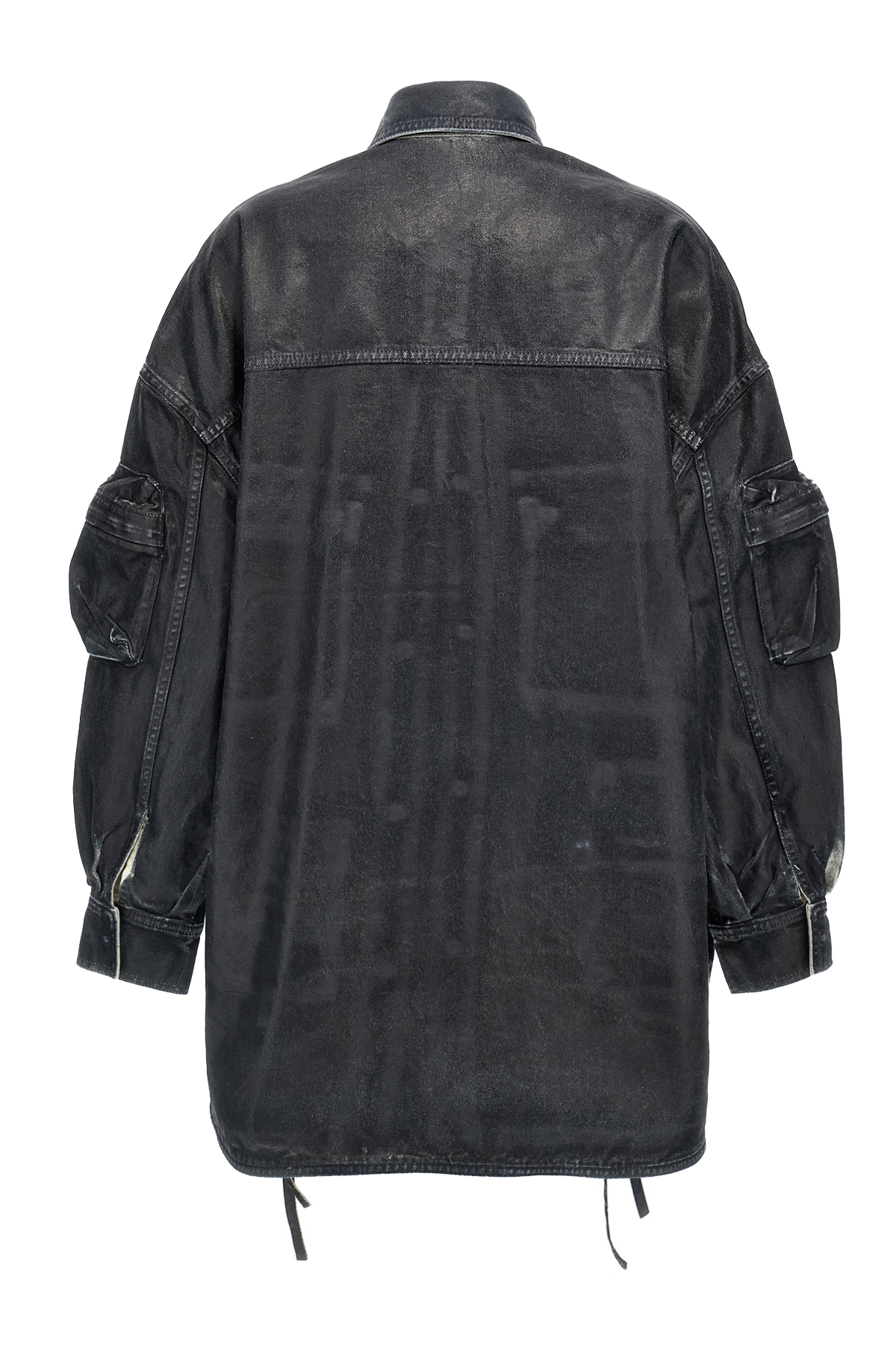 'Fern' cotton denim coat with button closure, all-over maxi pockets, long cuffed sleeves.