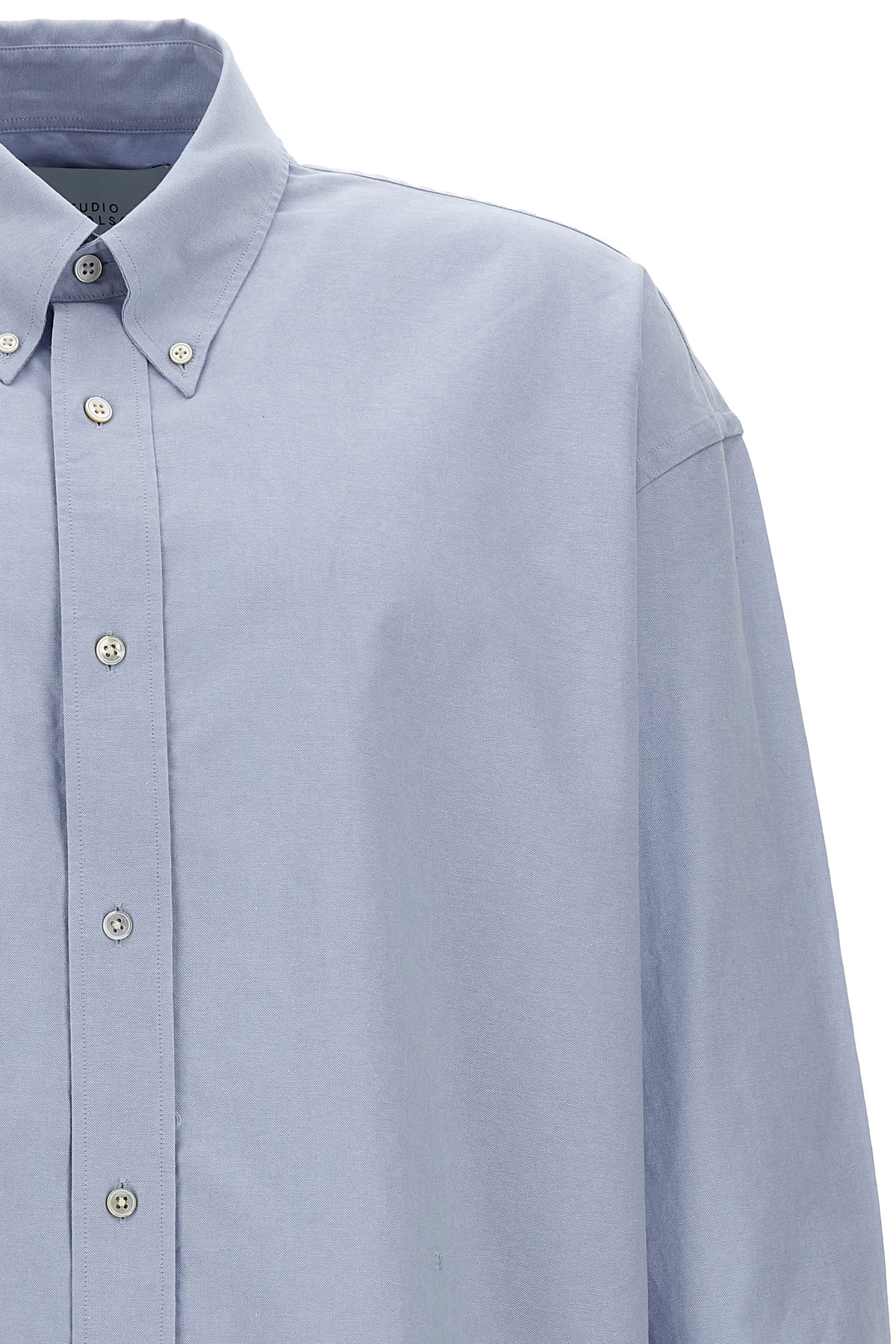 Oversize cotton shirt with tonal logo embroidery and button closure.