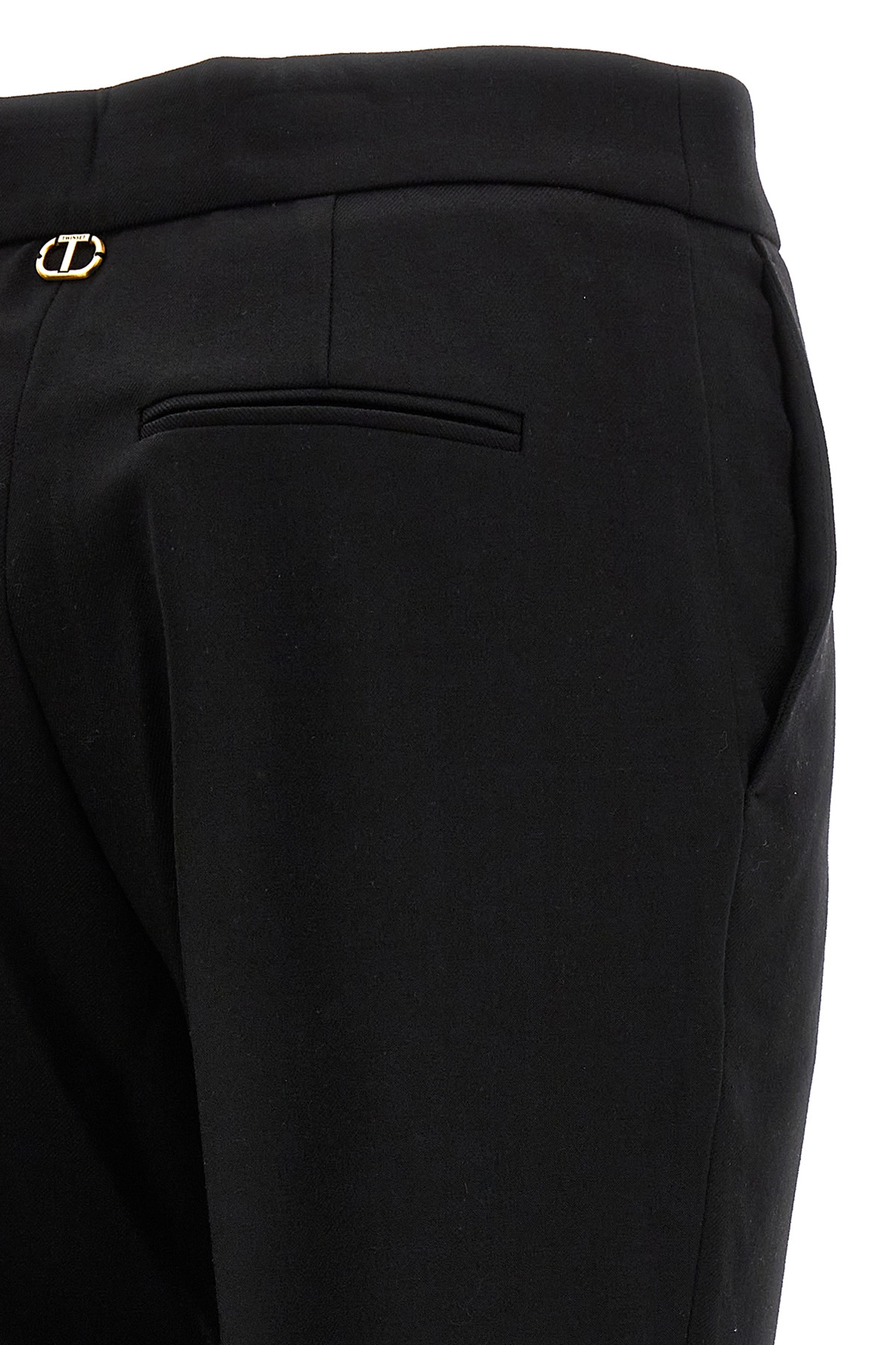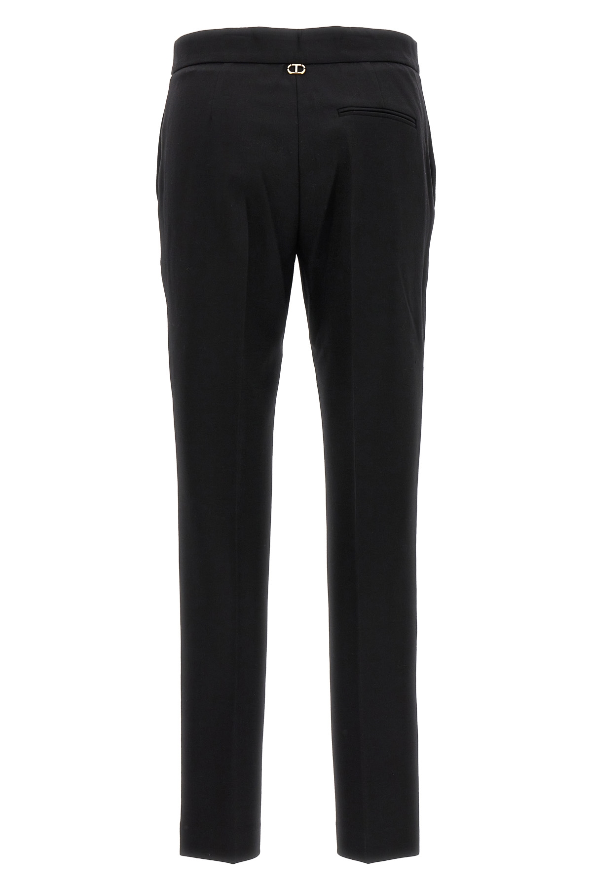Wool blend pants featuring a zip, hook-and-eye and button closure, pockets and a straight leg with central crease.