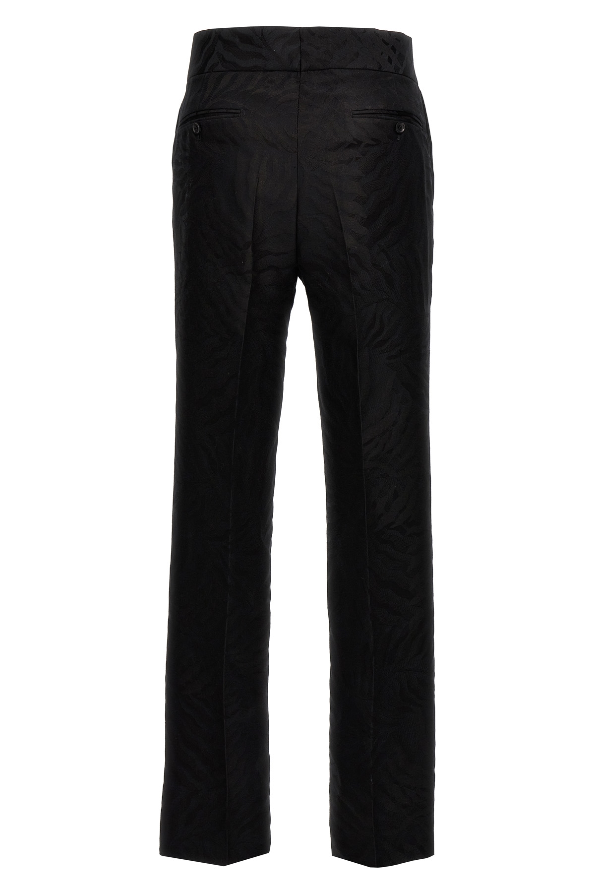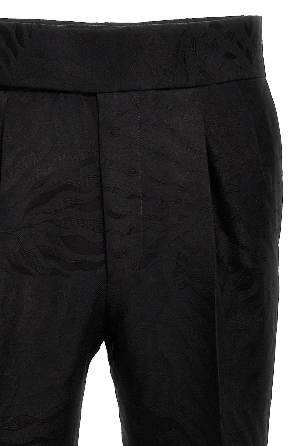 Wool blend cotton pants with jacquard fabric, model with pleats, zip and hook closure.