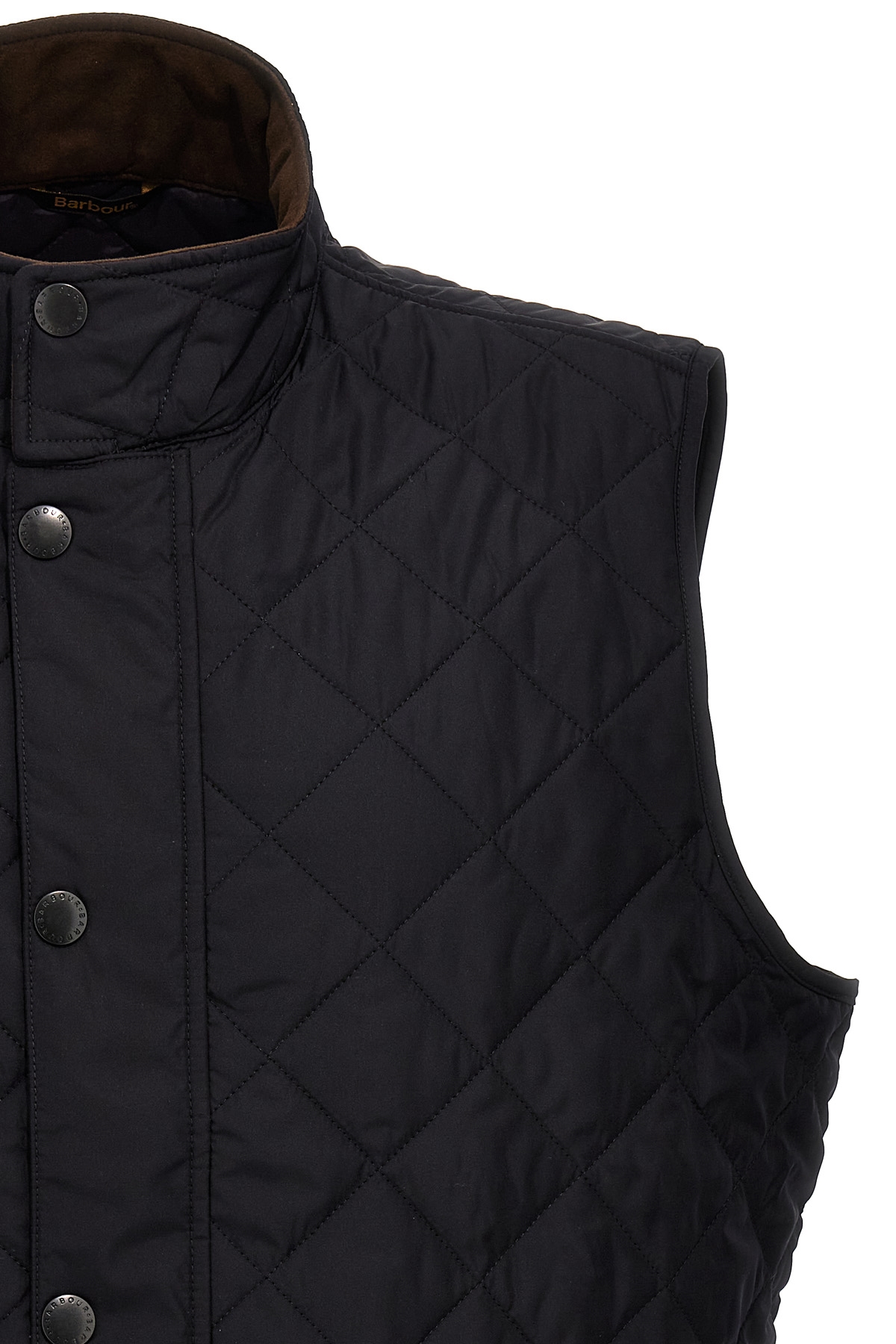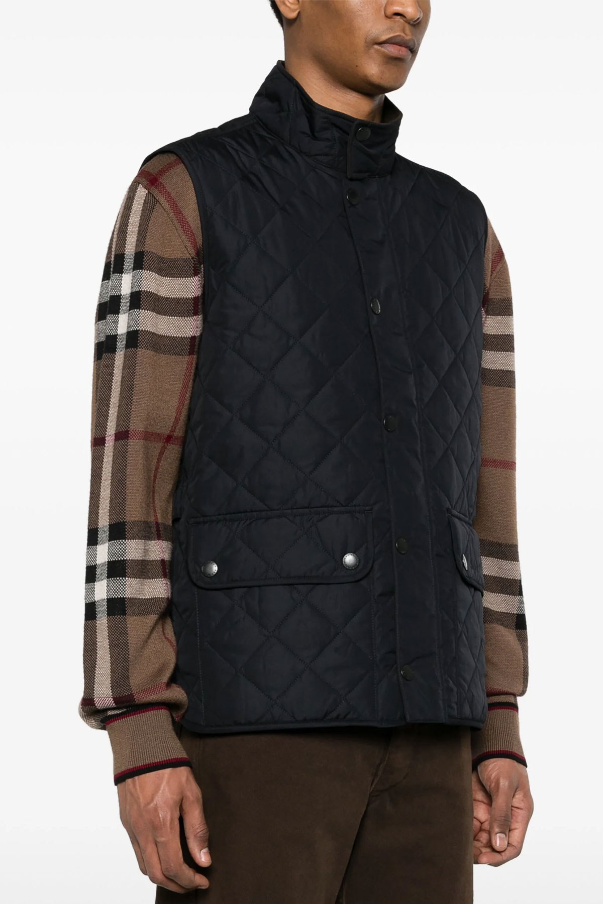 'New Lowerdale' quilted nylon vest, zip and button closure, pockets.