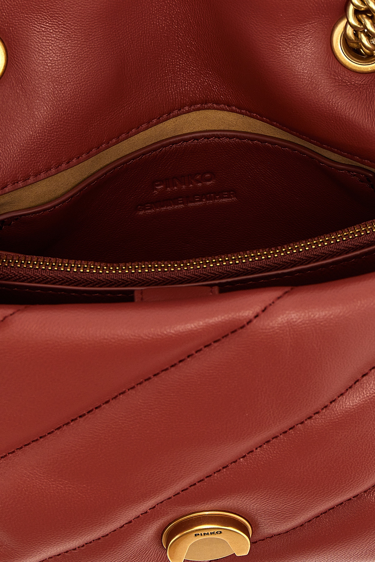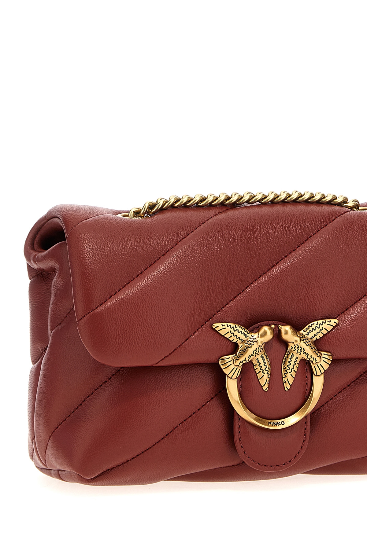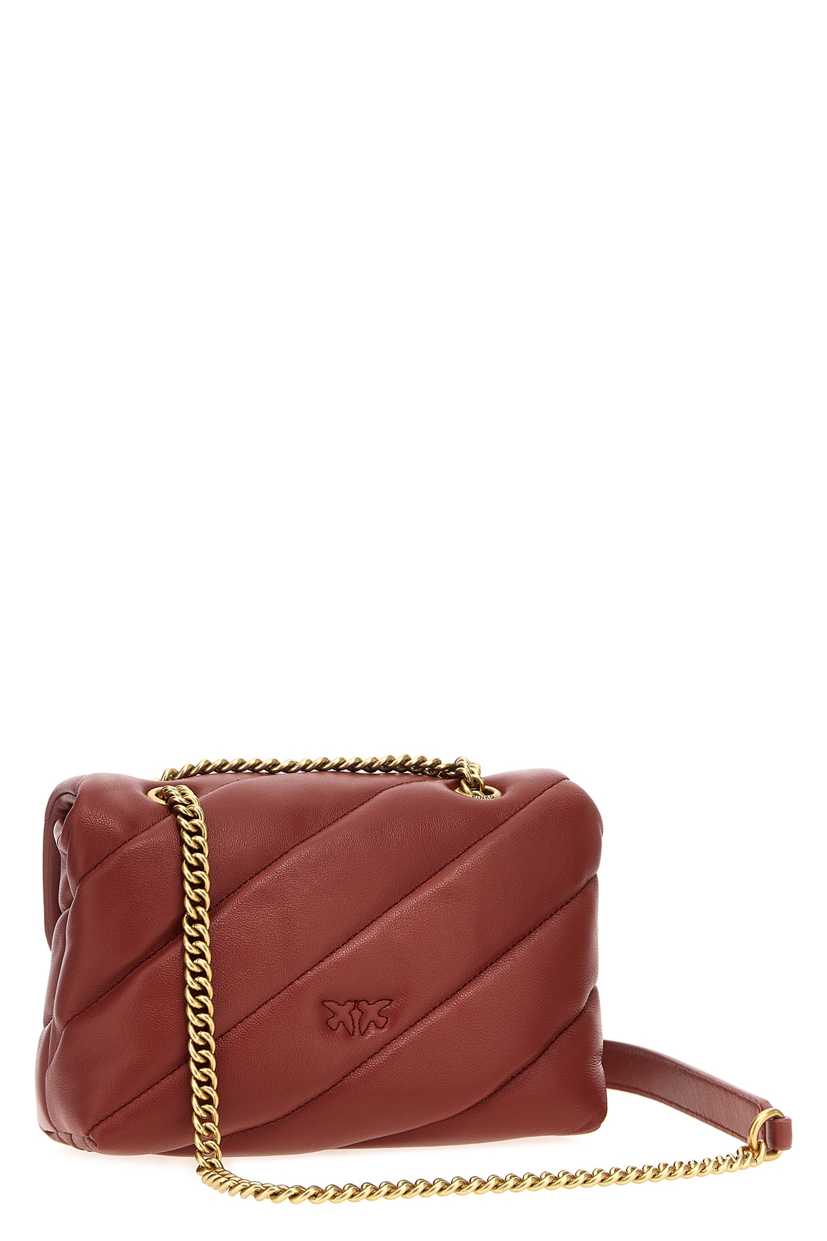 'Love Mini Puff' quilted leather crossbody bag, flap closure with front metal logo applique, chain and leather shoulder strap.