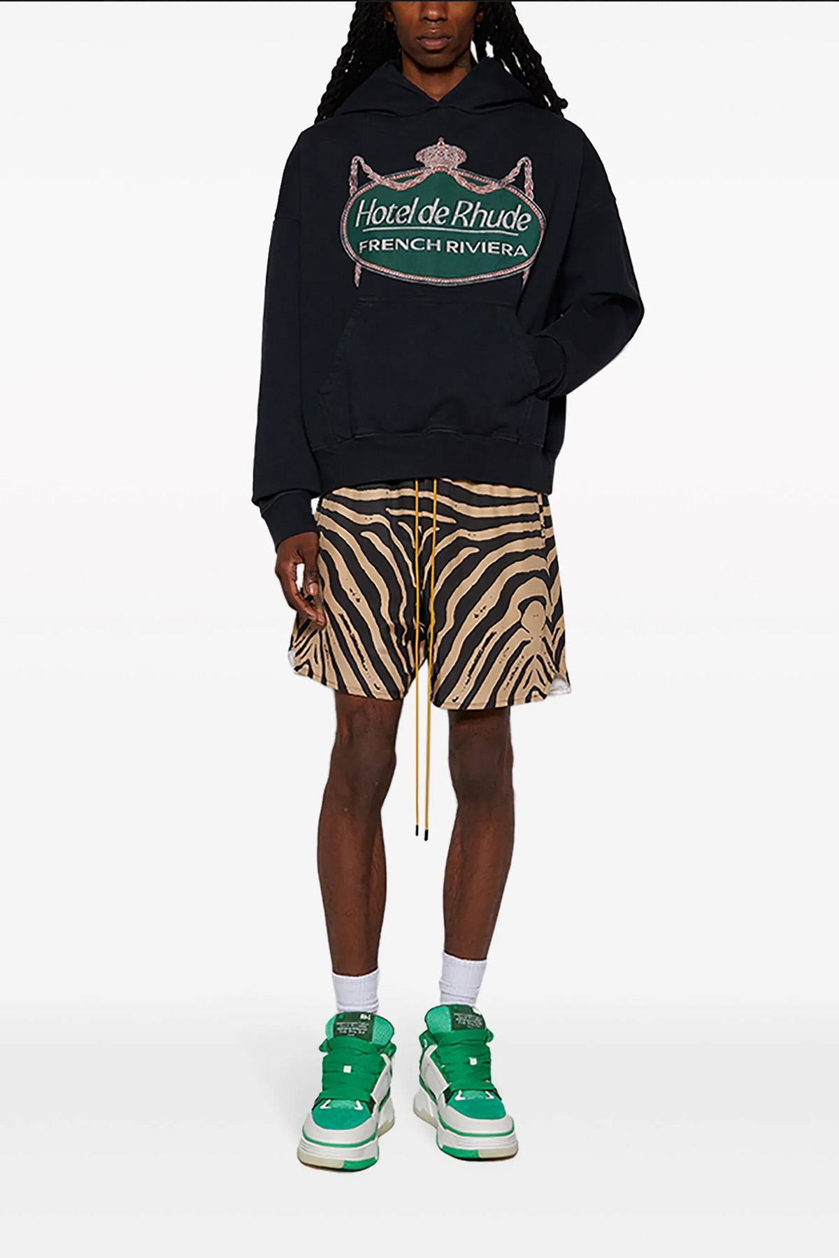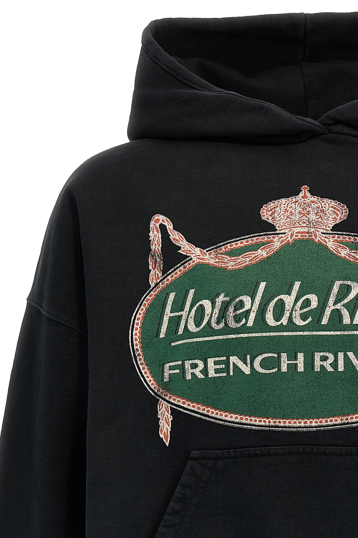 Fleece cotton hoodie with front 'Rhude Riviera' print, kangaroo pocket, long cuffed sleeves.