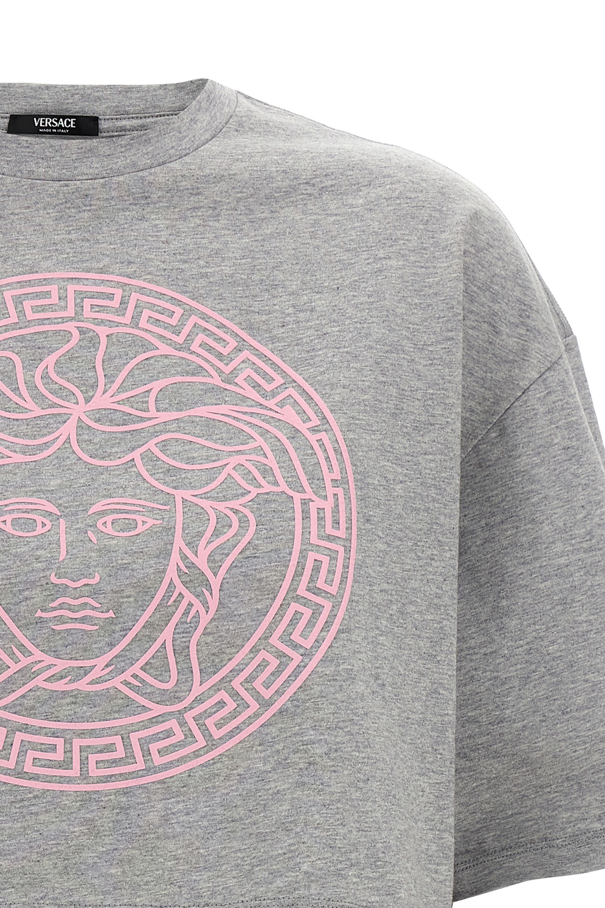 Cotton T-shirt, embossed 'La Medusa' print on the front, crop model, crew neck, short sleeves.