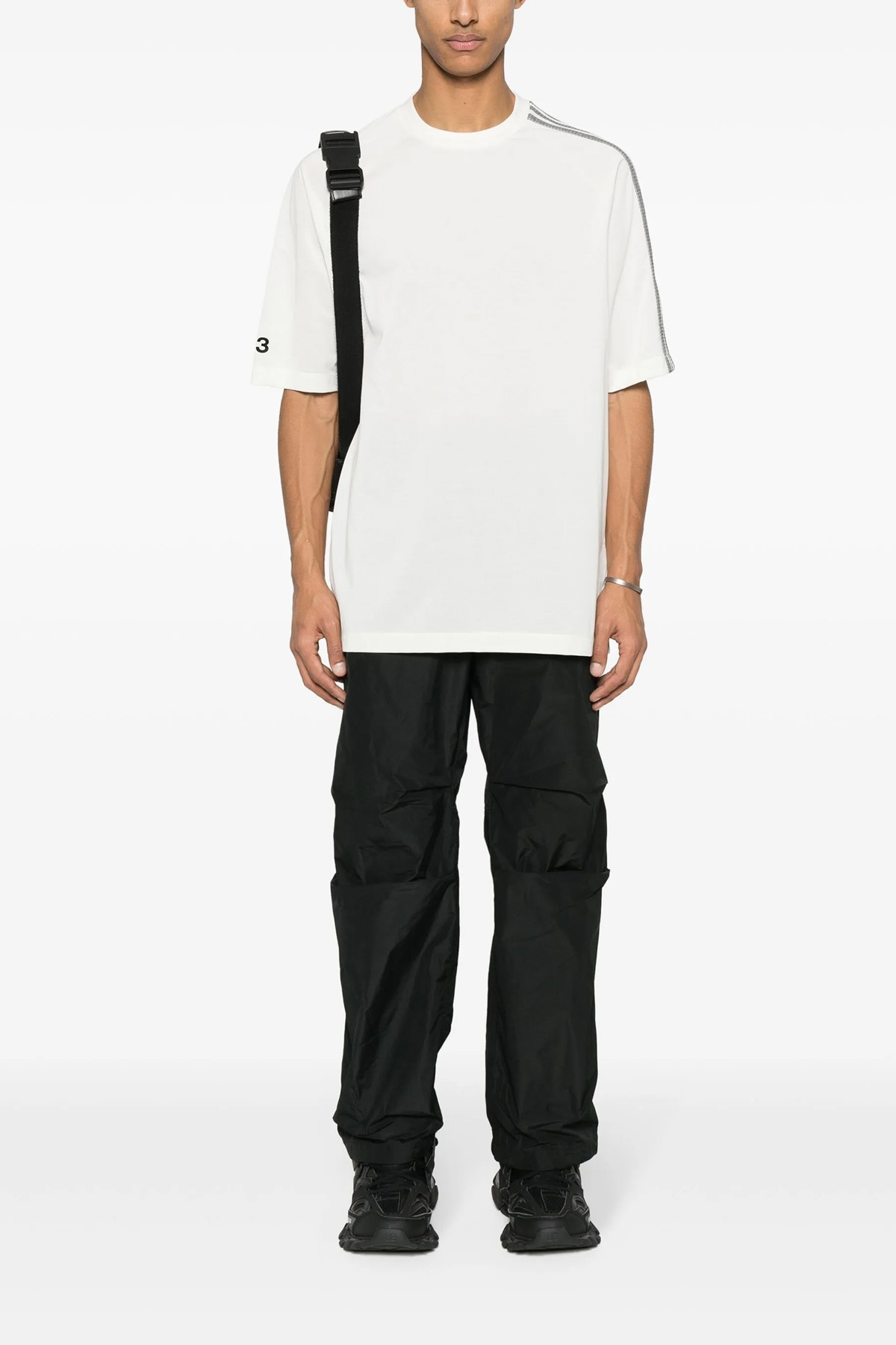 '3S' cotton T-shirt with contrast knit details, crew neck, short sleeves, side splits.