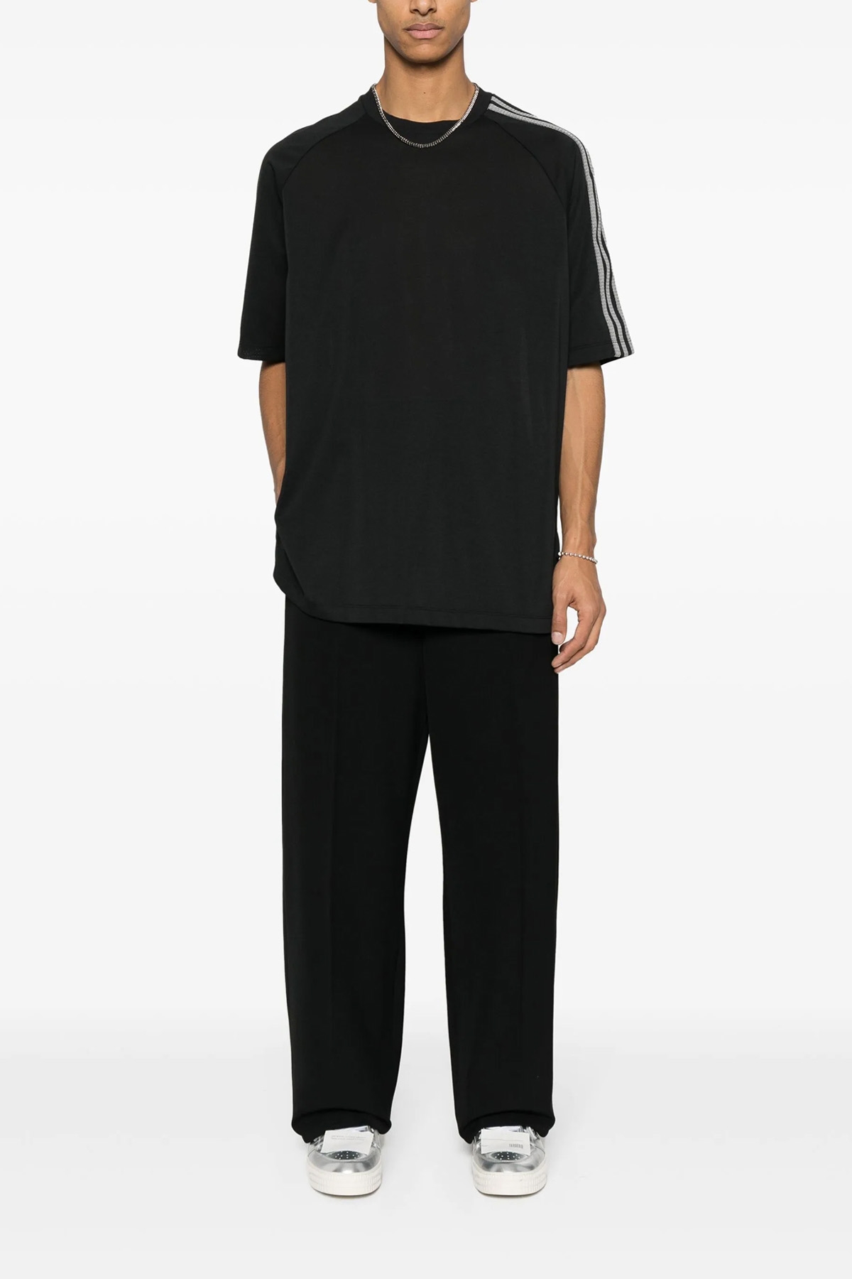 '3S' cotton T-shirt with contrast knit details, crew neck, short sleeves, side splits.