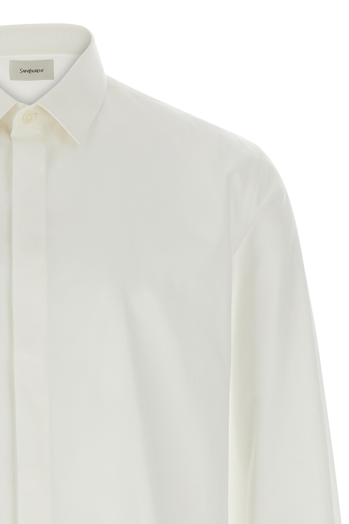 Cotton poplin shirt with button closure, long cuffed sleeves.