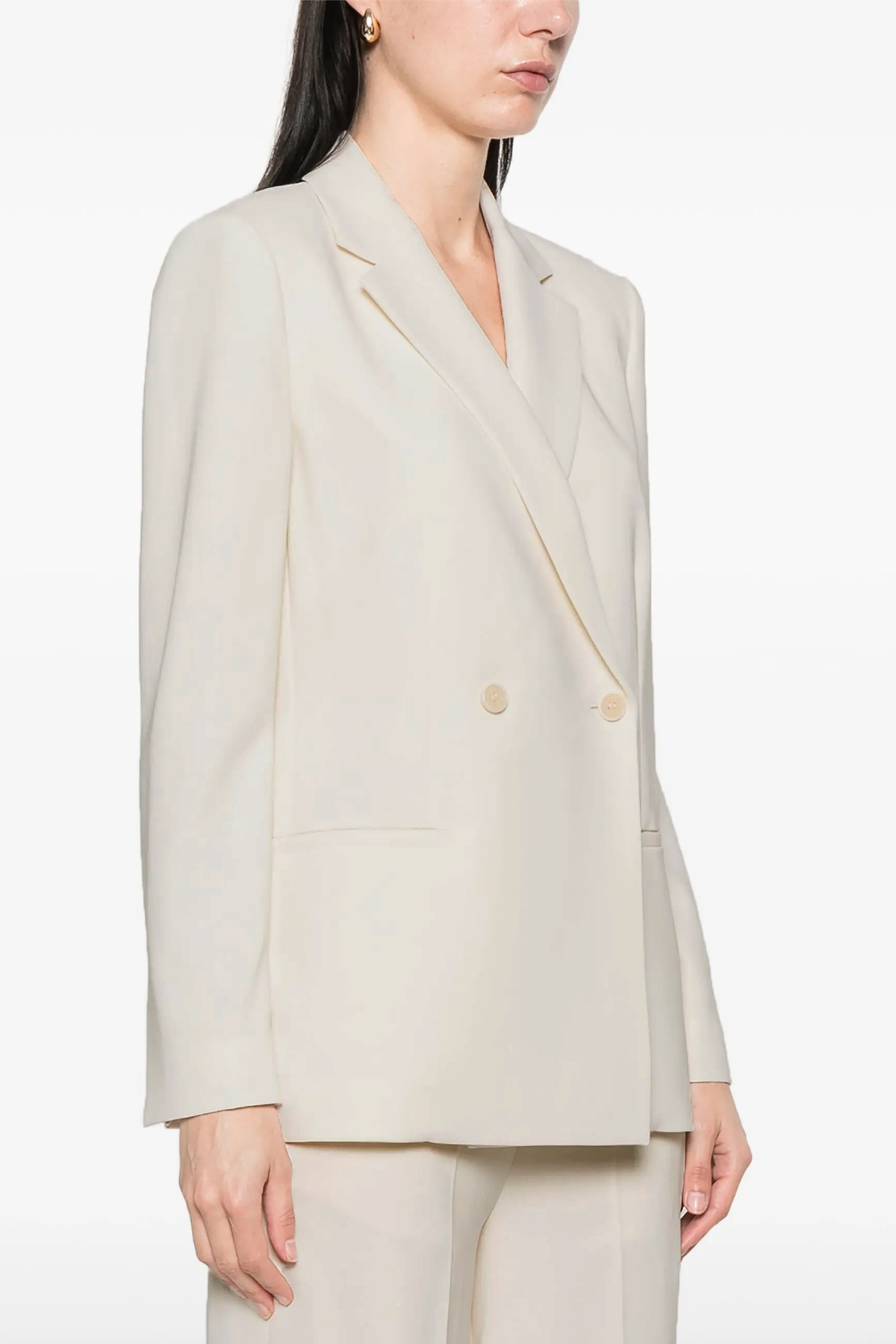 'Relaxed DB' double-breasted blazer with button closure, mirror lapels, lining, pockets, long sleeves, padded shoulders, back vent.