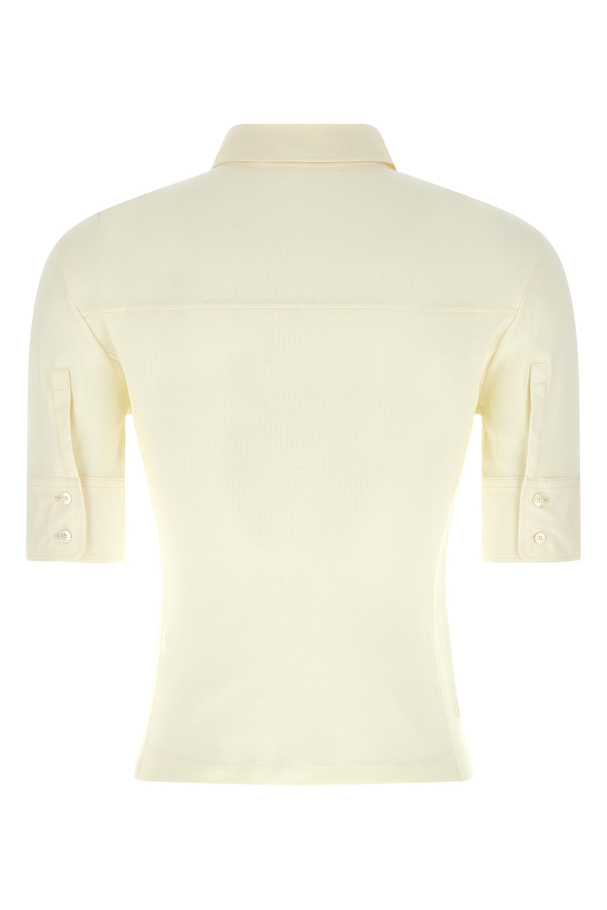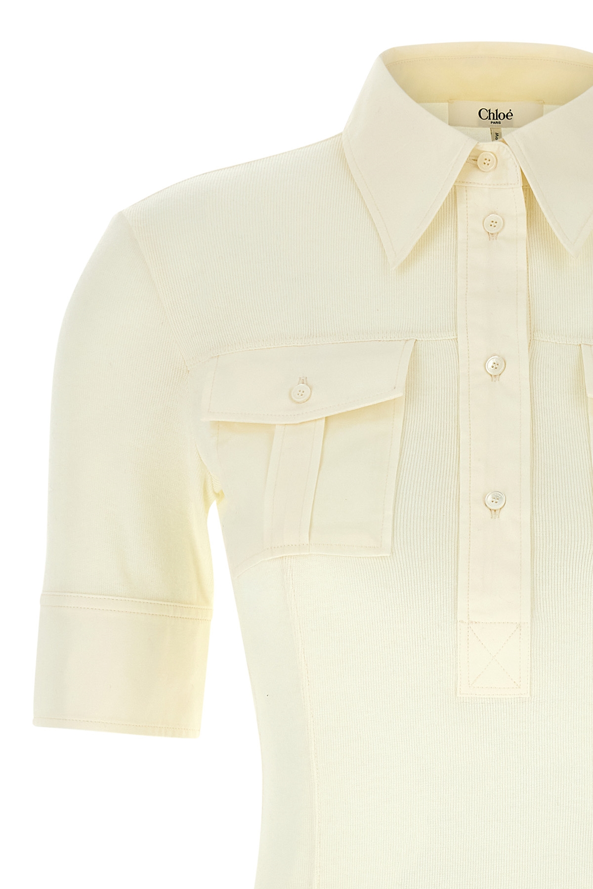 Micro-ribbed stretch cotton polo shirt with pockets with tone-on-tone embroidered logo, collar and buttons, and short sleeves with cuffs.
