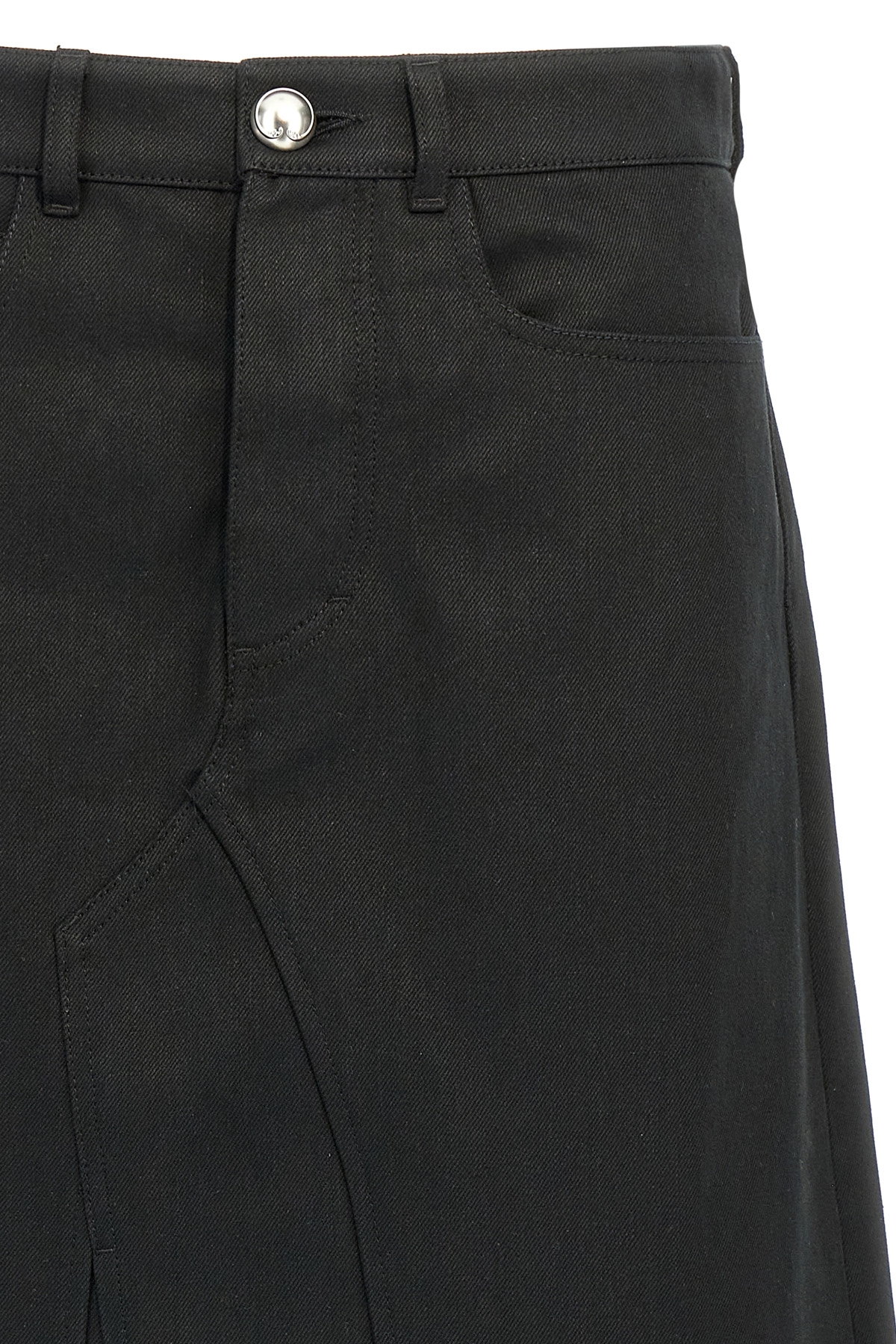 Midi skirt in cotton canvas, slightly flared, metal button and zip closure, back split, pockets.