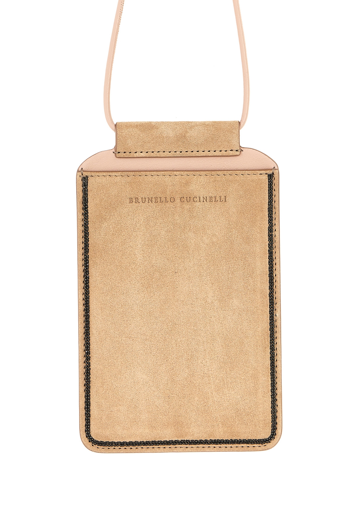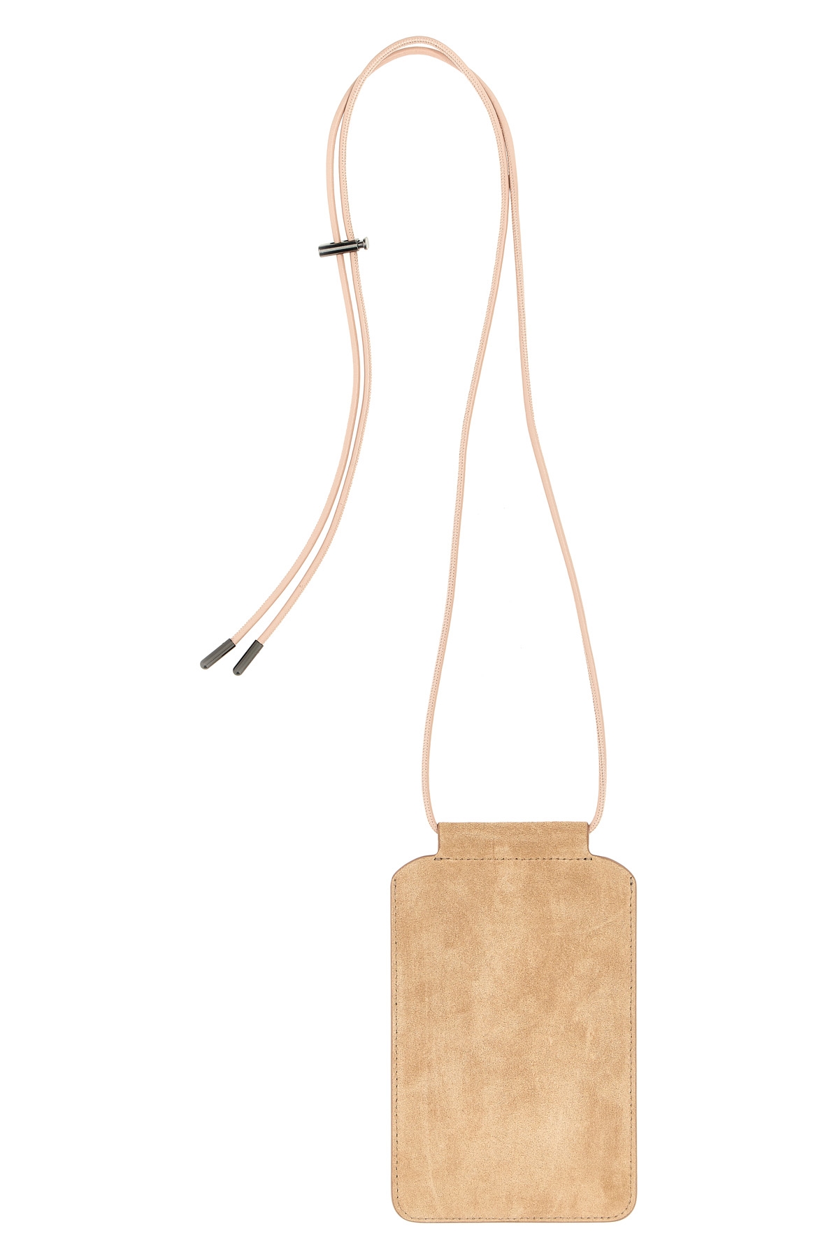 Suede and leather smartphone holder with Monile 'Shiny Trim' detail on the front.