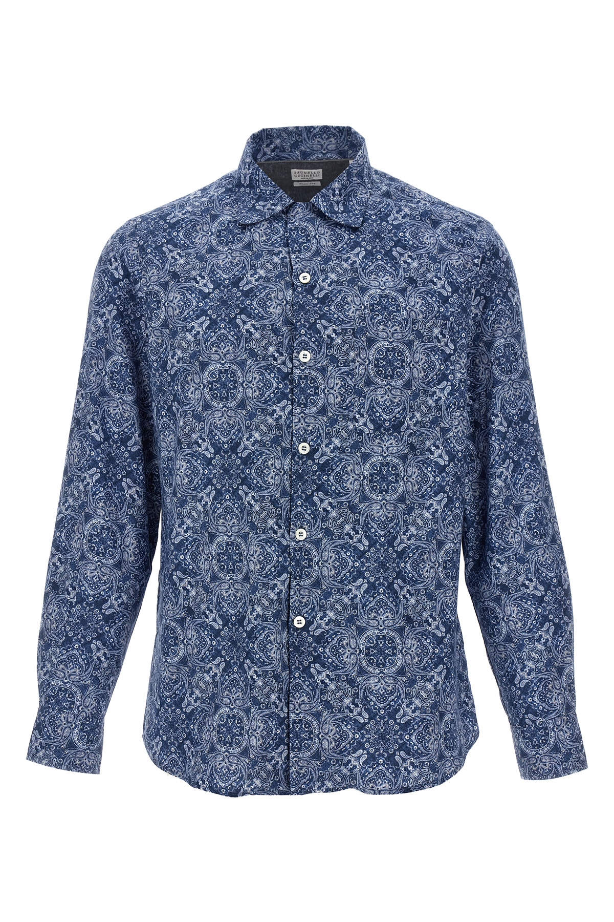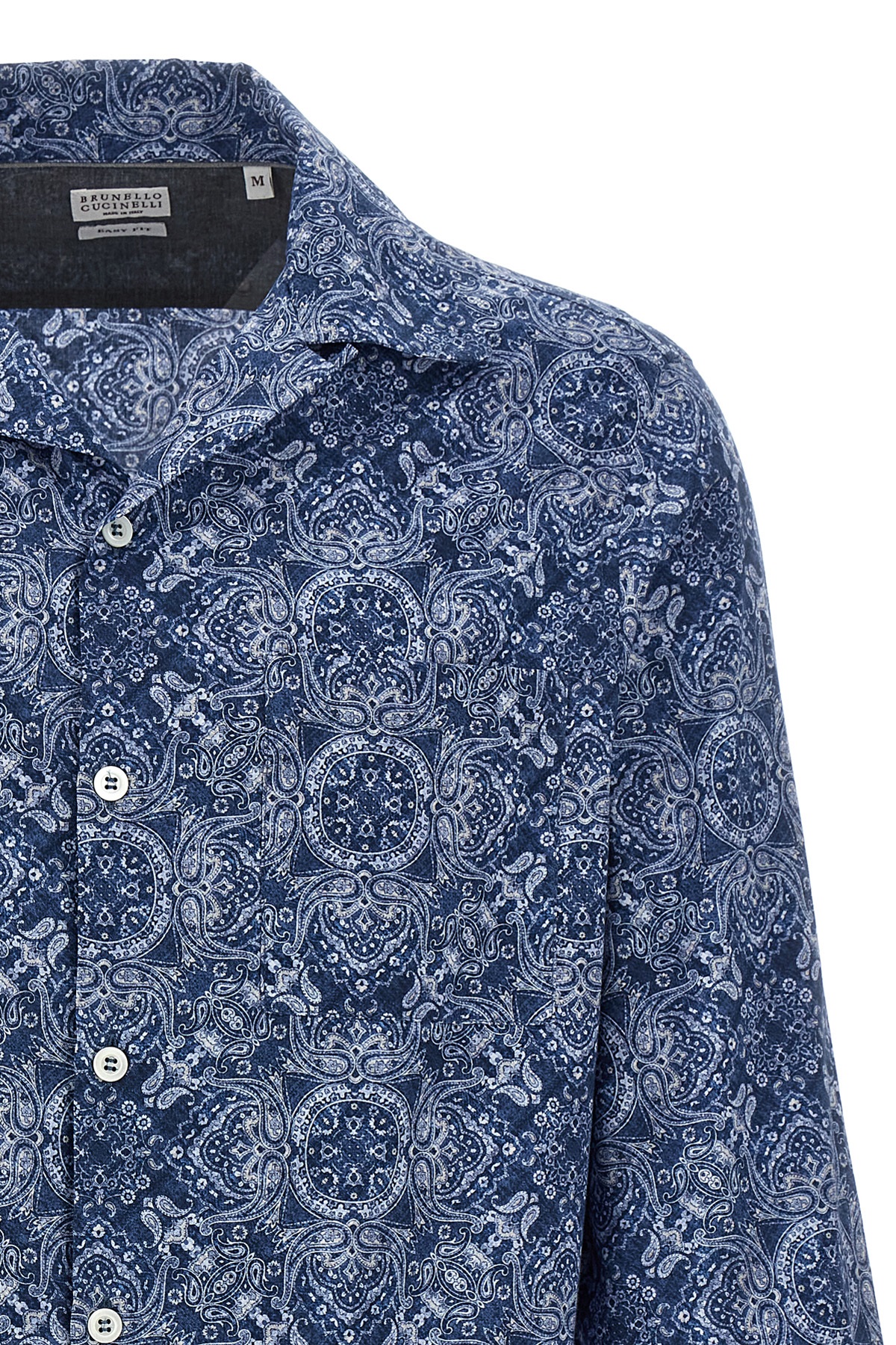 Paisley print cotton shirt with button closure, chest pocket, long cuffed sleeves.