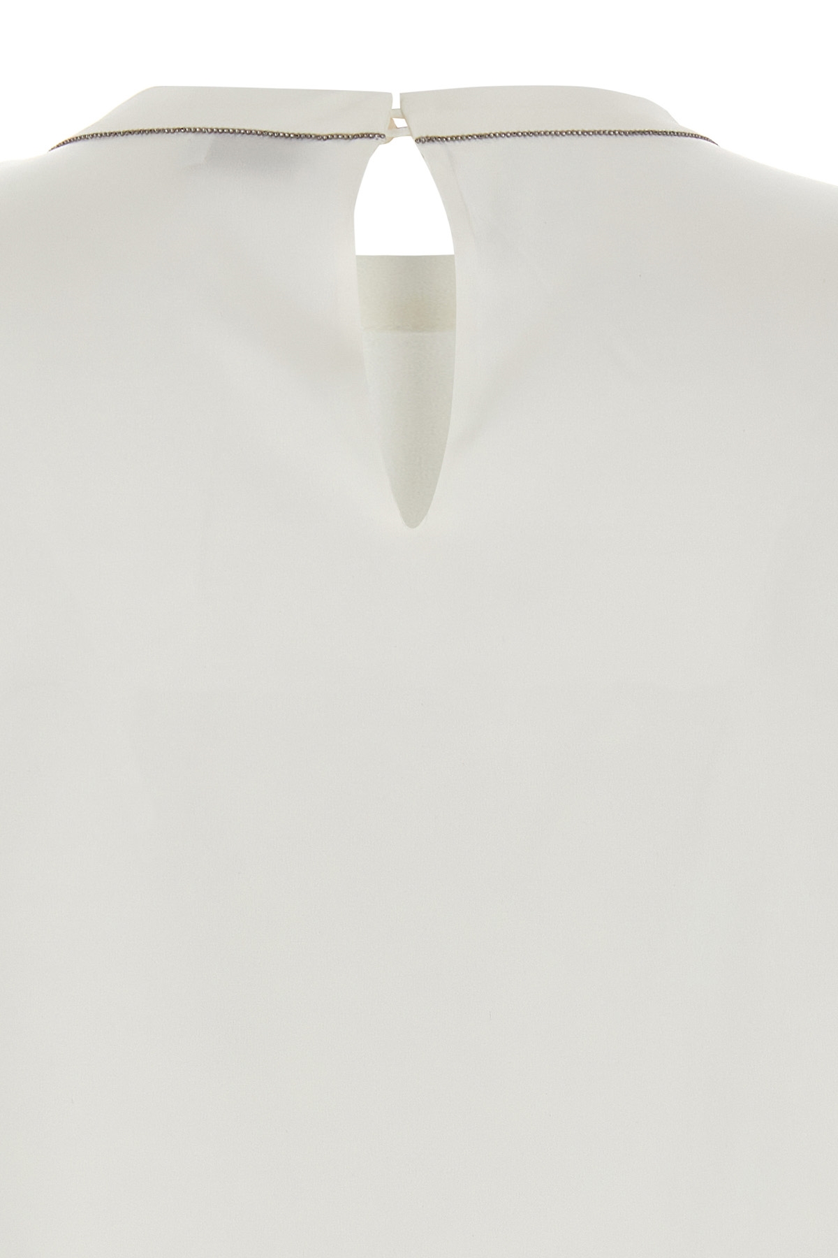 Silk crewneck blouse with back button closure with cut-out details and Monile, short sleeves.