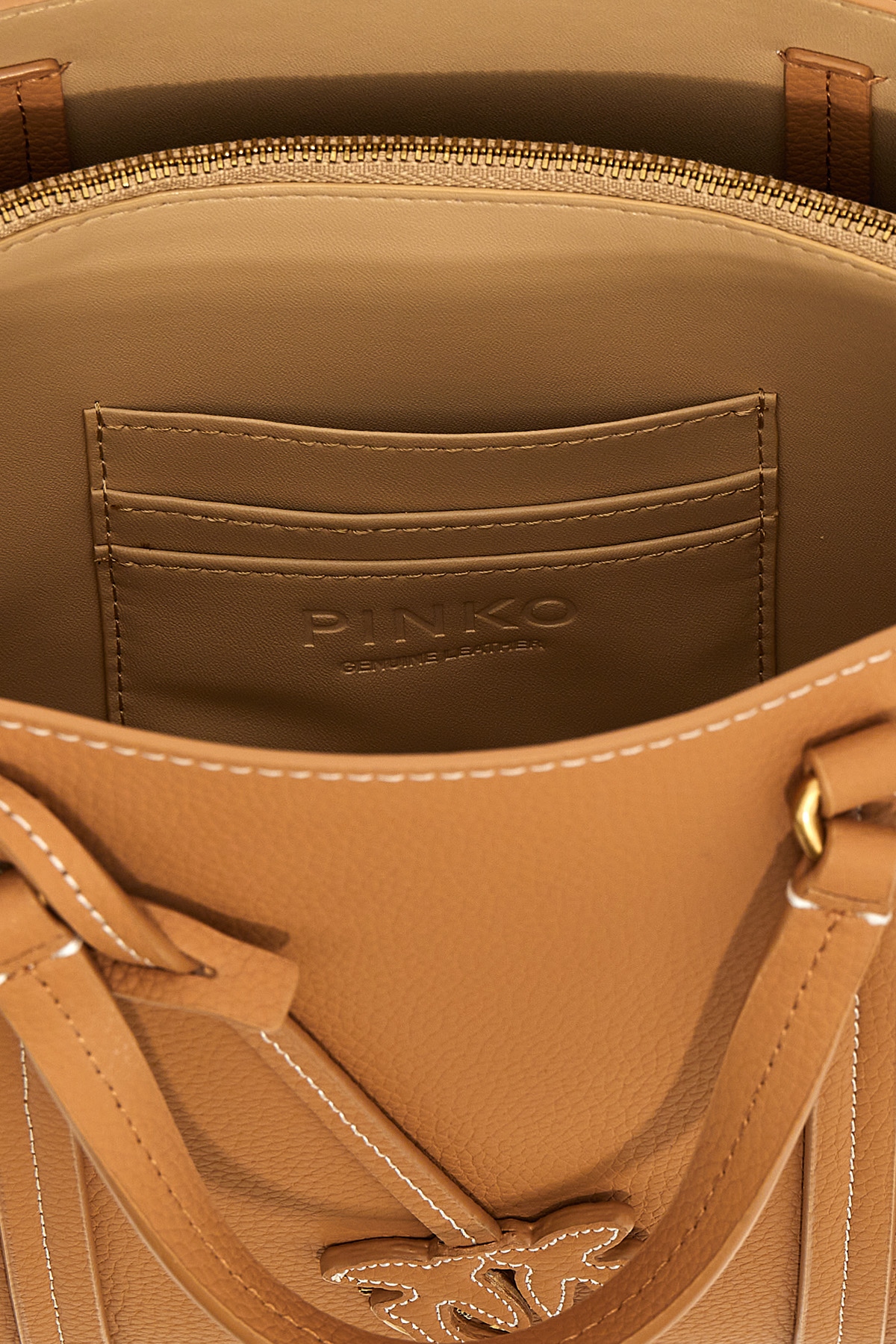 Classic 'Carrie' shopping bag in paired drummed leather, front metal logo, double fixed handle, inside pocket with zip closure, adjustable and removable shoulder strap.