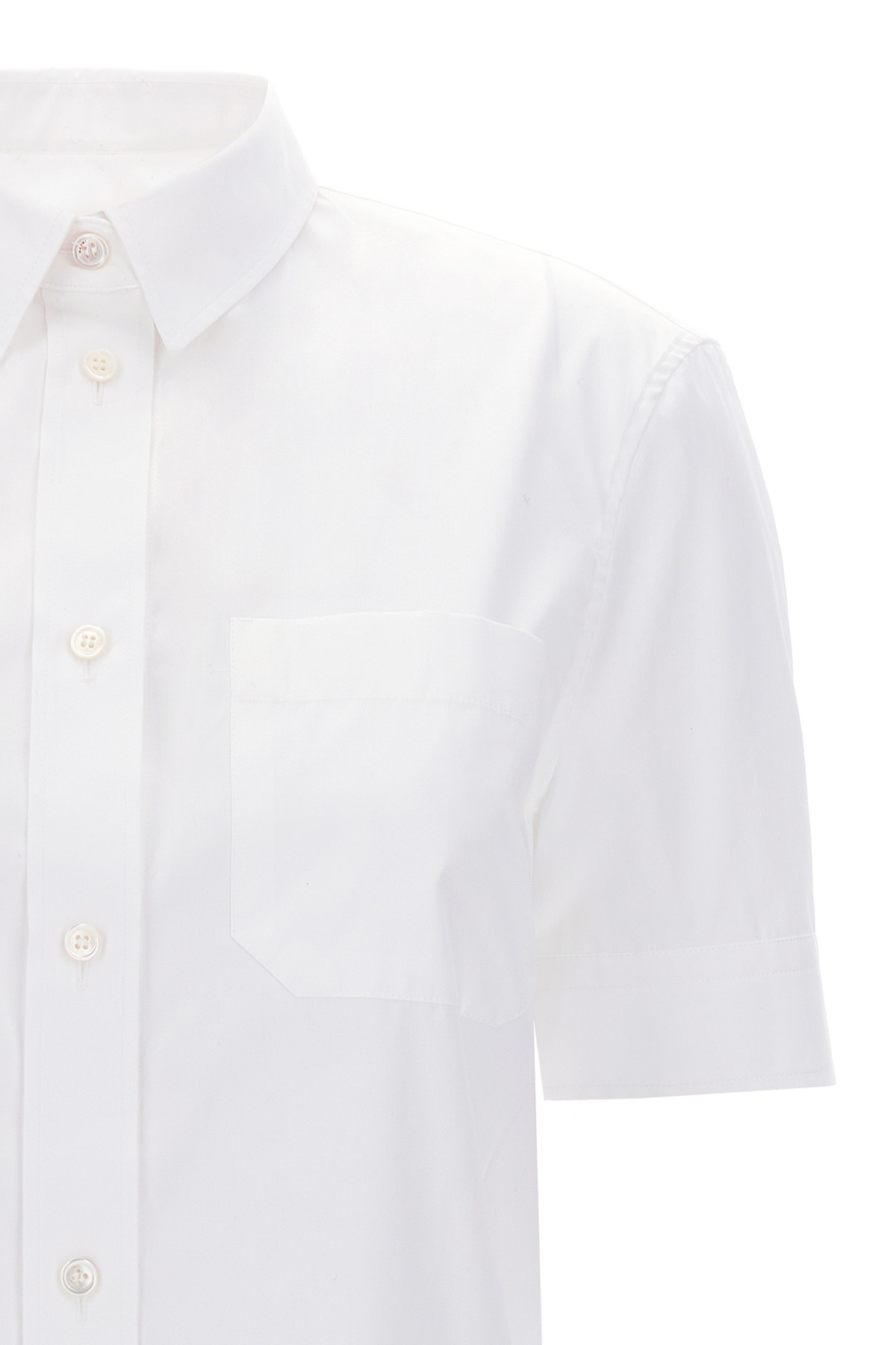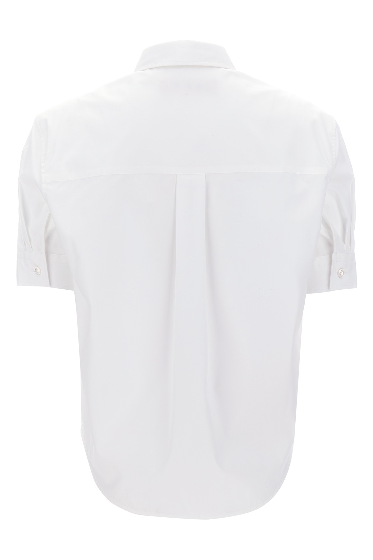 Cotton poplin shirt with front logo embroidery, collar, button closure, short sleeves with cuffs.