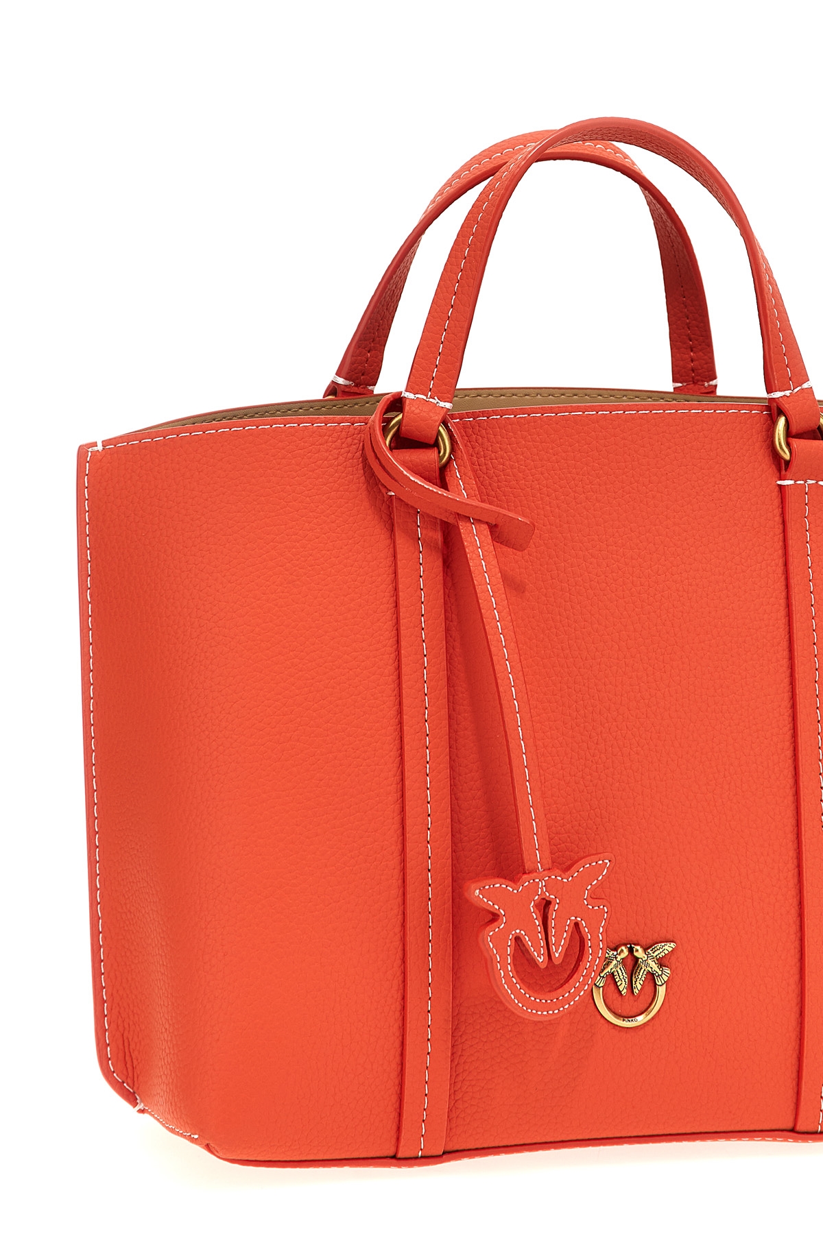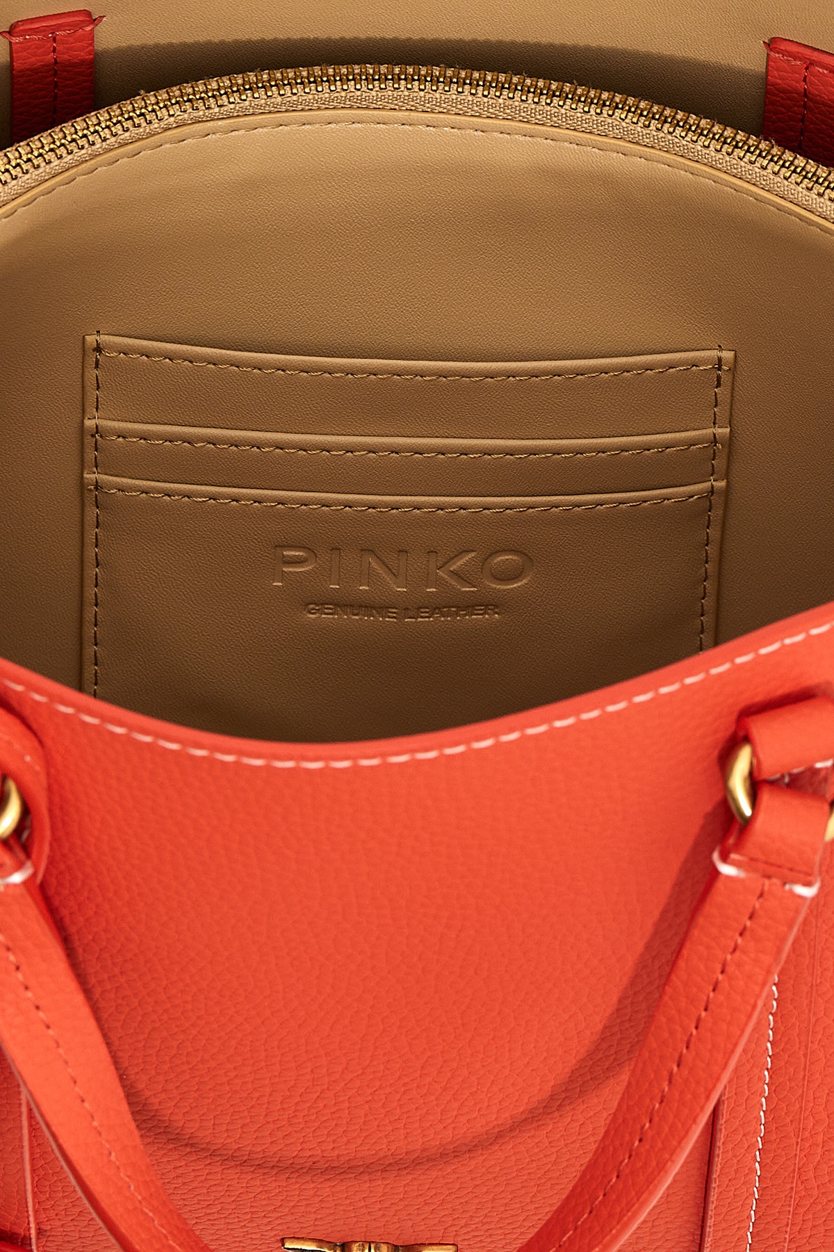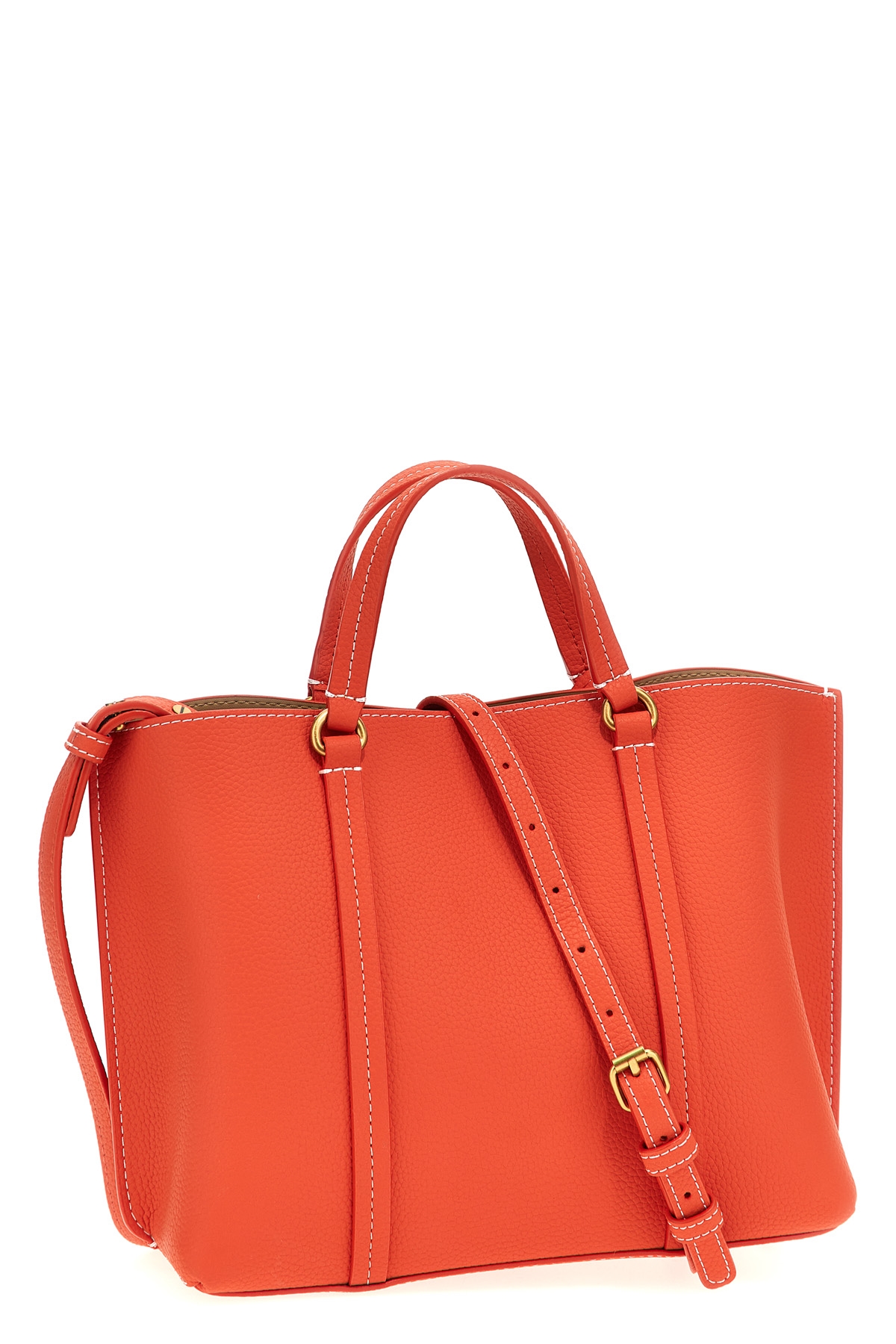 Classic 'Carrie' shopping bag in paired drummed leather, front metal logo, double fixed handle, inside pocket with zip closure, adjustable and removable shoulder strap.
