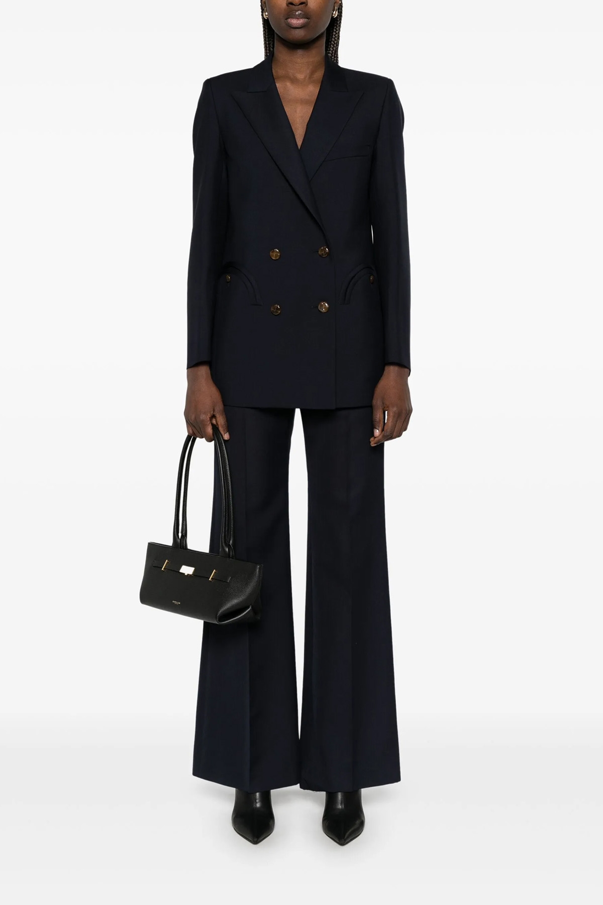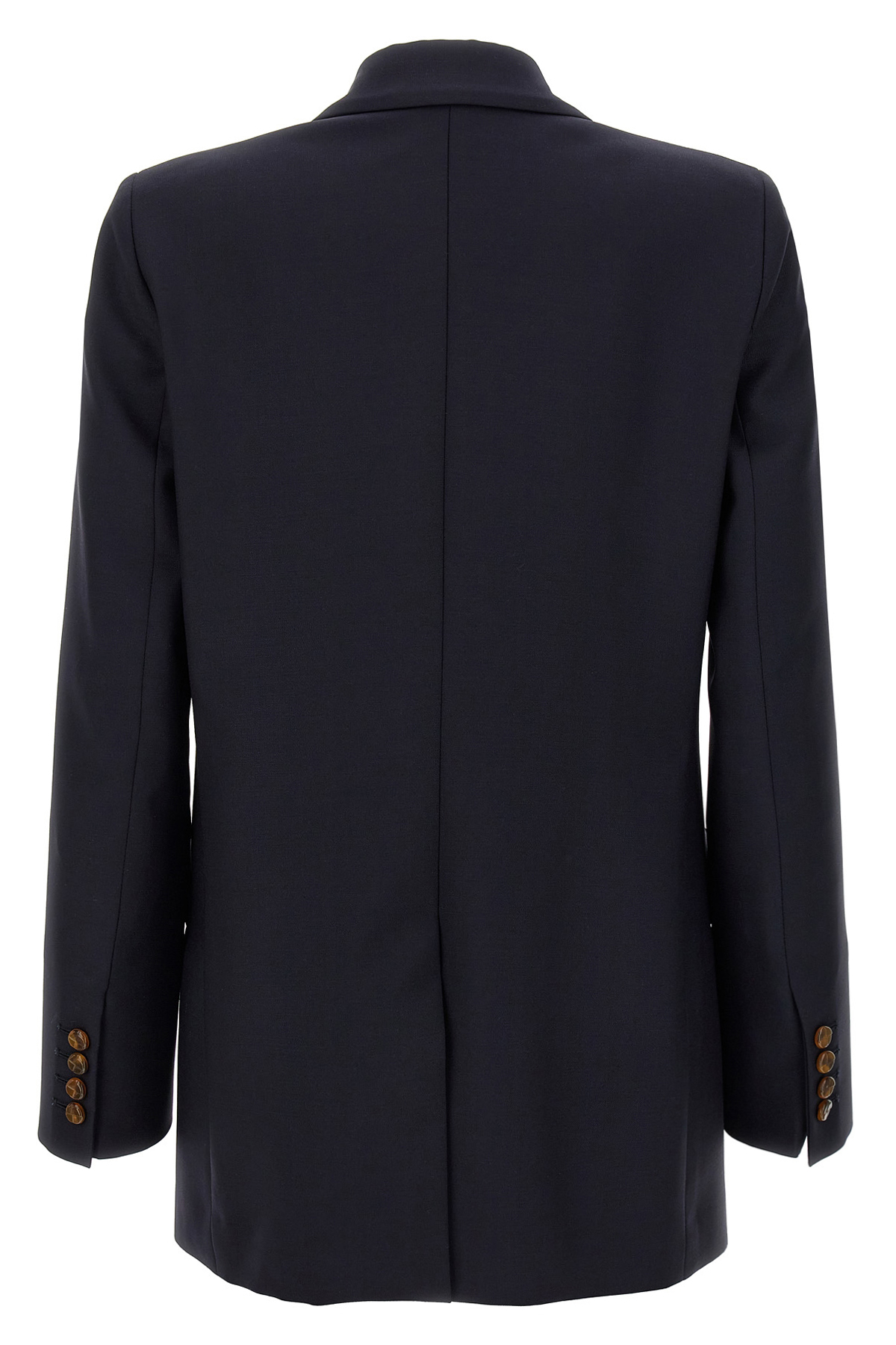 'First Class Everyday' double-breasted blazer in virgin wool and mohair blend with button closure, peak lapels, padded shoulders, pockets, viscose lining, back split.