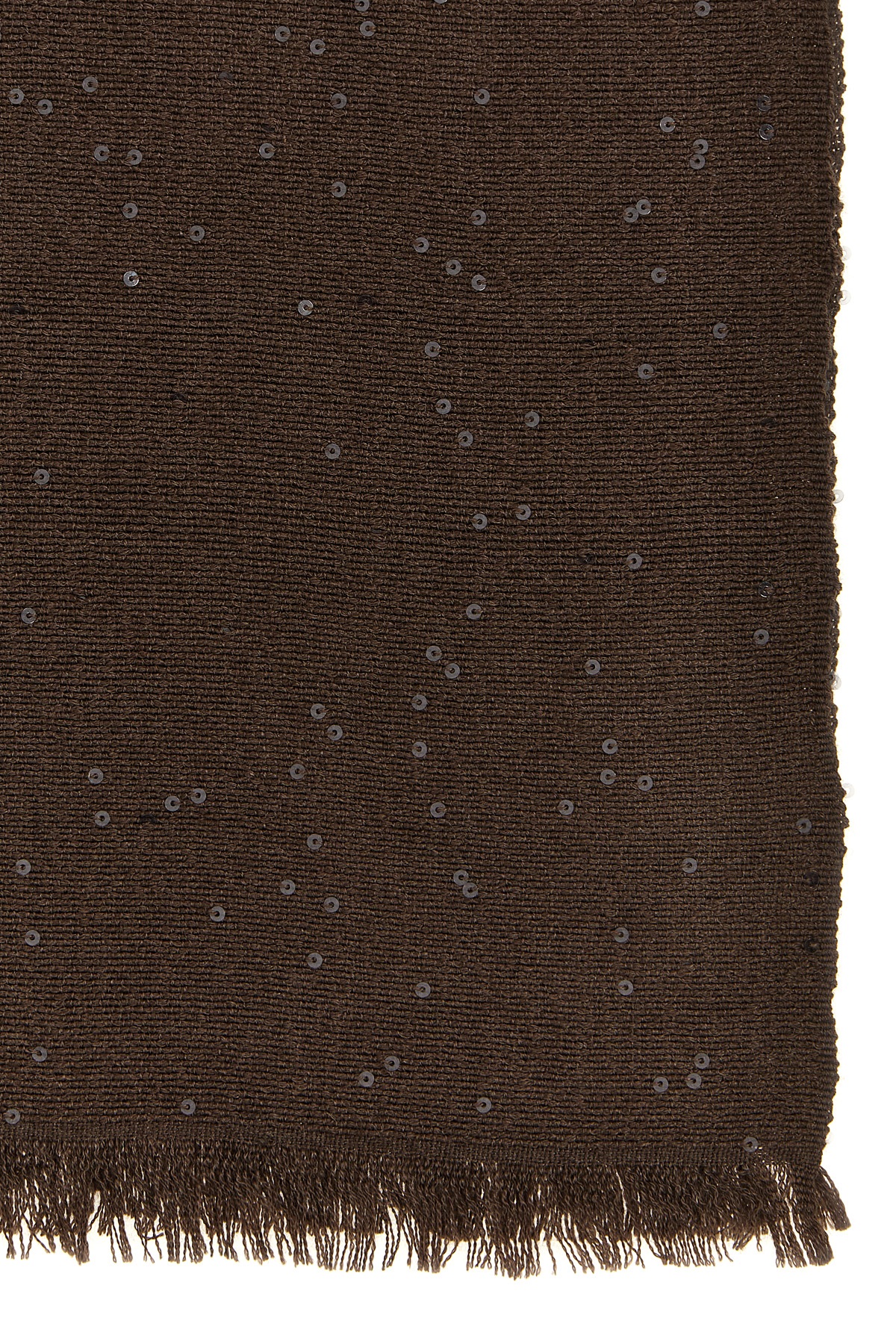 Cashmere and silk blend scarf with all-over micro sequins and fringed edges.