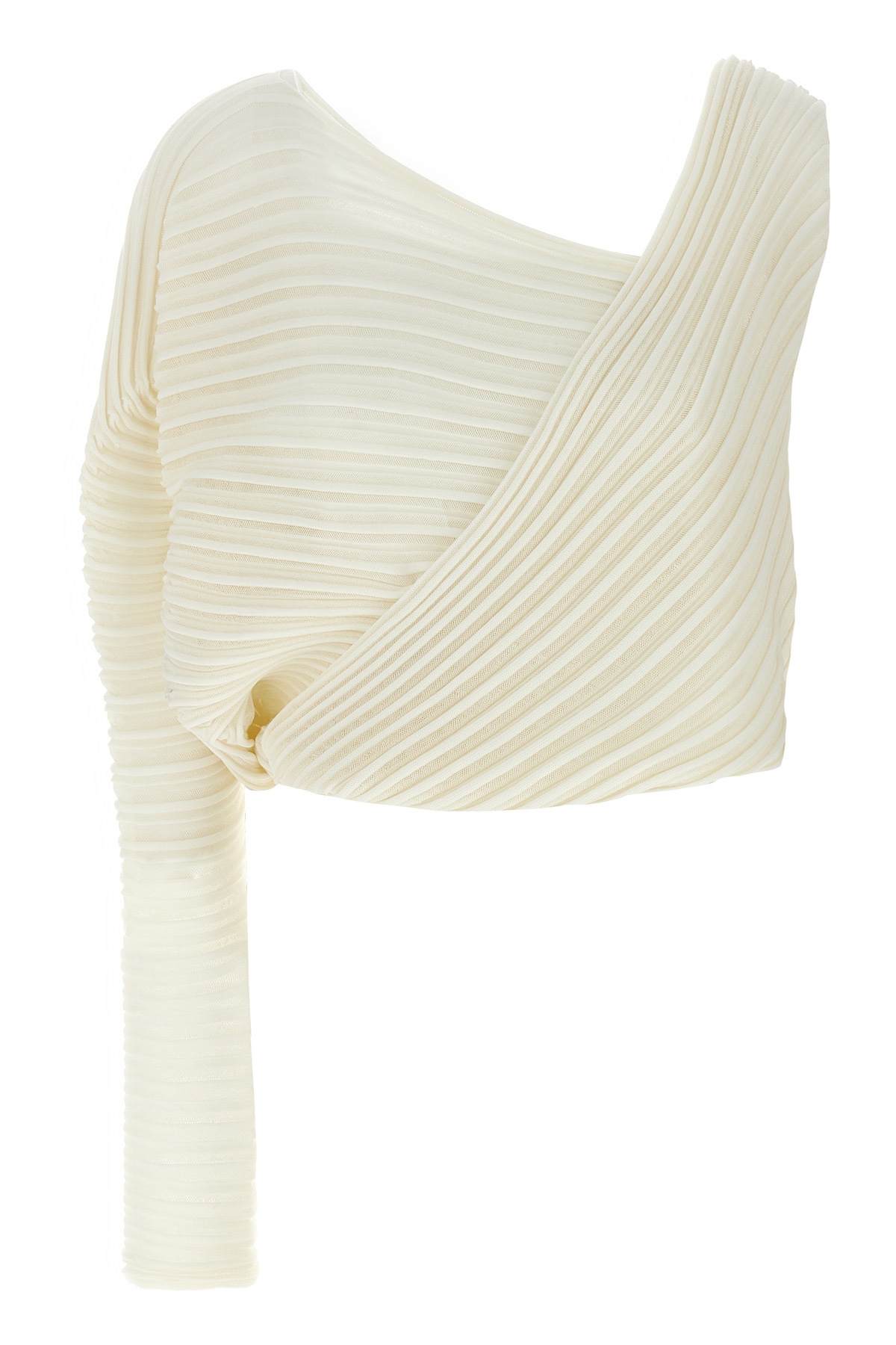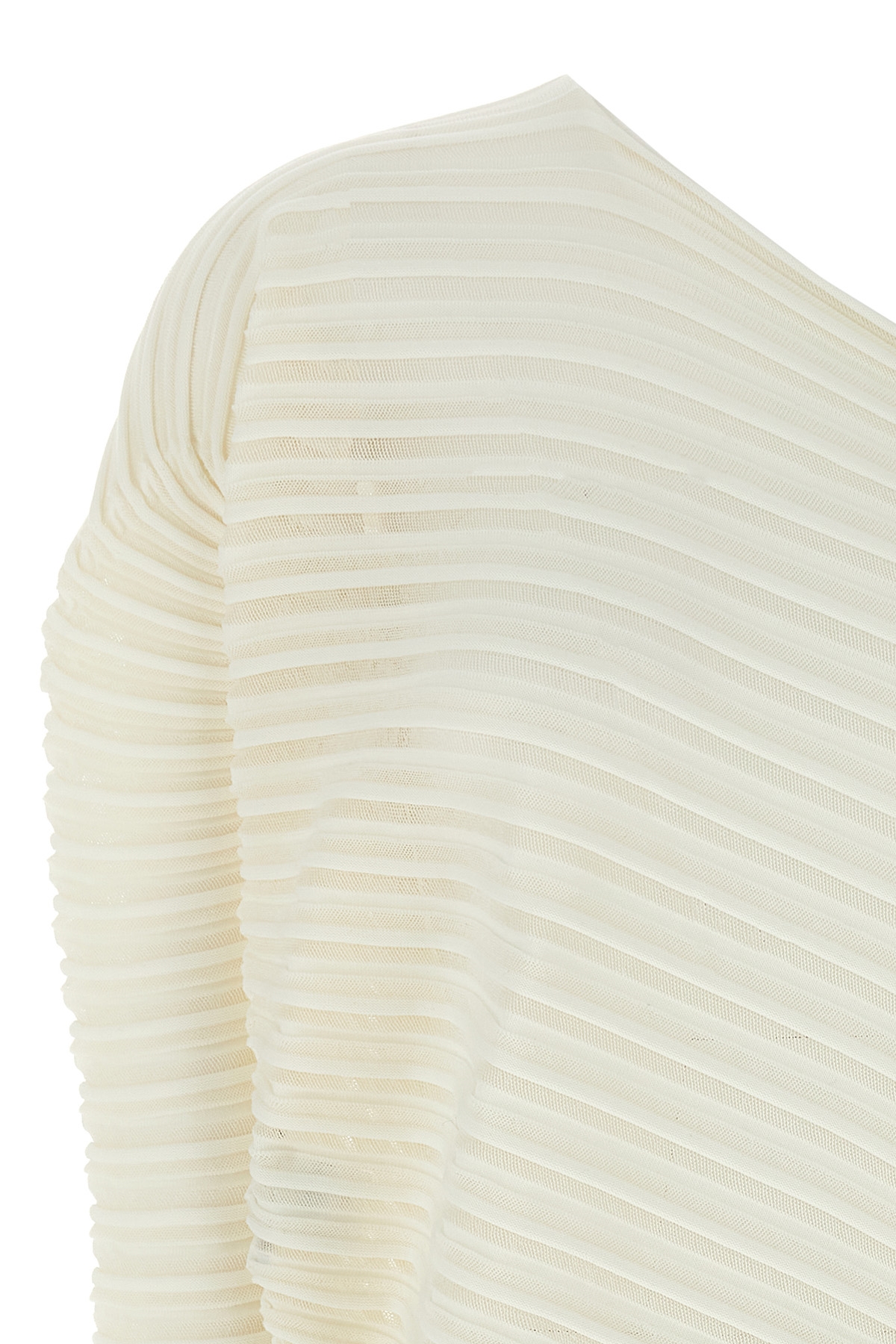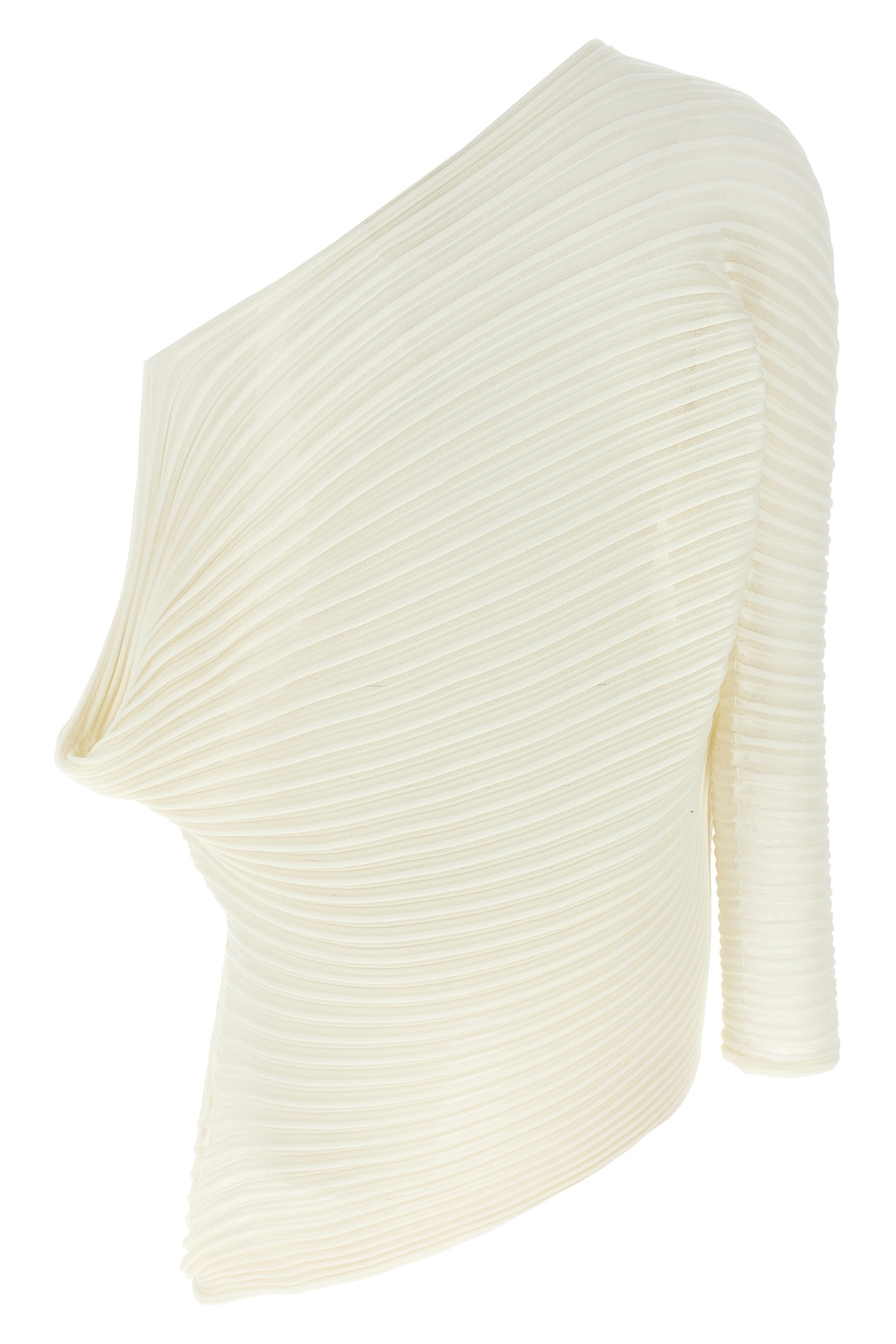 'Stream' pleated knit top, asymmetrical, crew neck.