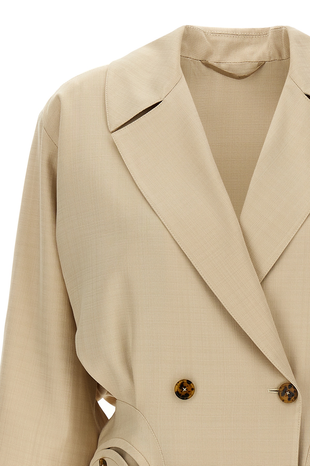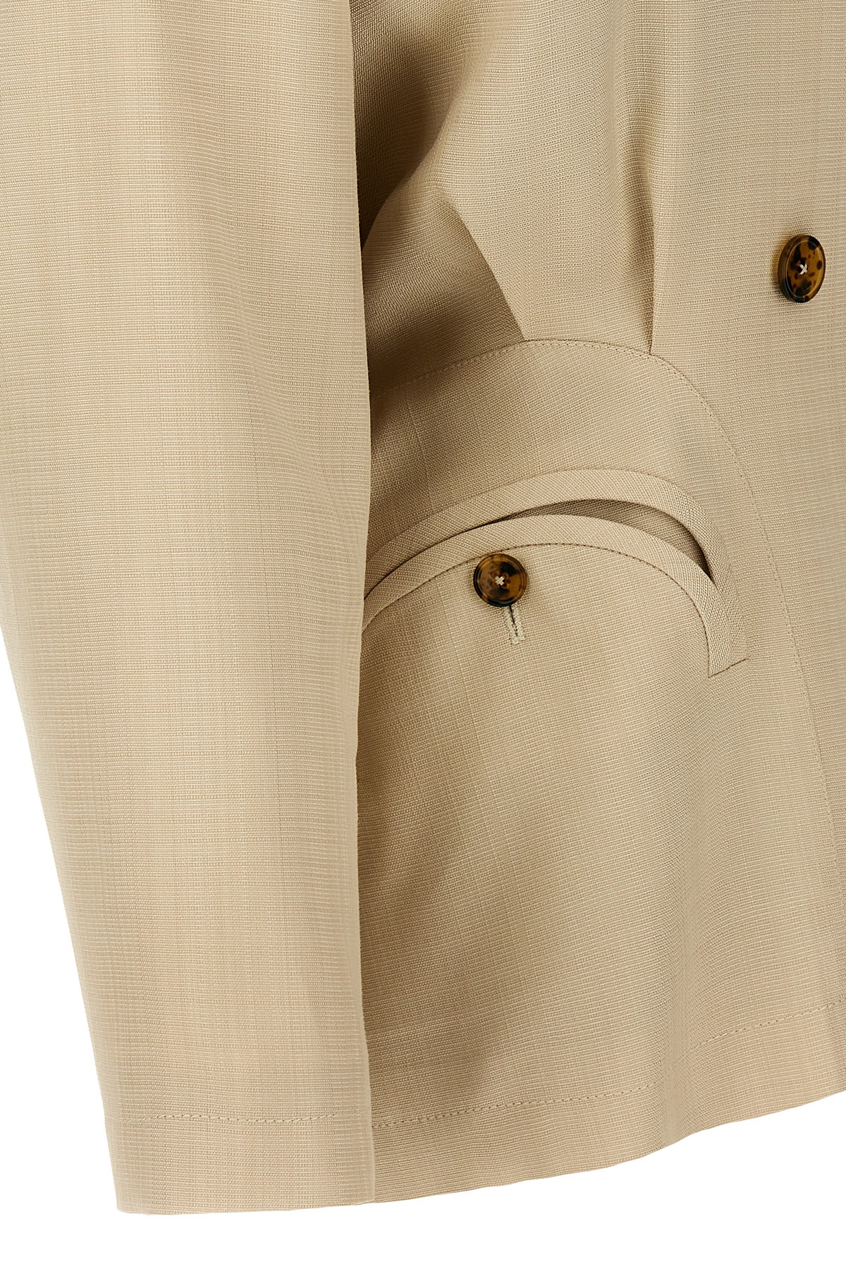 'Sheena Ares' double-breasted viscose blazer with button closure, waist marked with back ruffles, padded shoulders, wide long sleeves with slightly dropped shoulders, pockets and lining.