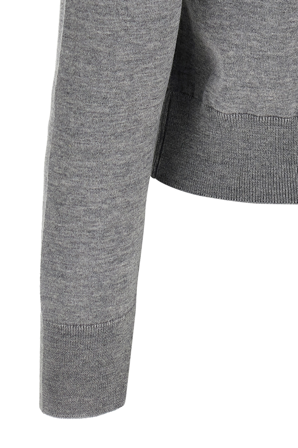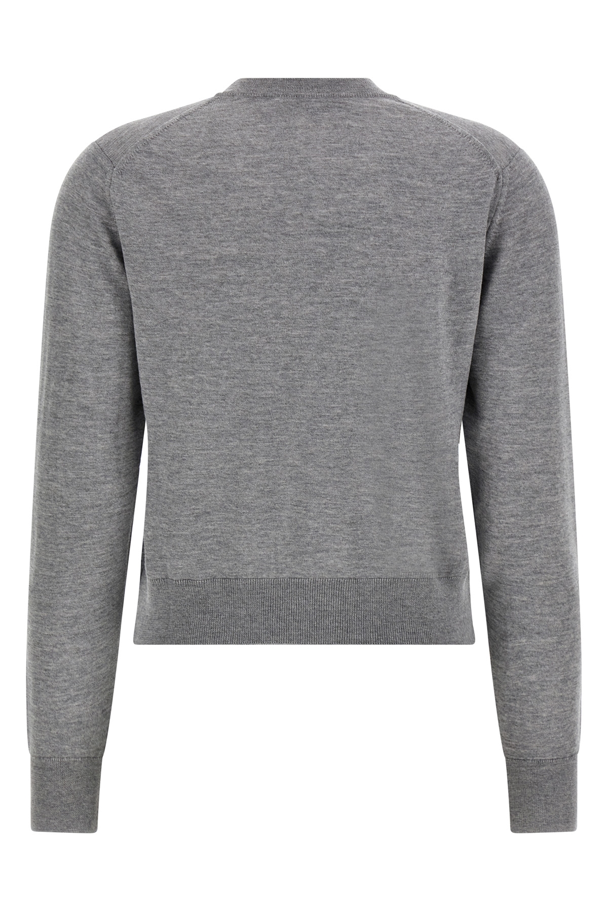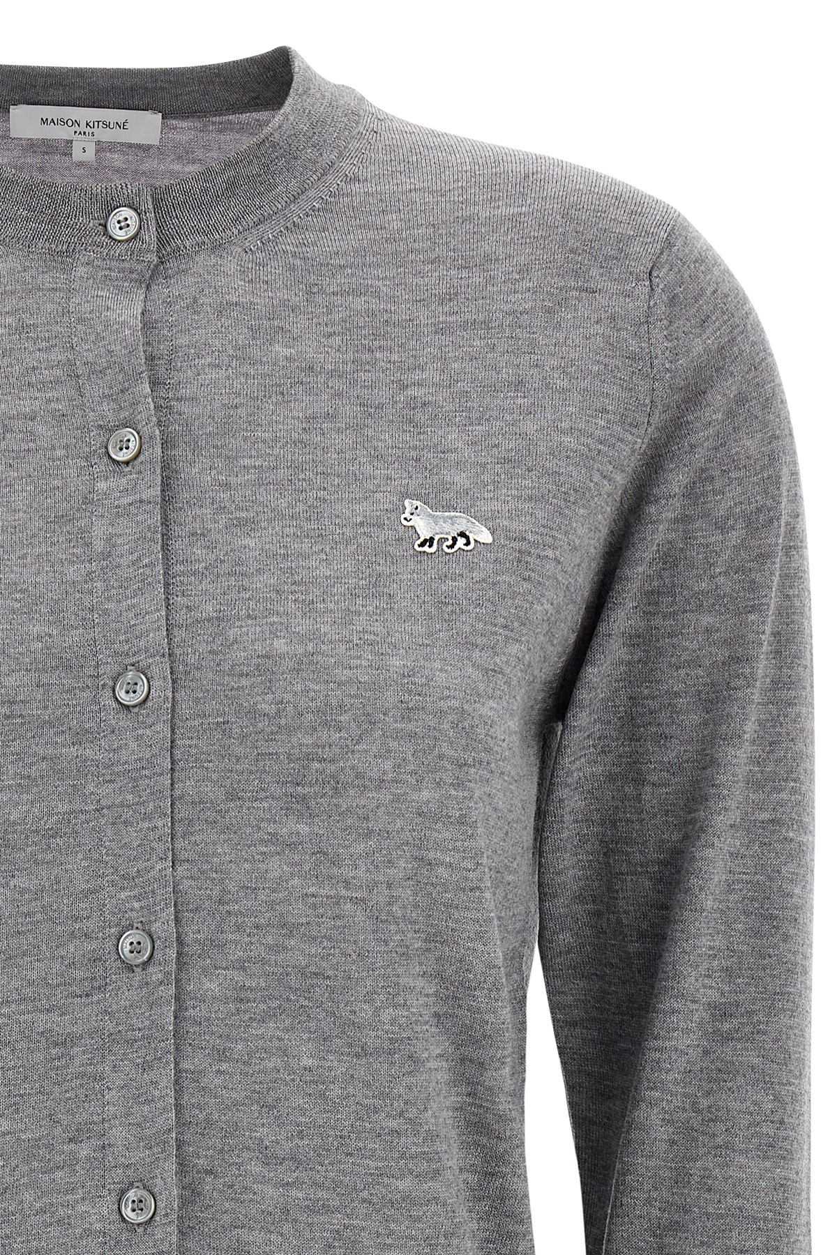 Wool cardigan with front 'Baby Fox' patch, button closure, crew neck, long cuffed sleeves.