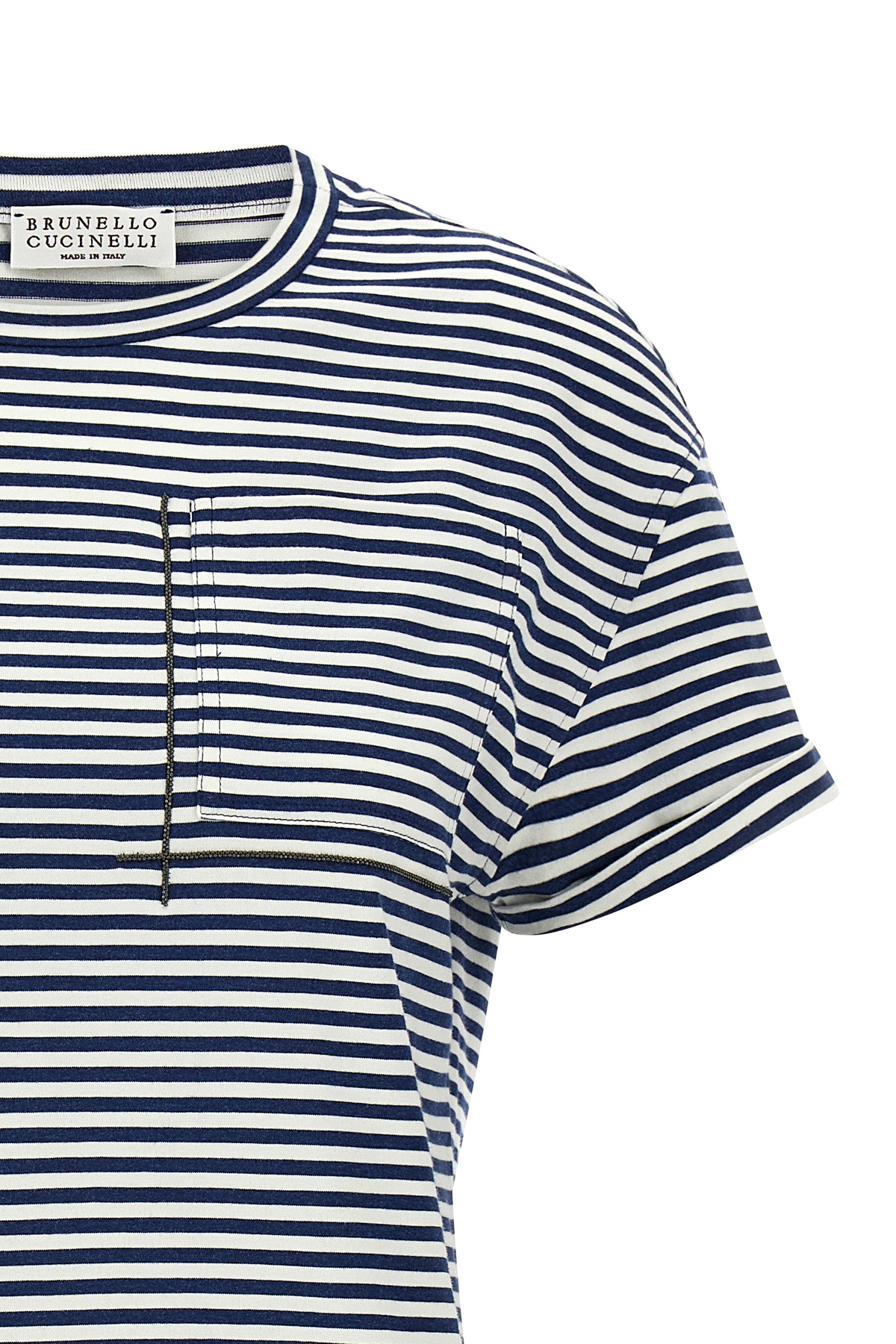 Striped cotton t-shirt, crew neck, pocket with jewel detail, short sleeves with turn-up.
