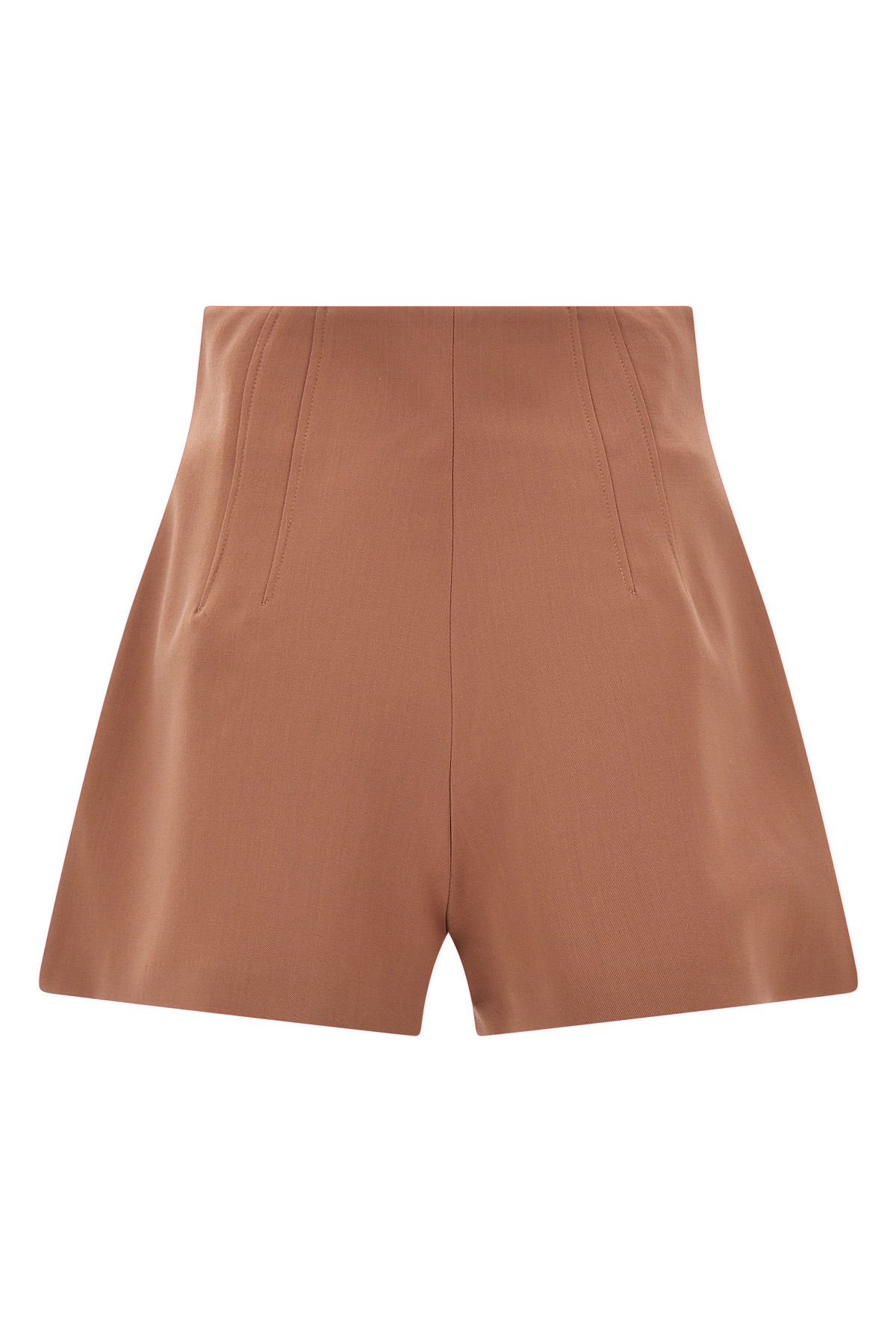 'Vivienne' wide gabardine wool blend bermuda shorts with high waist, side zip and hook, pockets.