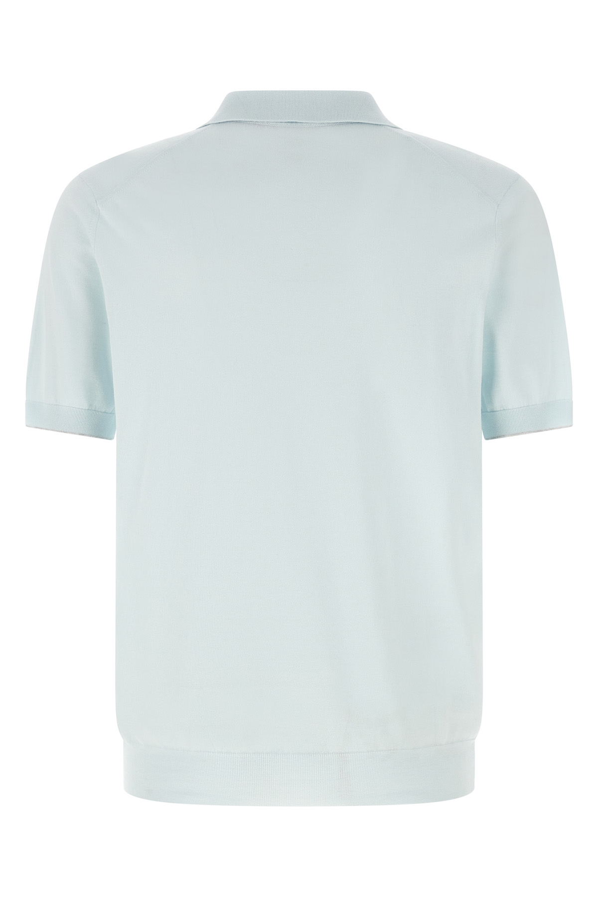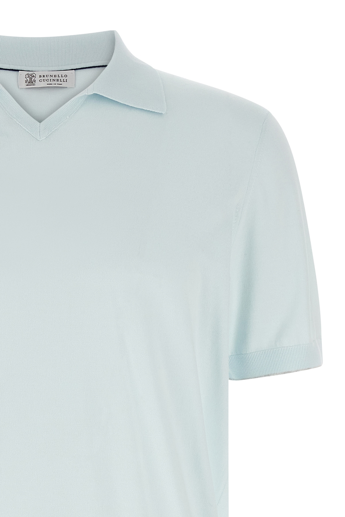 Cotton sweater, V-neck with collar, short sleeves with trim.