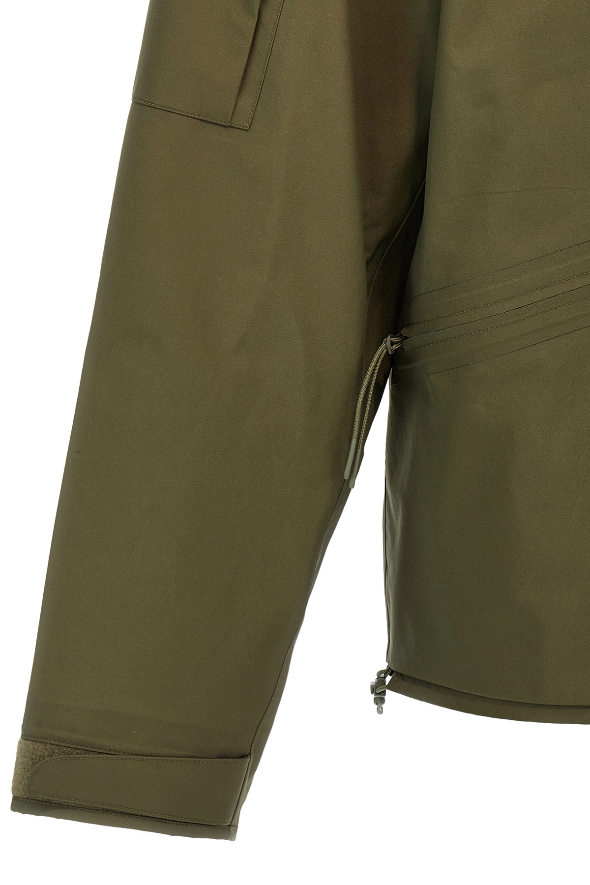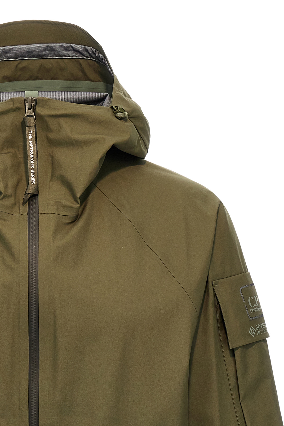 The Metropolis Series' waterproof GORE-TEX INFINIUM™ jacket with high neck, hood, zip closure, adjustable drawstring pockets at the hem, long sleeves with adjustable cuffs and logo print.