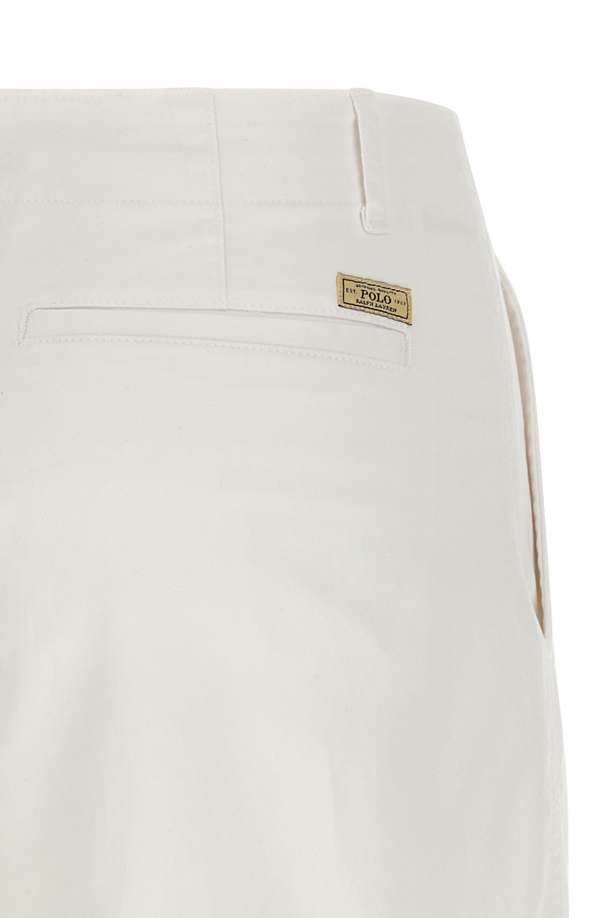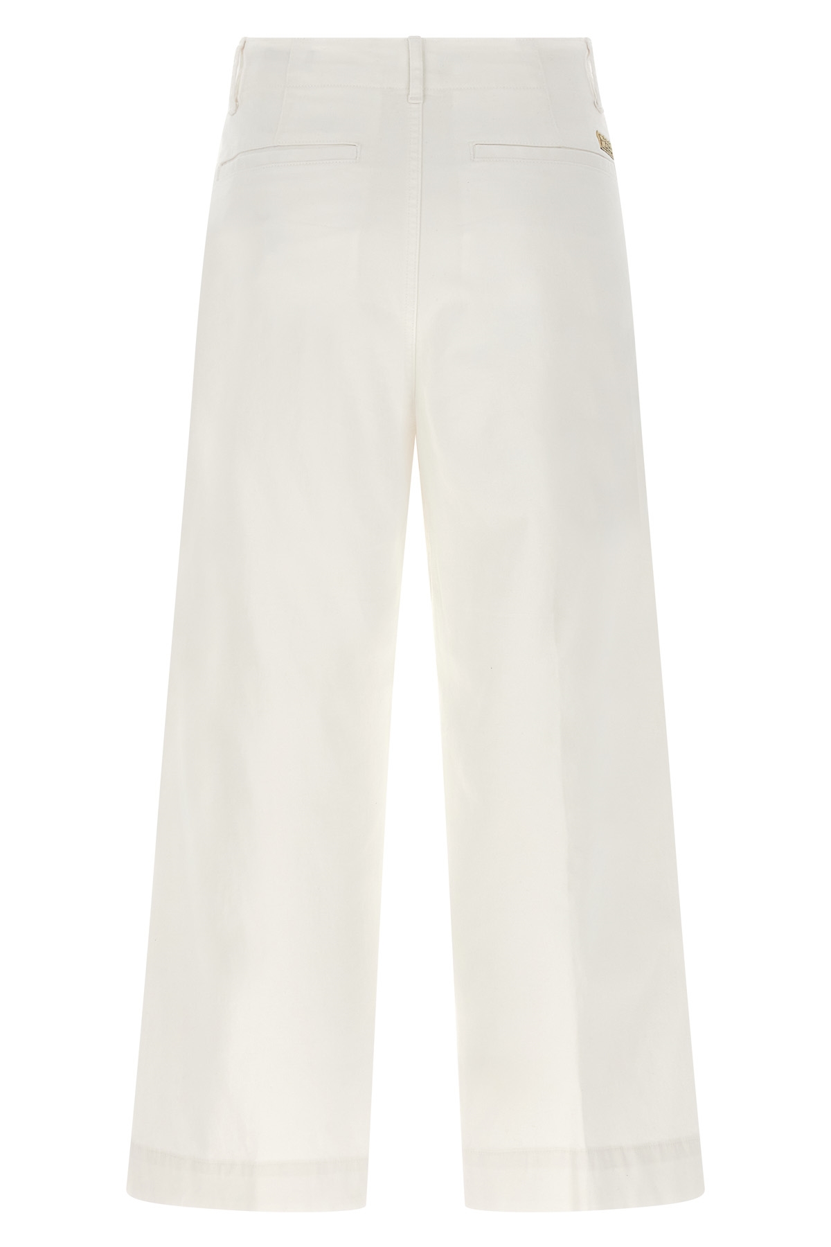 Stretch cotton twill pants, crop model, zip and button closure, pockets, wide leg.