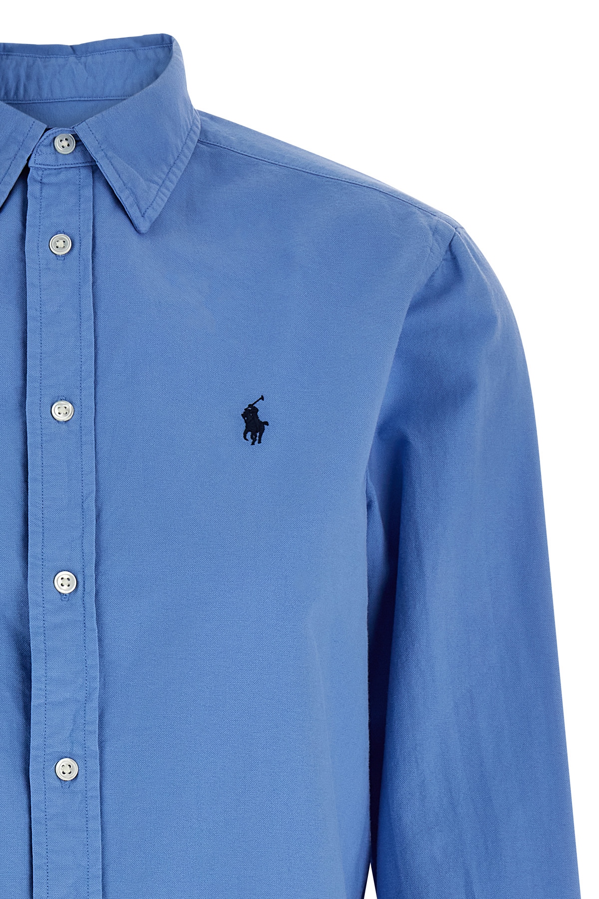 Oxford cotton shirt with front logo embroidery, button closure, long cuffed sleeves.