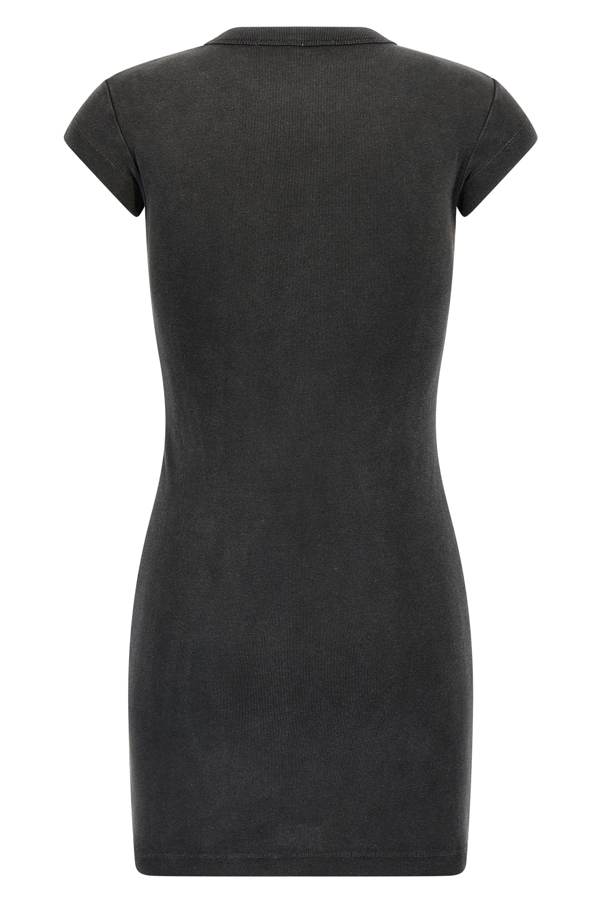 Cotton mini dress with vintage wash and embossed 'AWNY' print, crew neck, short sleeves.