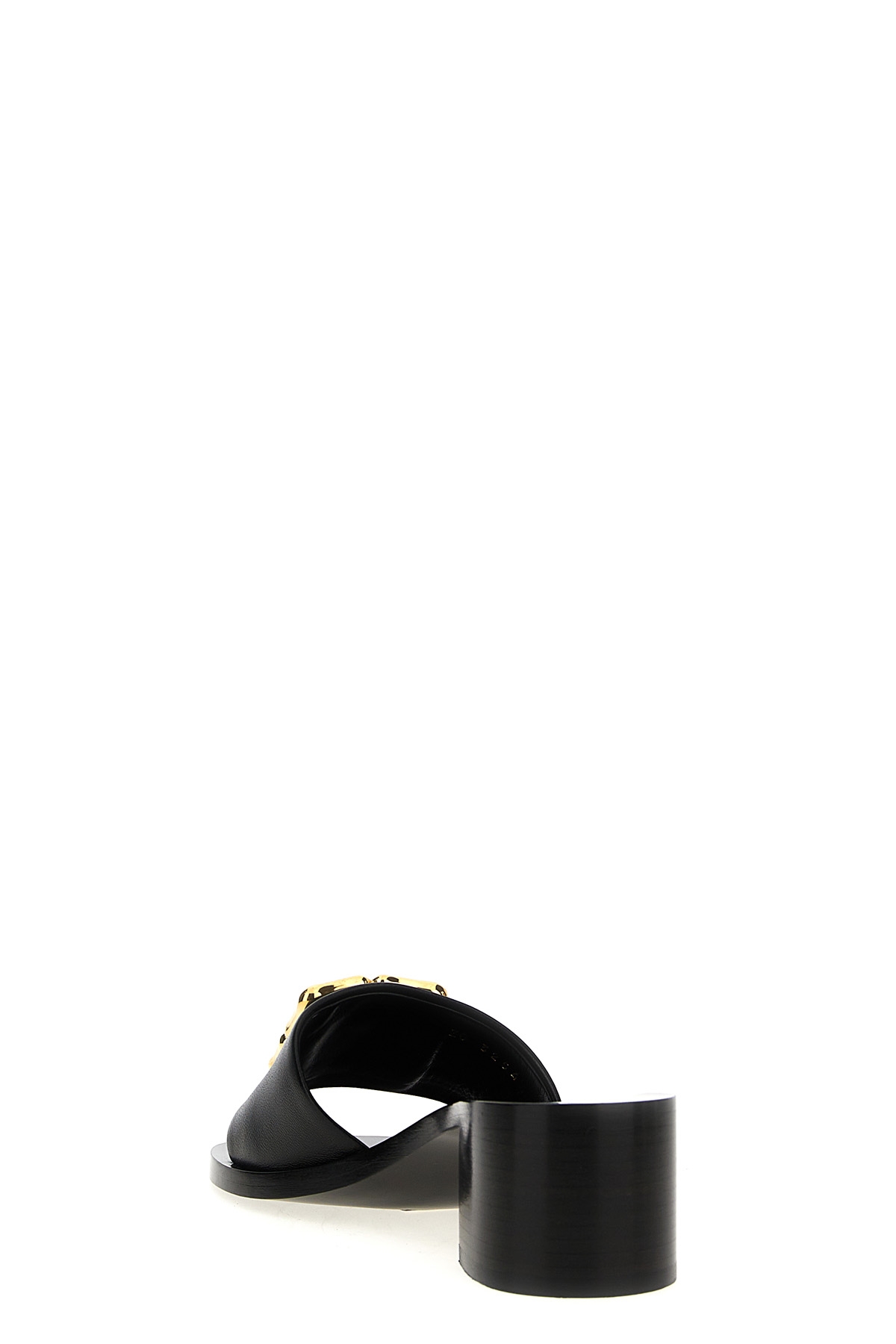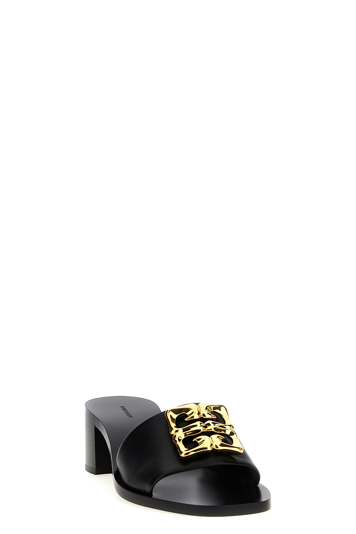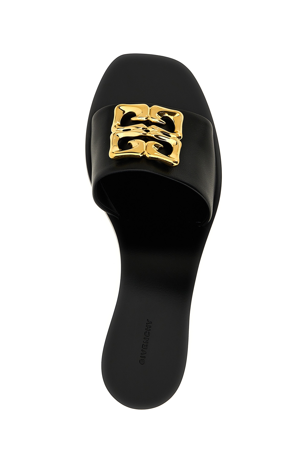 '4G' leather mules with maxi metal '4G' logo on the front, leather sole, big heel.
