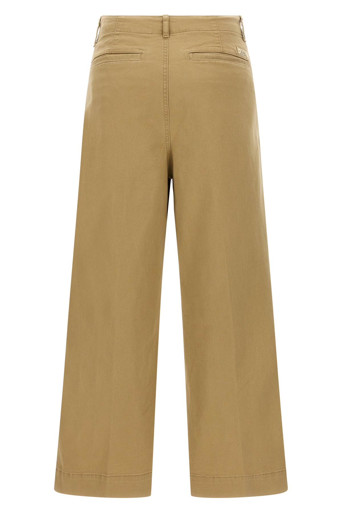 Stretch cotton twill pants, crop model, zip and button closure, pockets, wide leg.