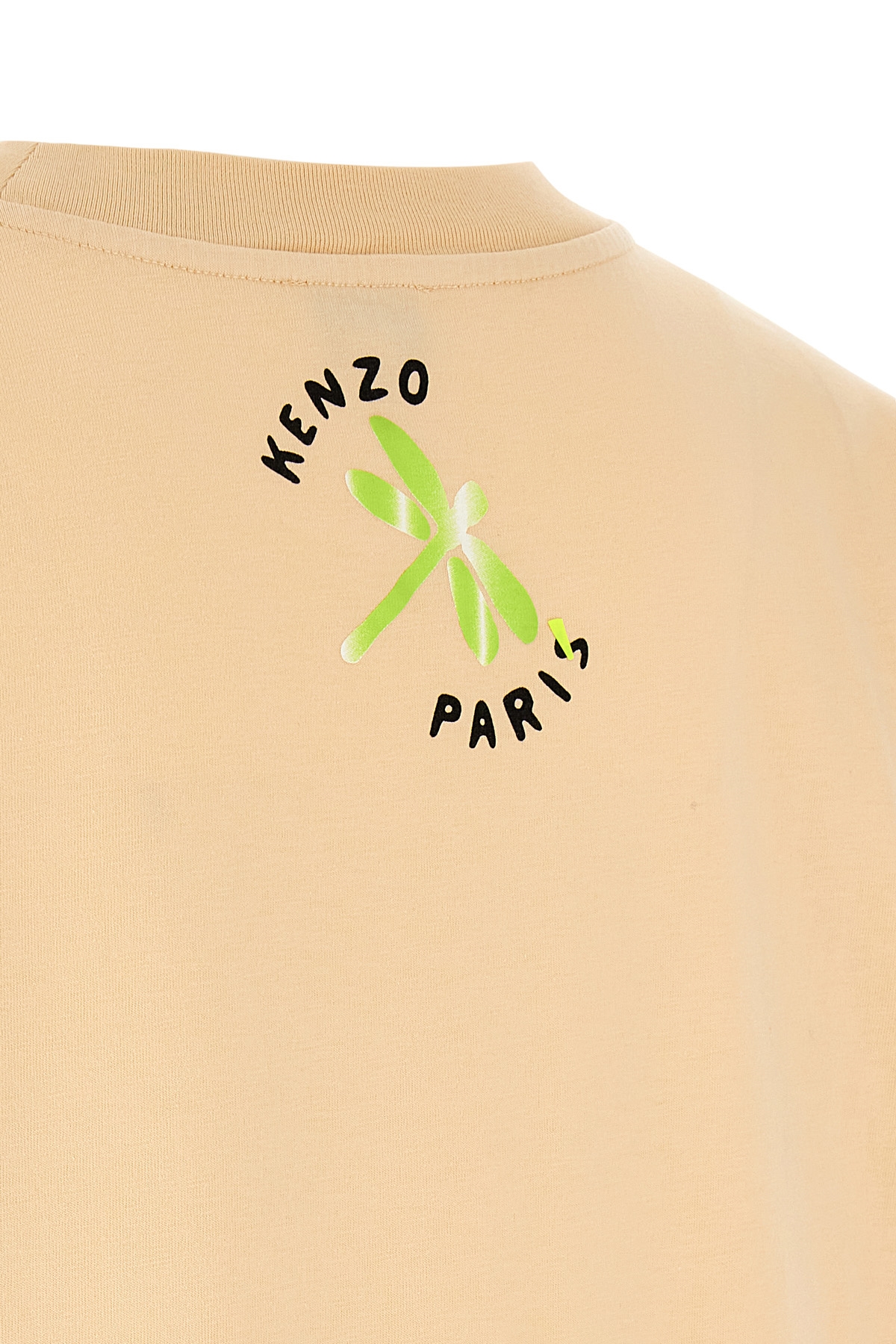 'Peonies Kimono' cotton jersey mini dress with front and back print, crew neck, short sleeves.
