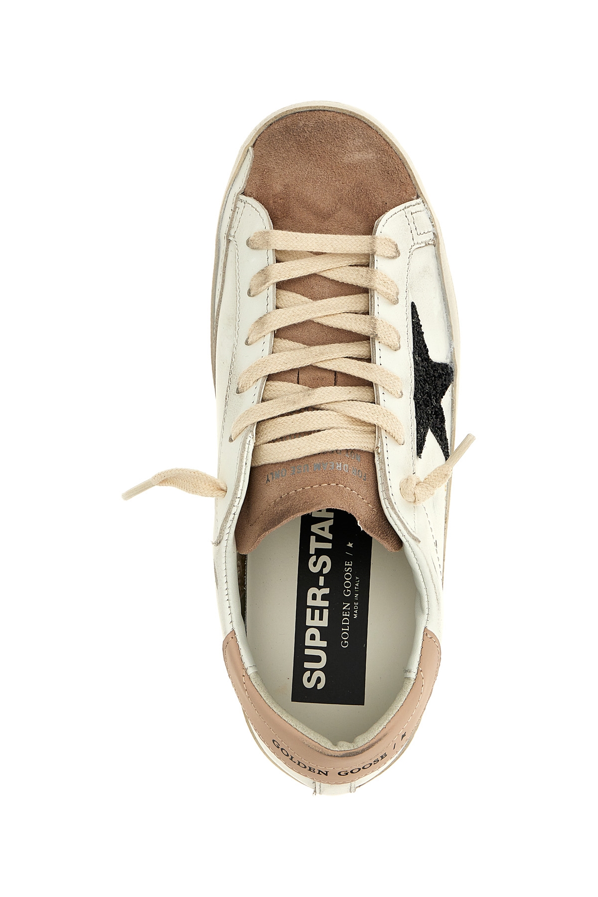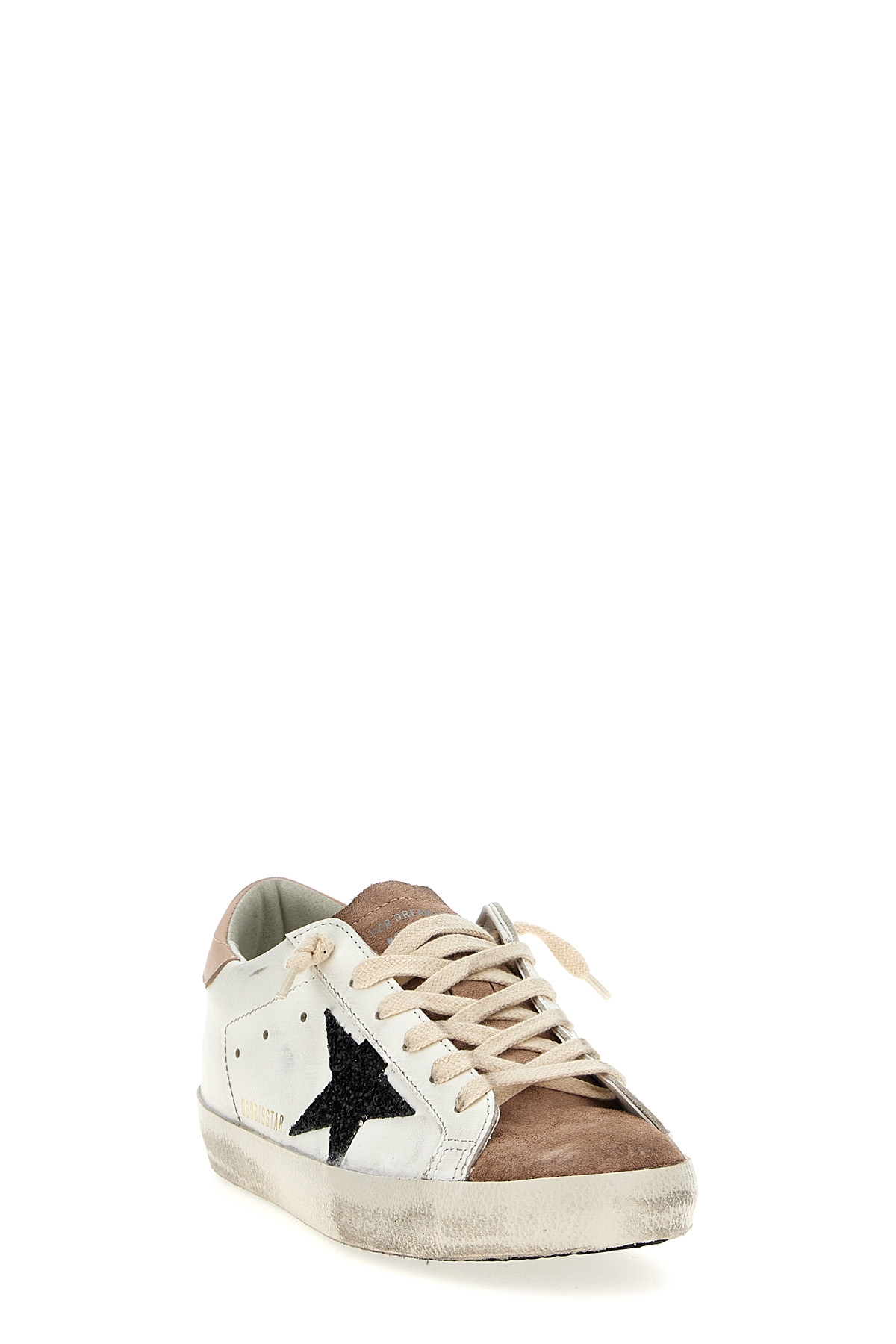 'Superstar' leather sneakers with suede front, used-effect details, glitter side star and contrasting heel, lace-up closure, rubber sole, logo.