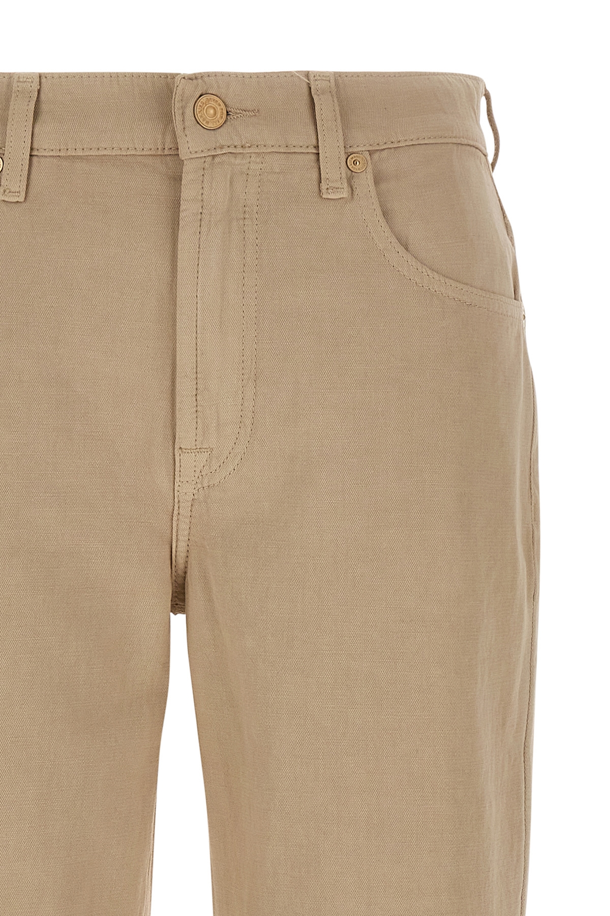 'Tess' cotton and linen blend trousers, straight leg, five pockets, zip and button closure, back leather logo tag.