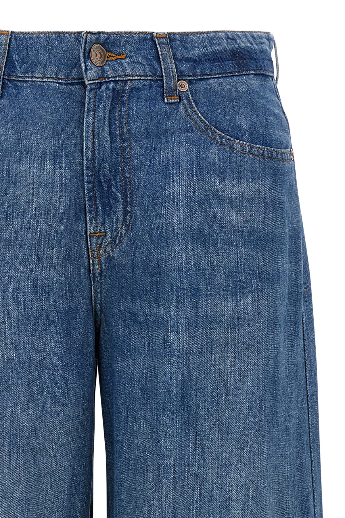 Willow Wide' high-waisted jeans in delave cotton denim with wide leg, five pockets, Zip and button closure, back leather logo tag.