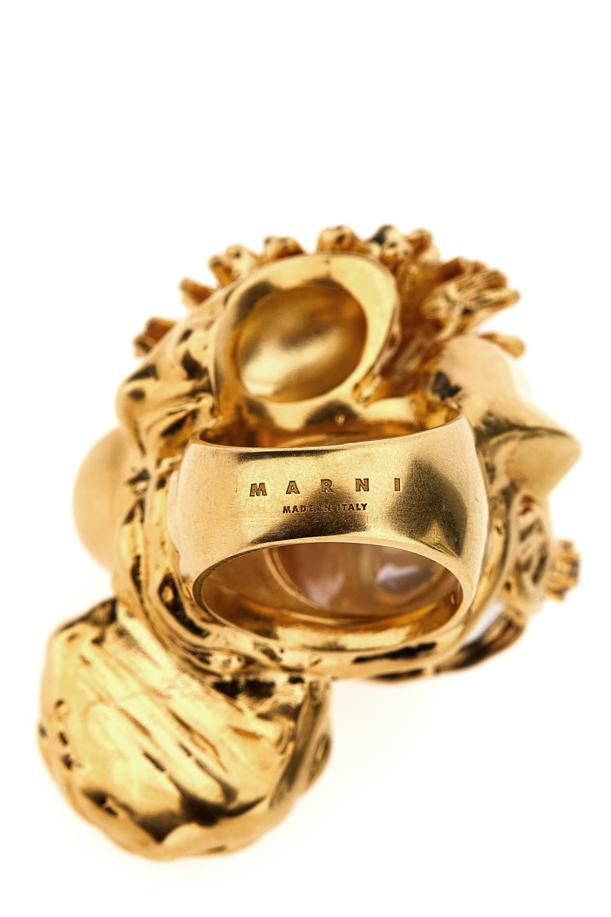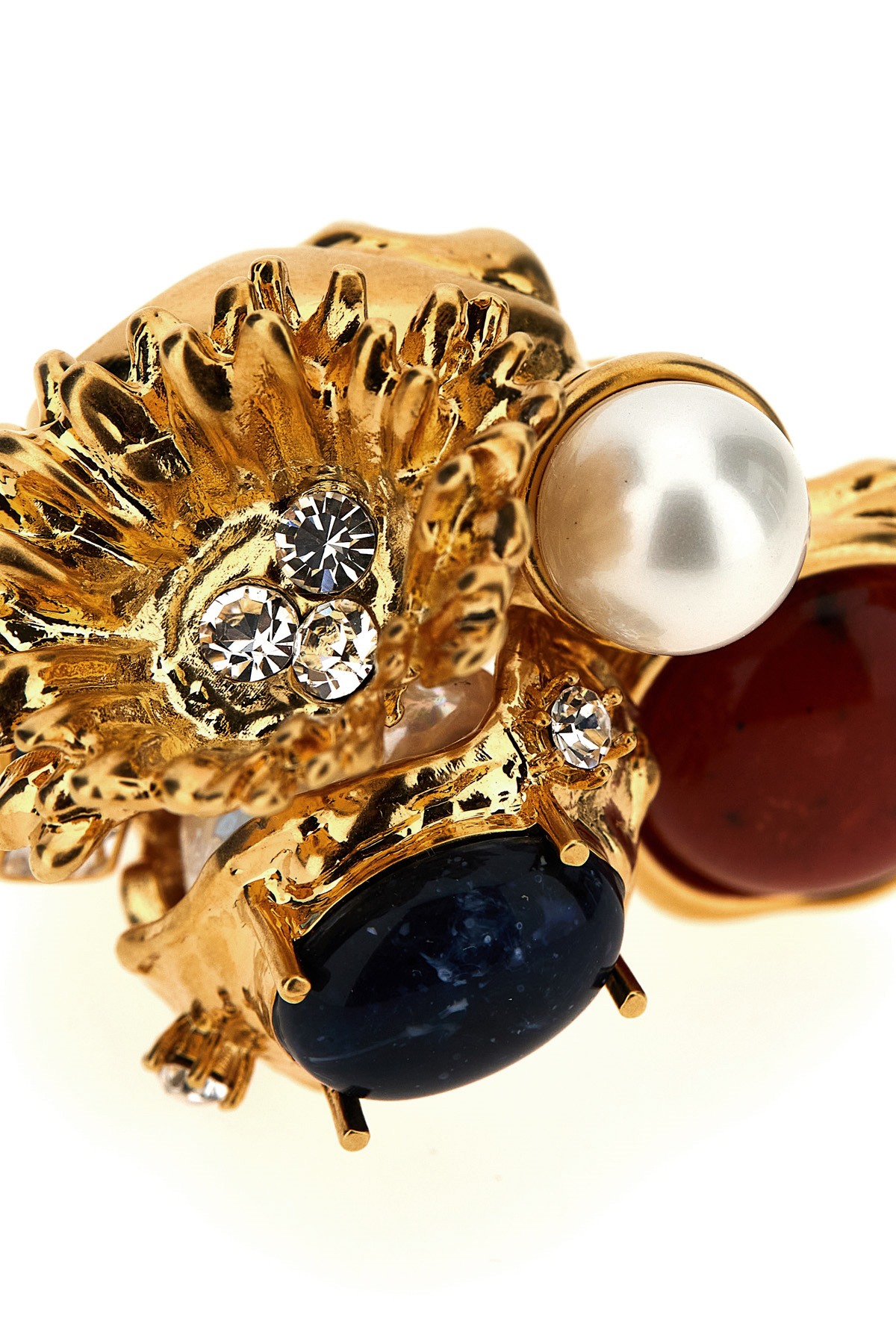 Multilayer ring in gold metal with stones, rhinestones and pearls.