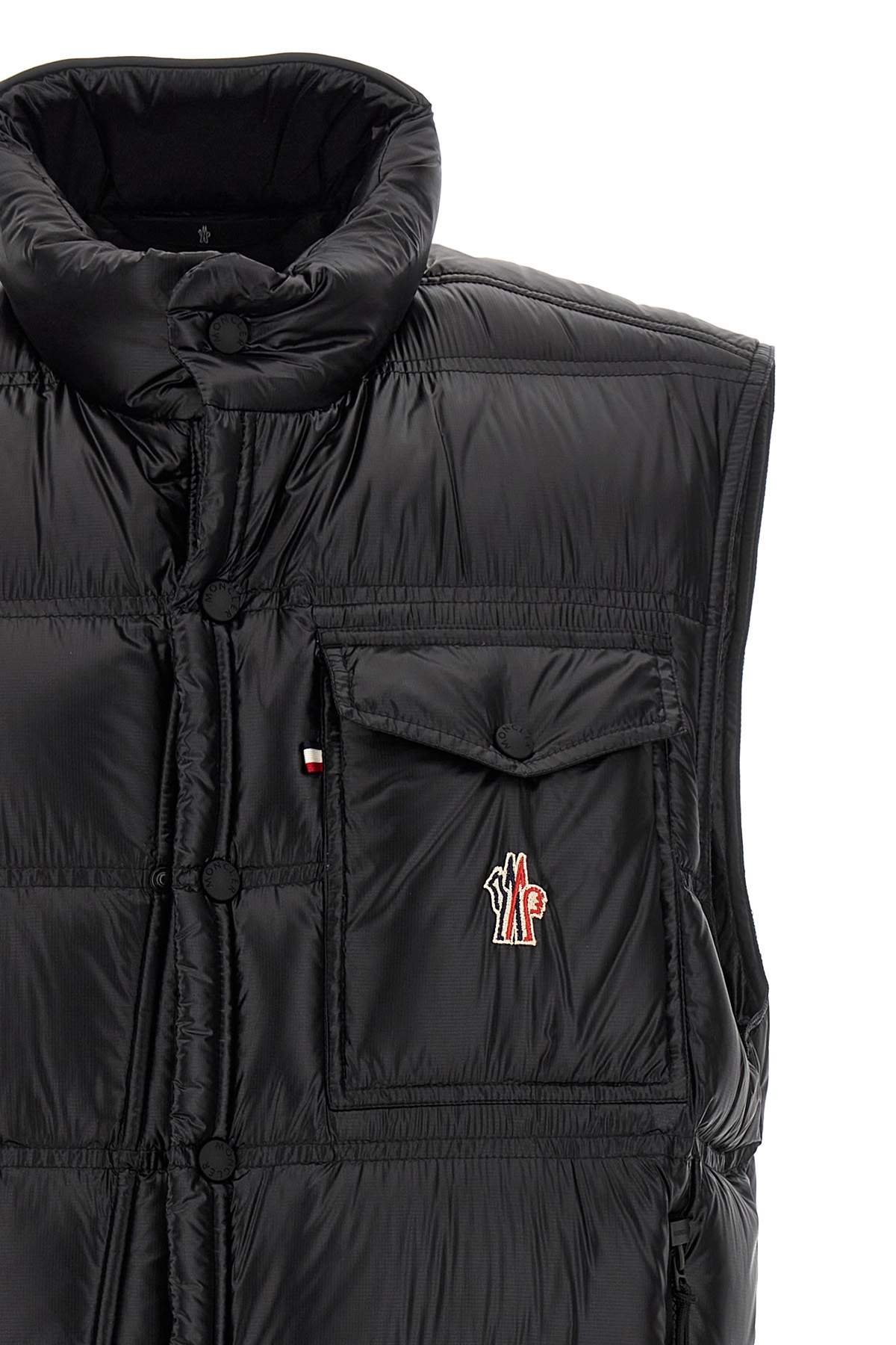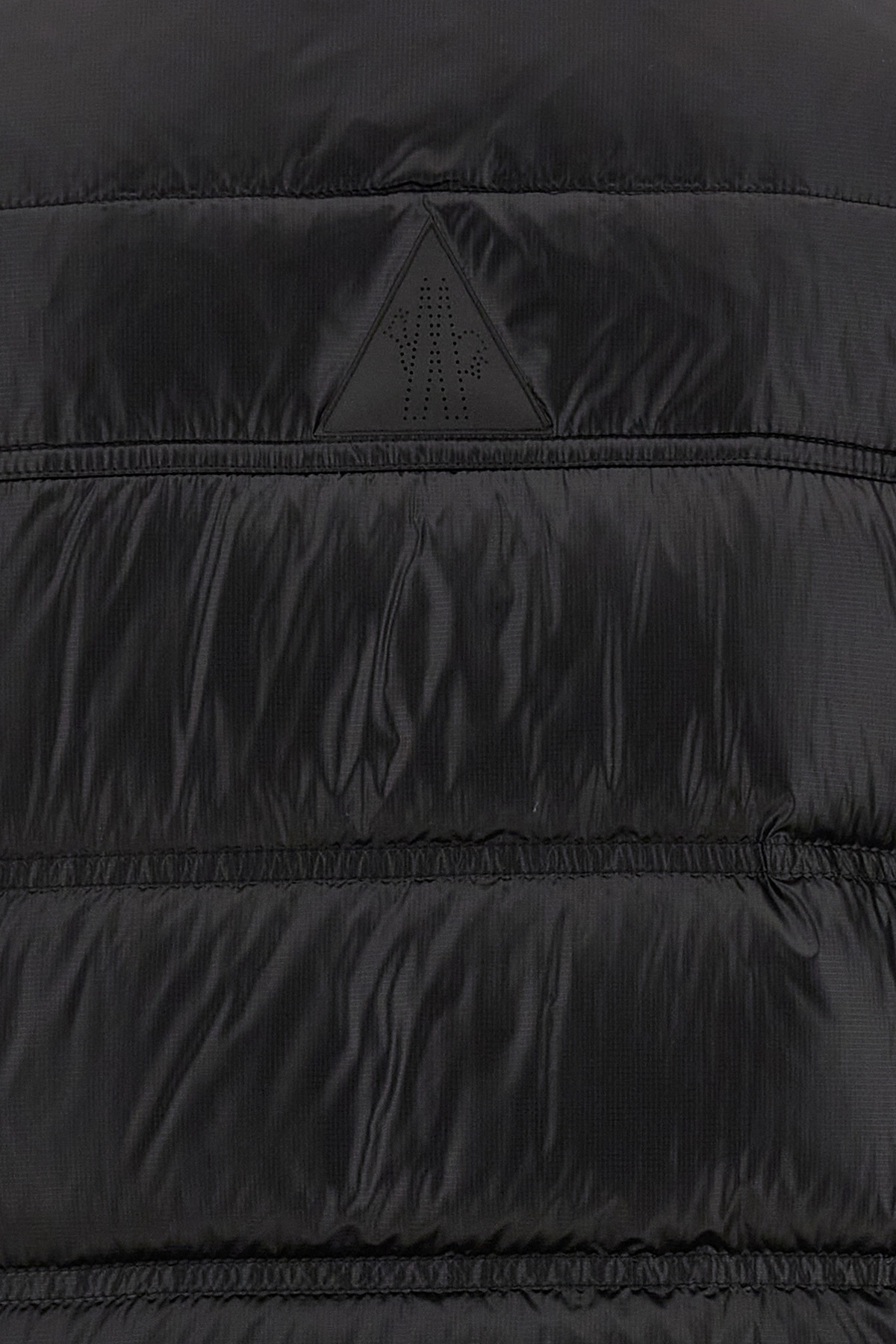 'Nantu' micro ripstop vest with water-repellent feather padding, front logo patch, high neck, zip and snap button closure, pockets, drawstring at the hem.