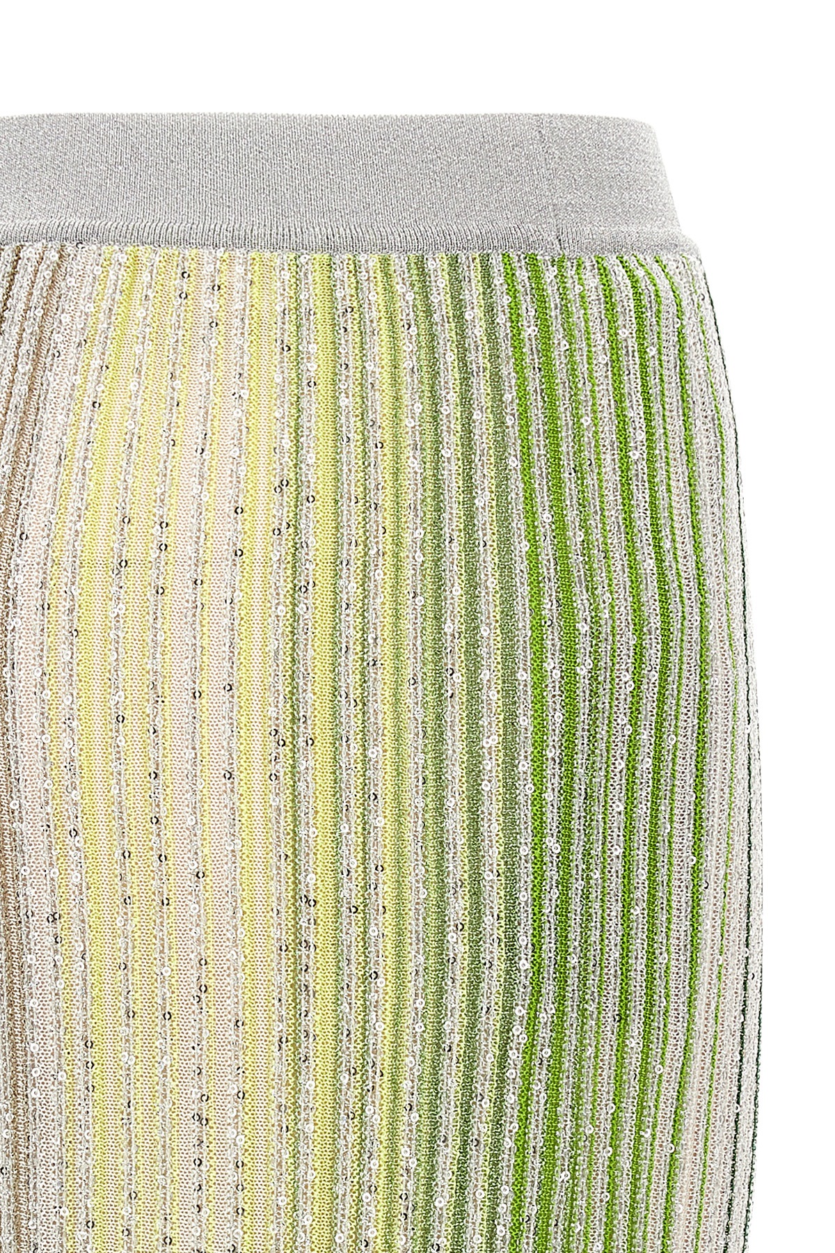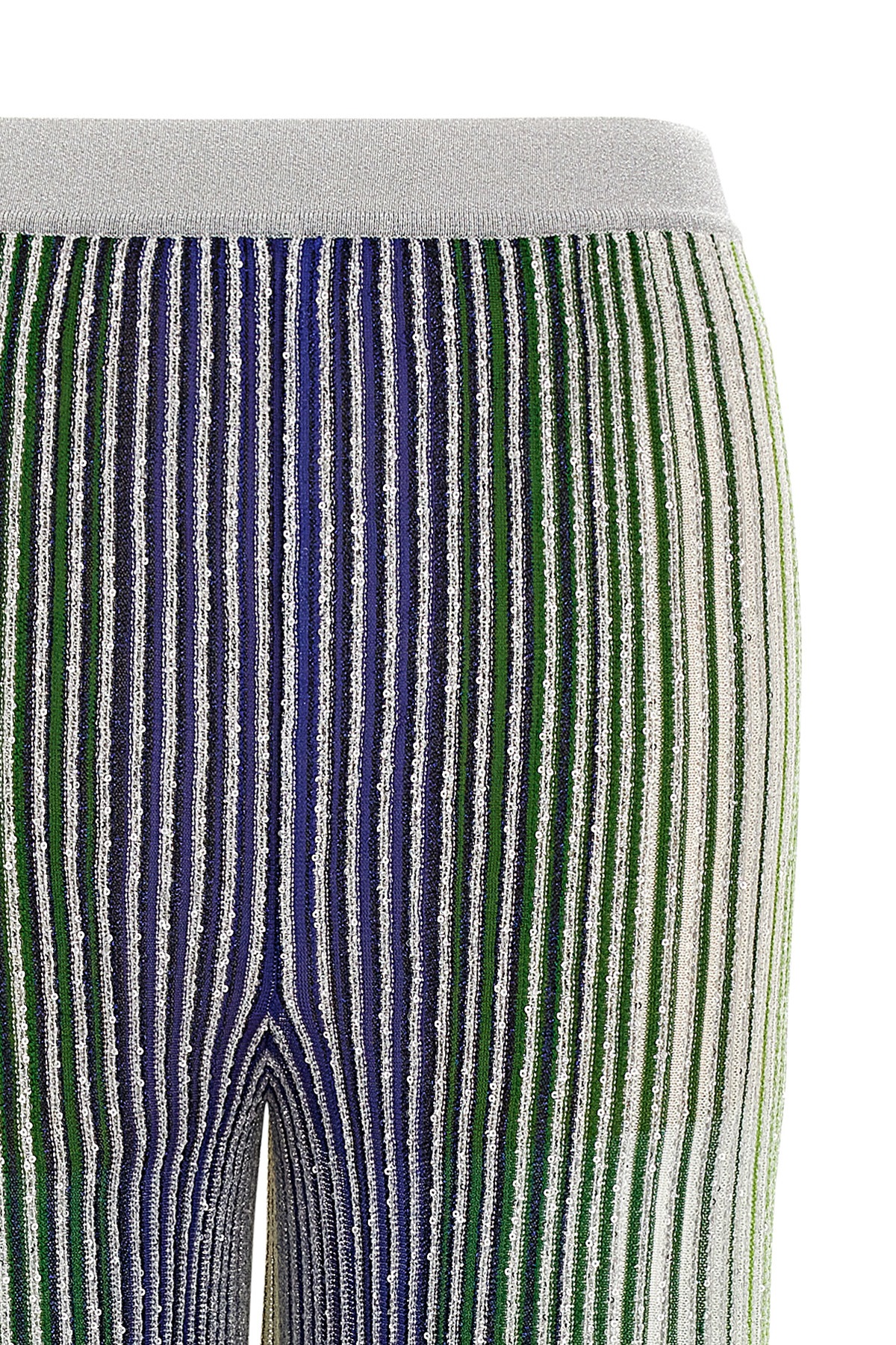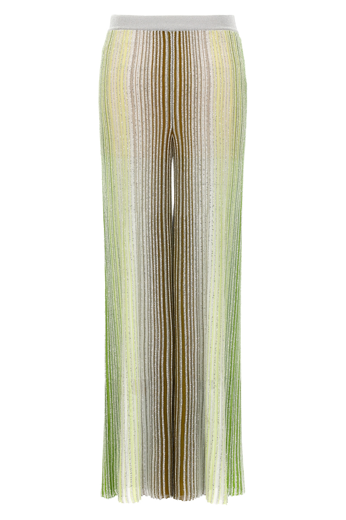 Viscose blend pants with partial stripes with sequins and lame filaments, palazzo model, elastic waistband.